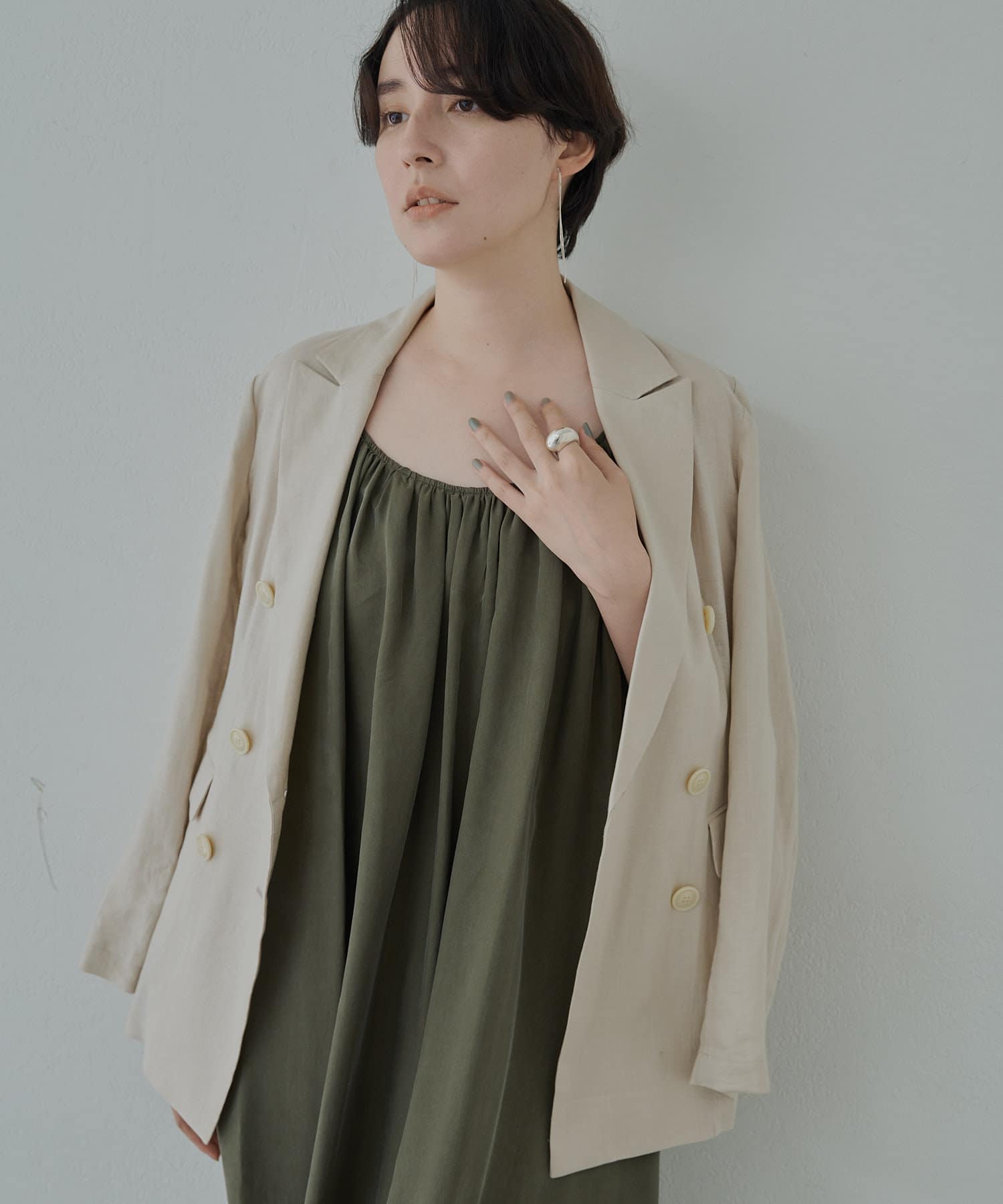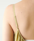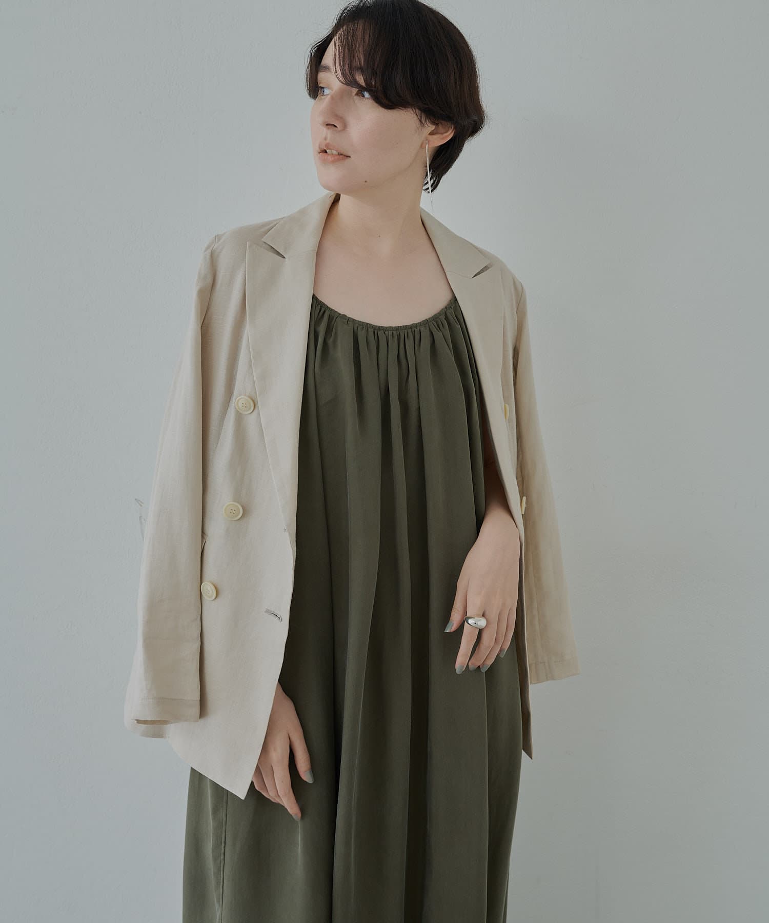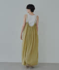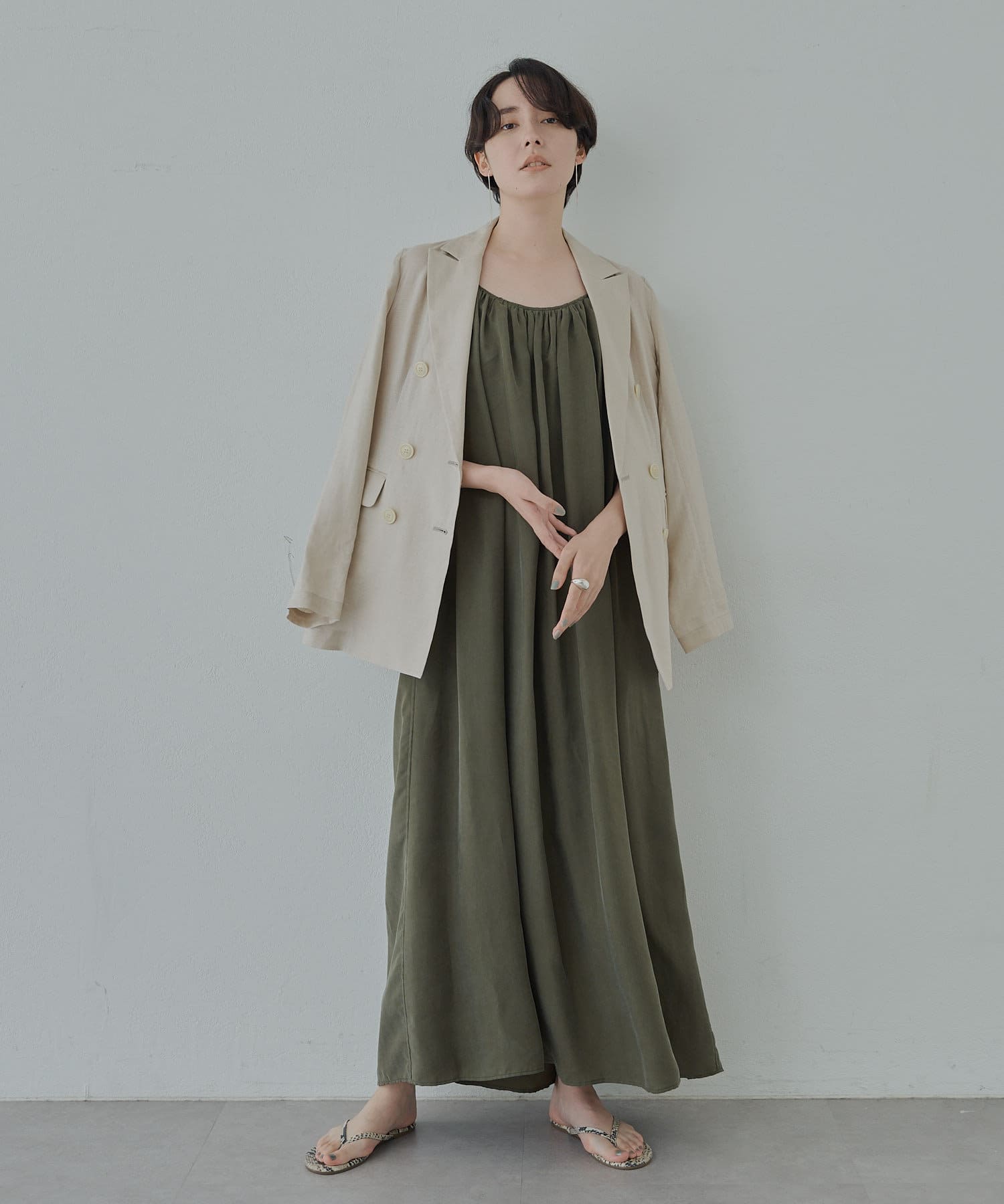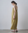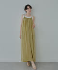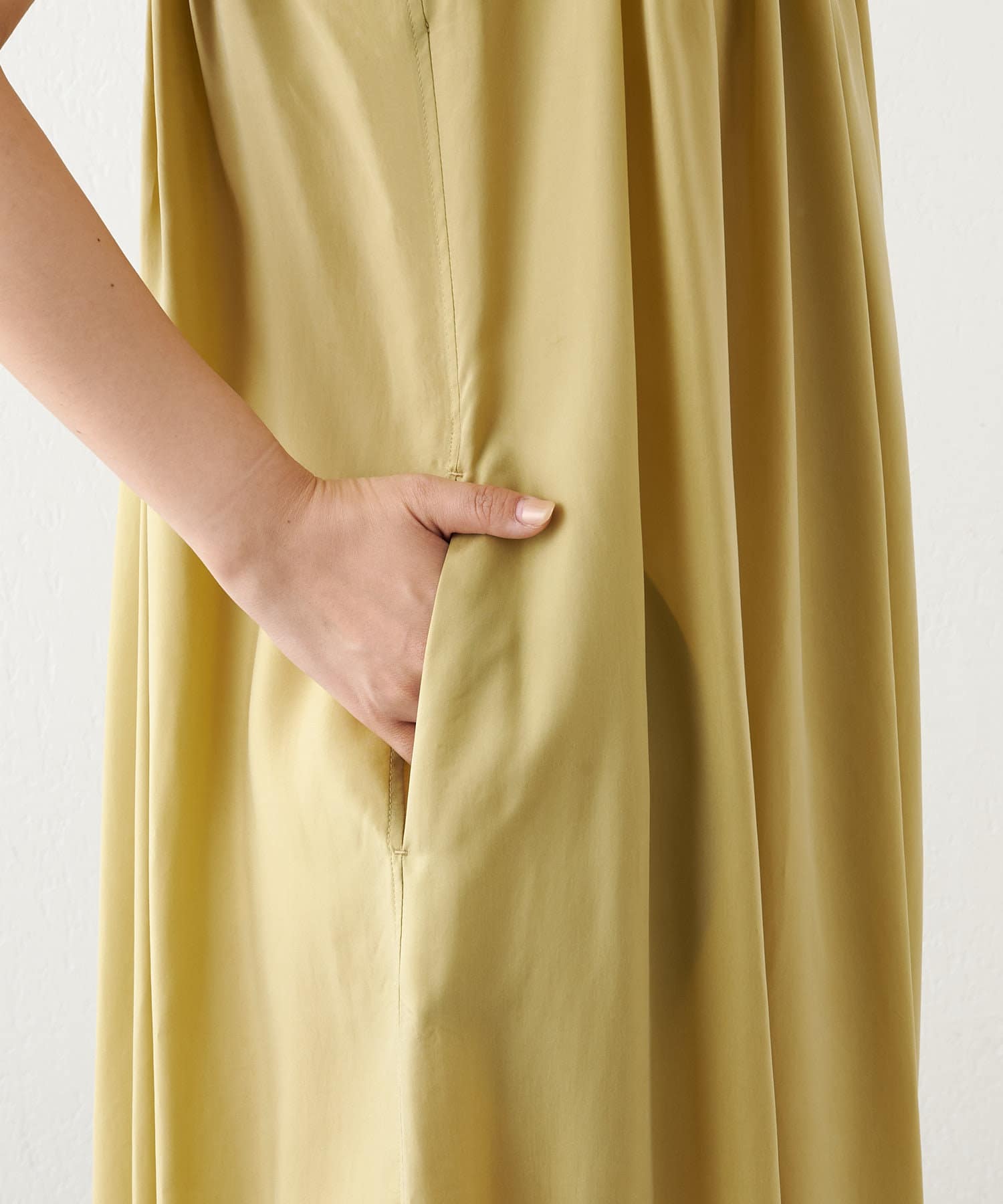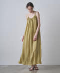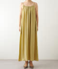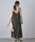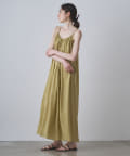 ■衿ぐりのたっぷりとしたタックギャザーが目を惹くキャミワンピース。