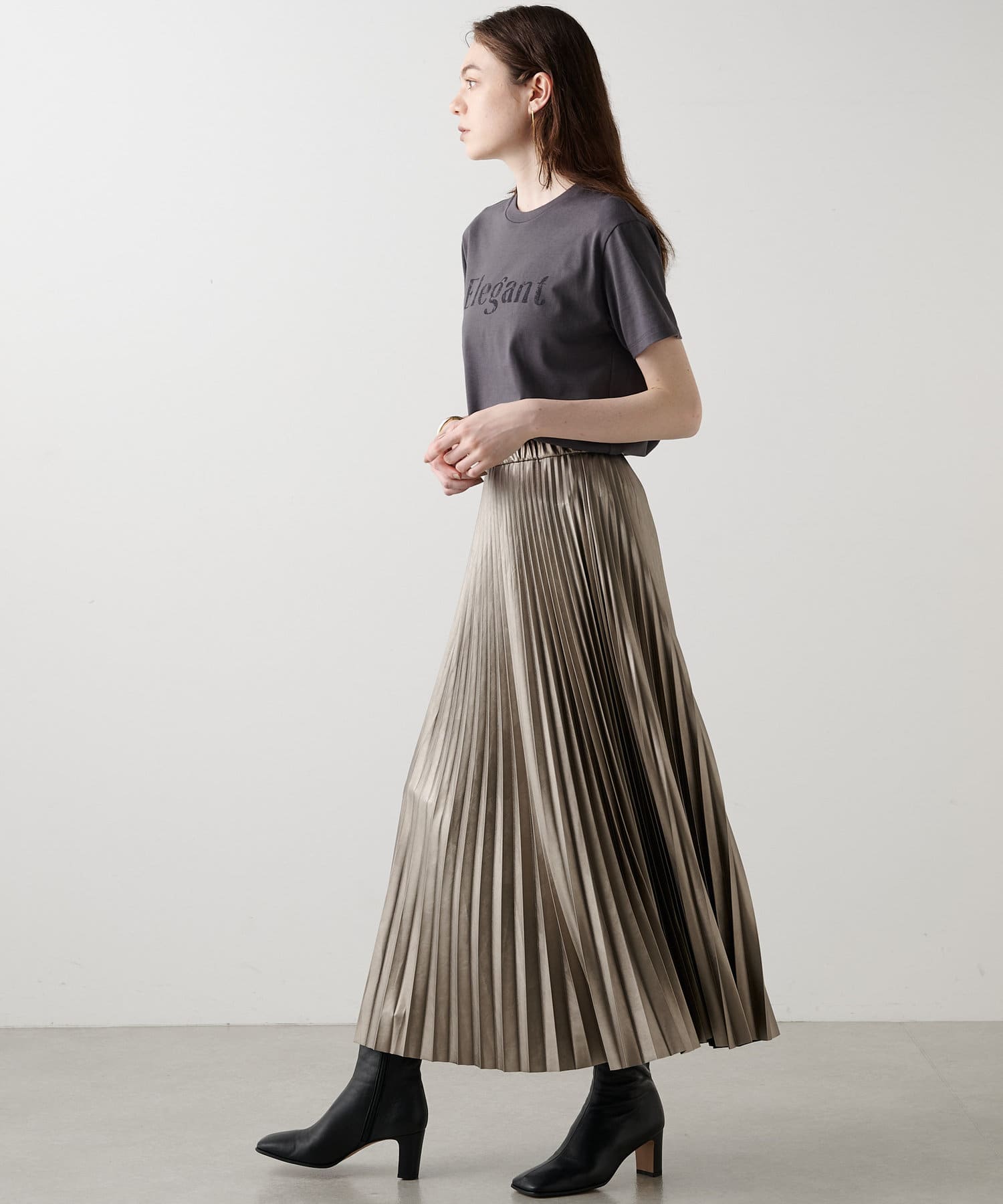 ■程良い光沢感が品良く着用できるプリーツスカート。