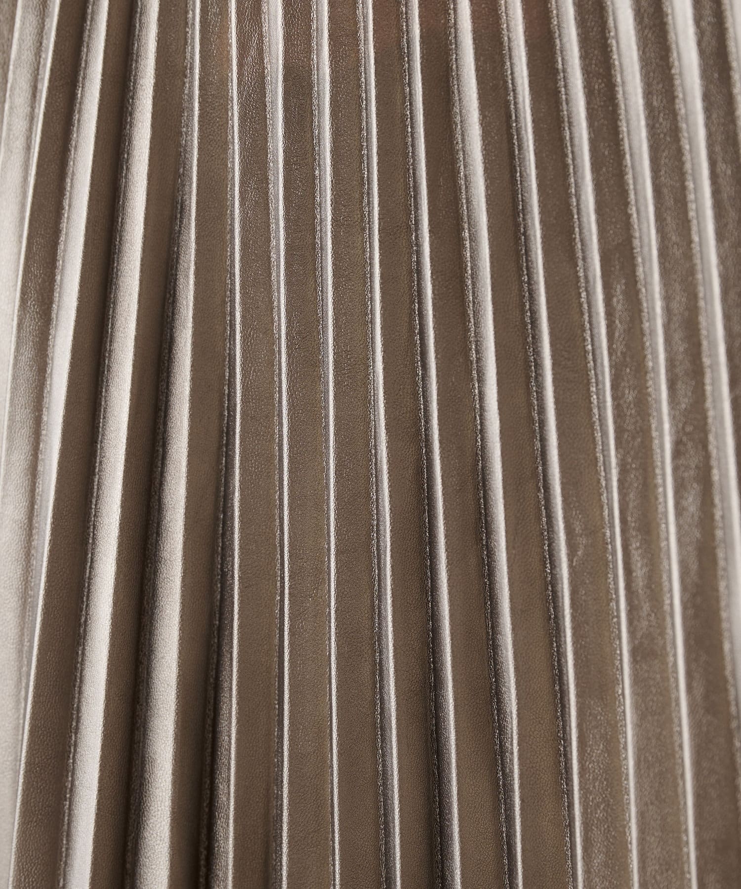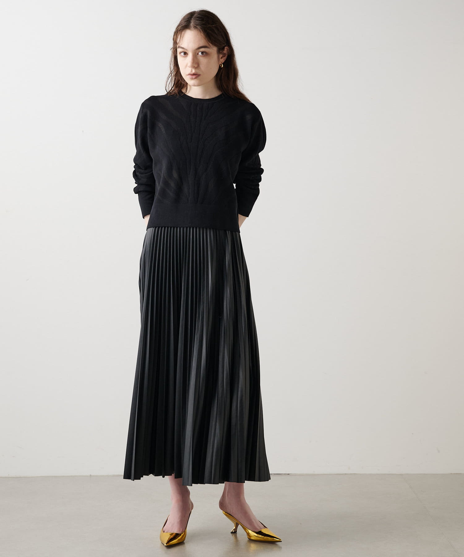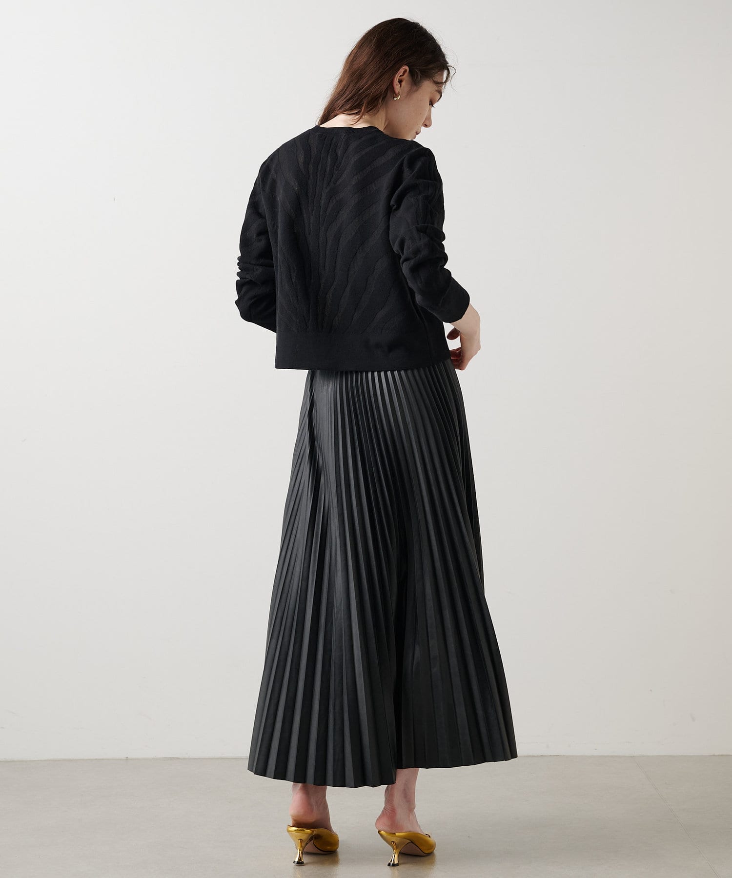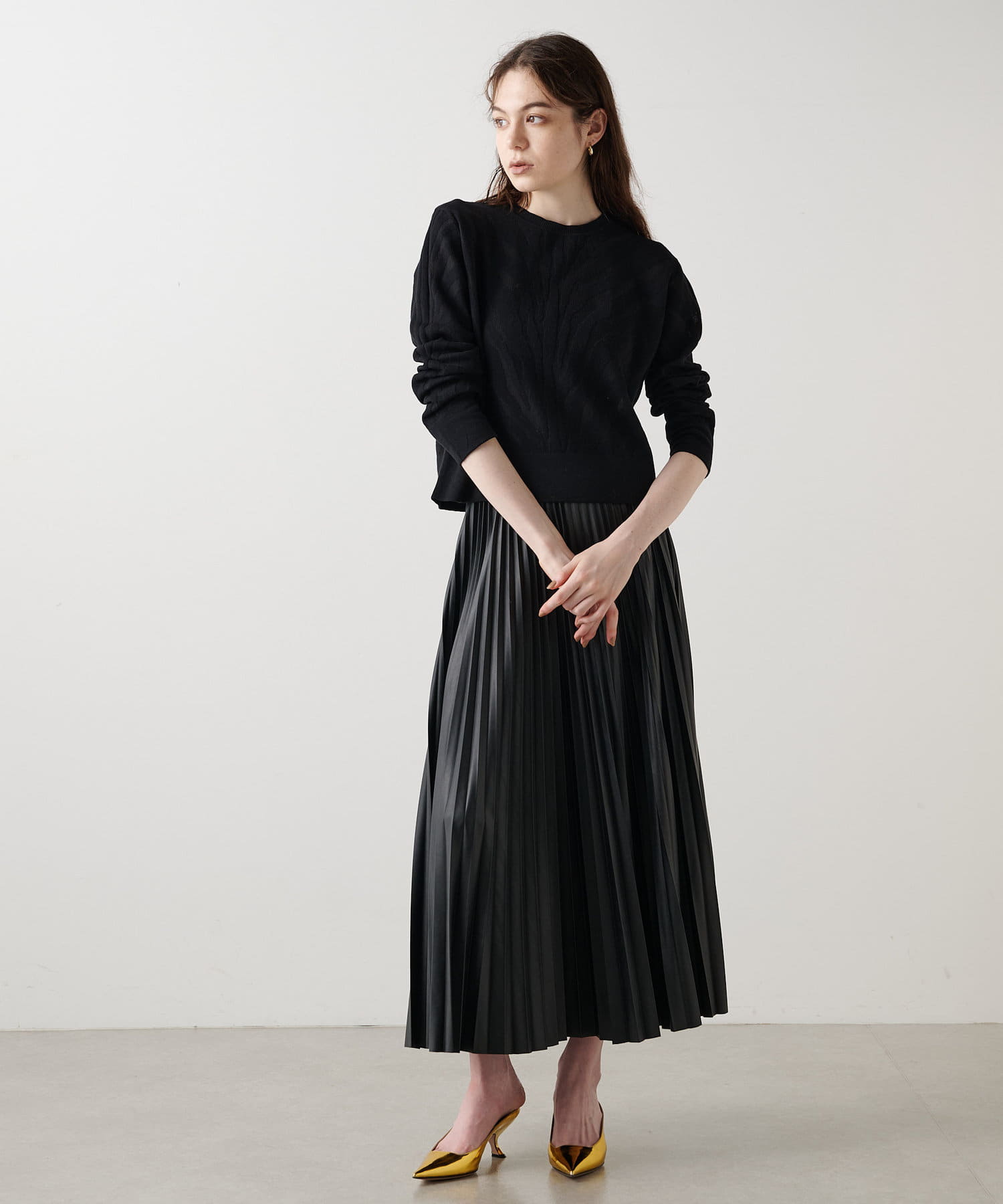 コーデのポイントになる、エコレザー素材のプリーツスカート