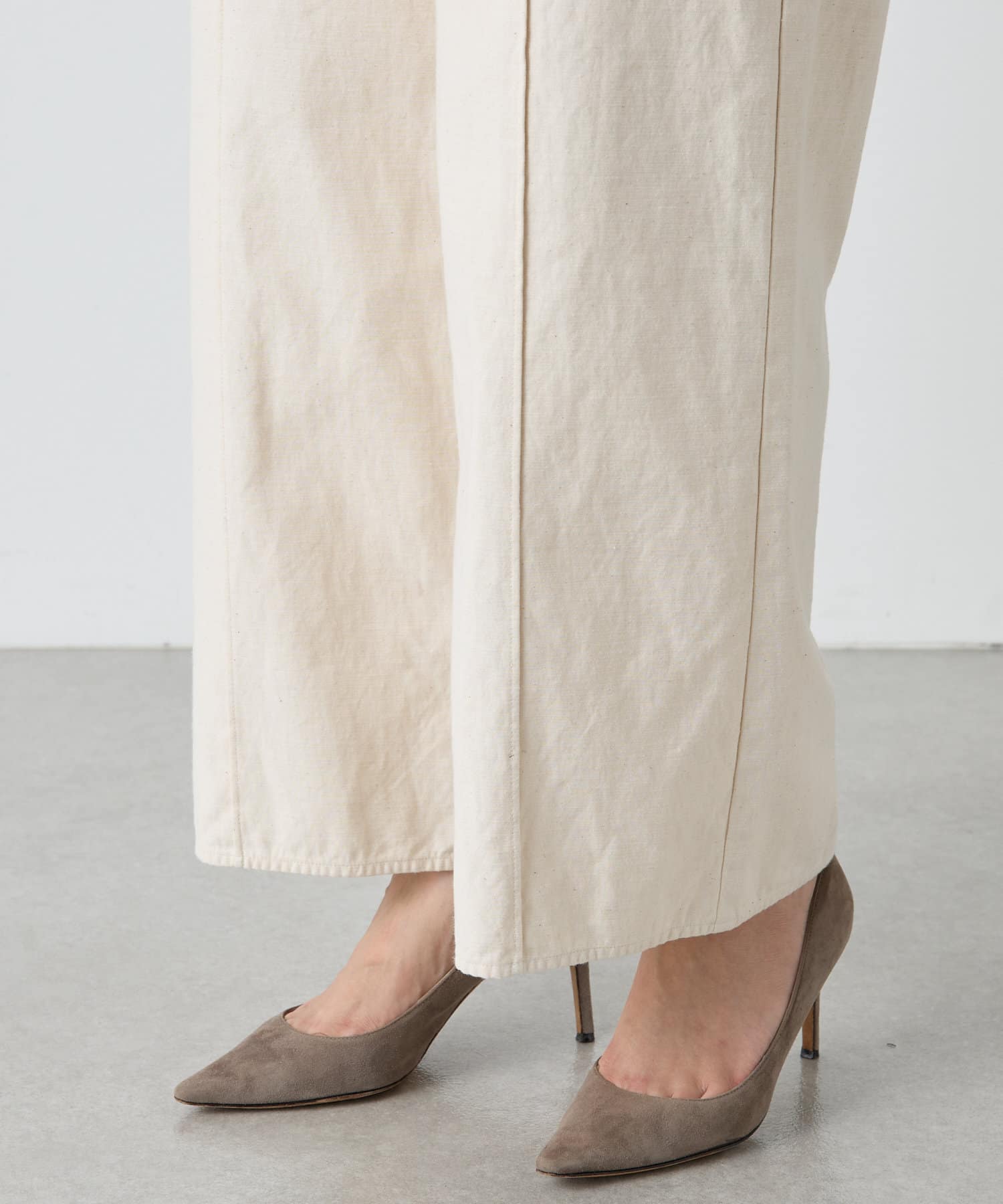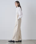 とにかく脚長になるすごいアイテム。シャツジャケットと同生地で、コーデの主役になるパンツです。ゆとりのある腰周りと、縫い付けのセンターラインが体型カバーとスタイルアップを同時に叶えます。