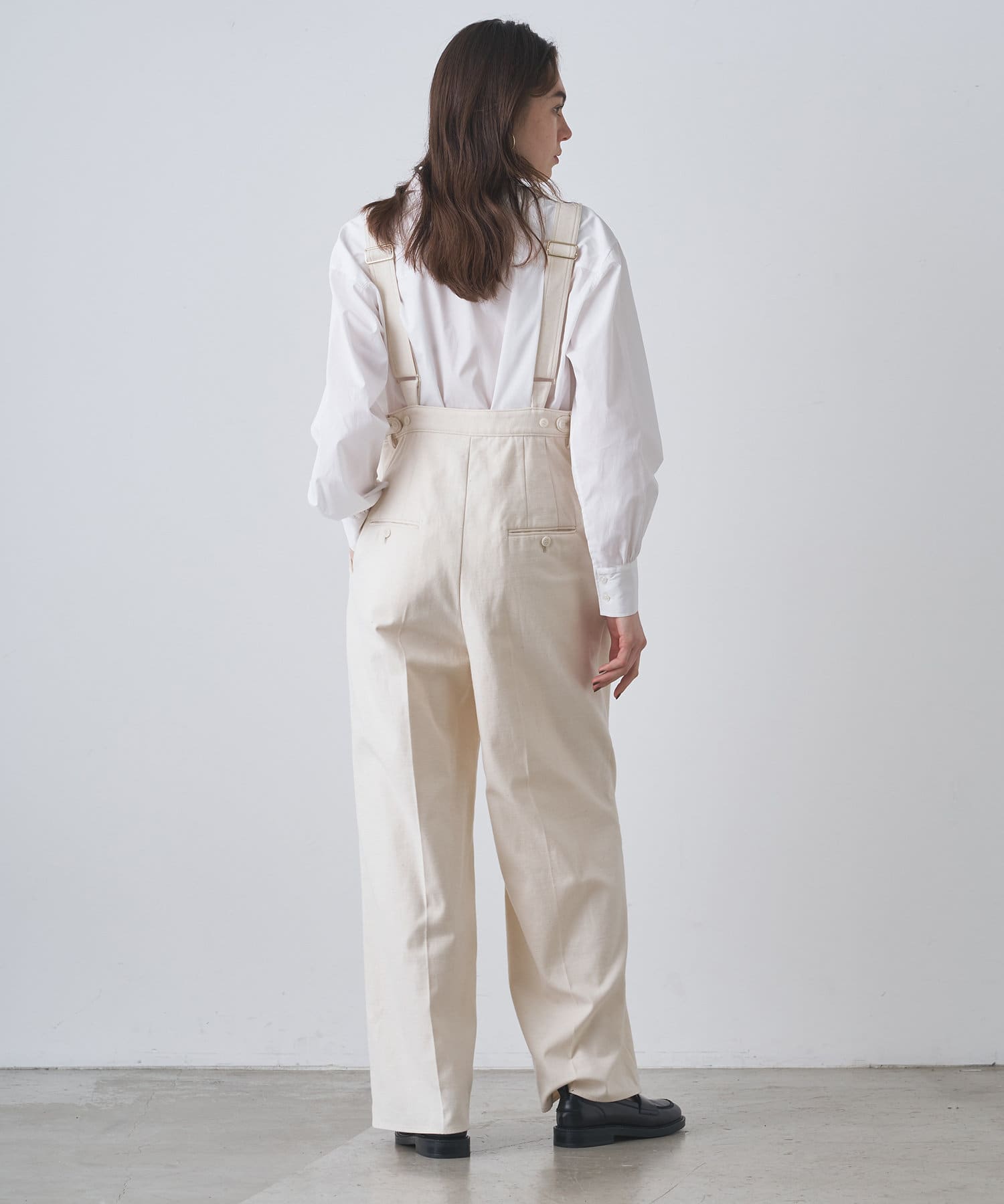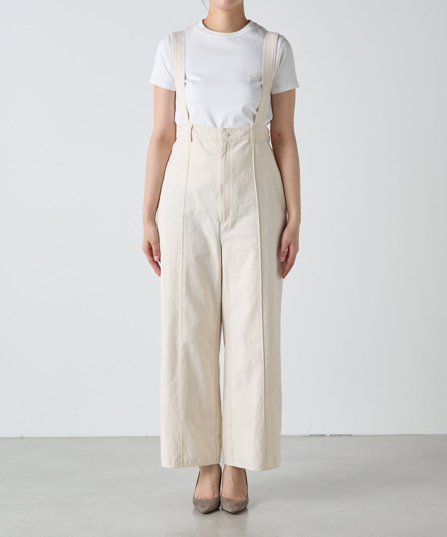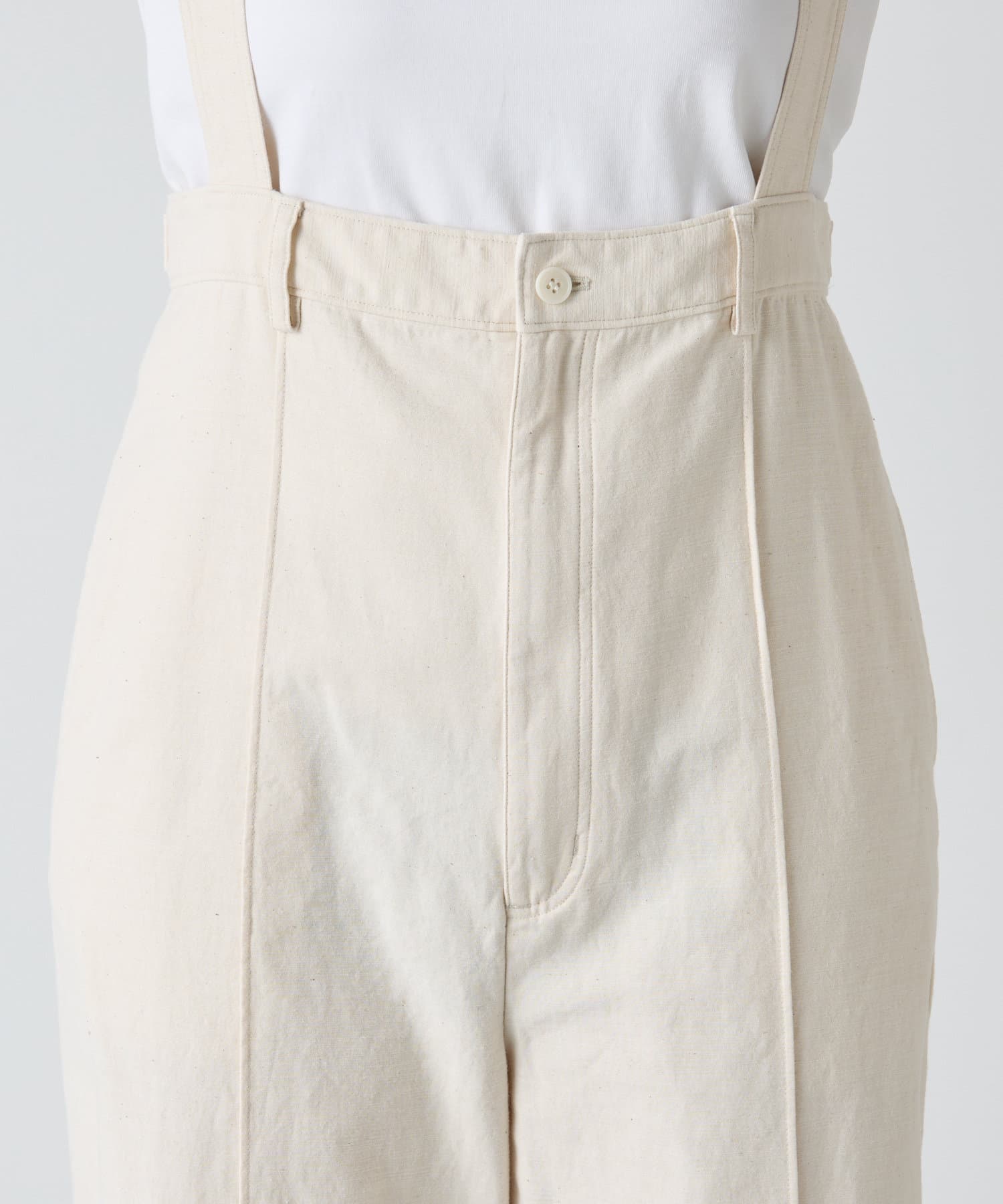 ■縫込み仕様のサスペンダーデザインが特徴のパンツ。