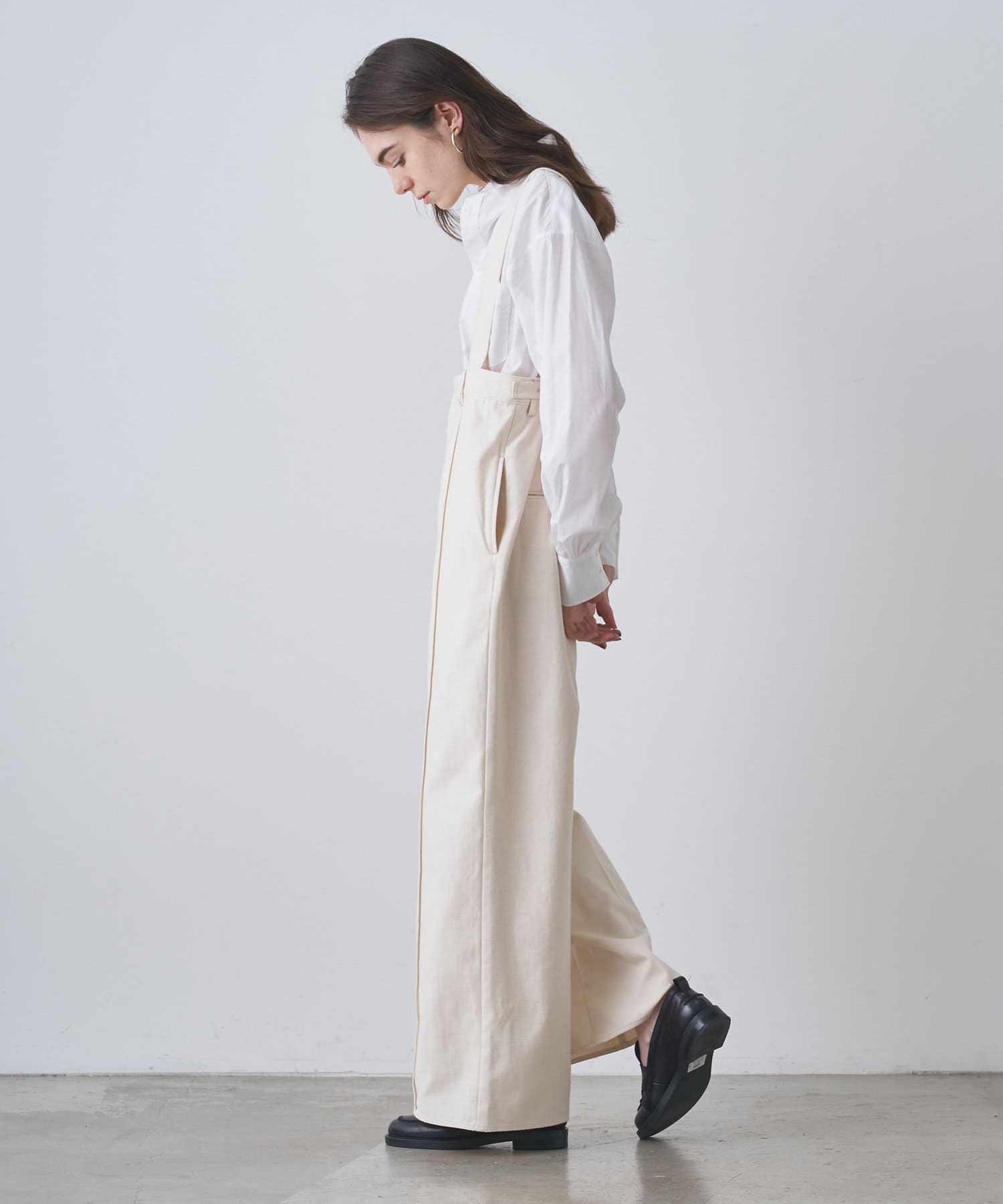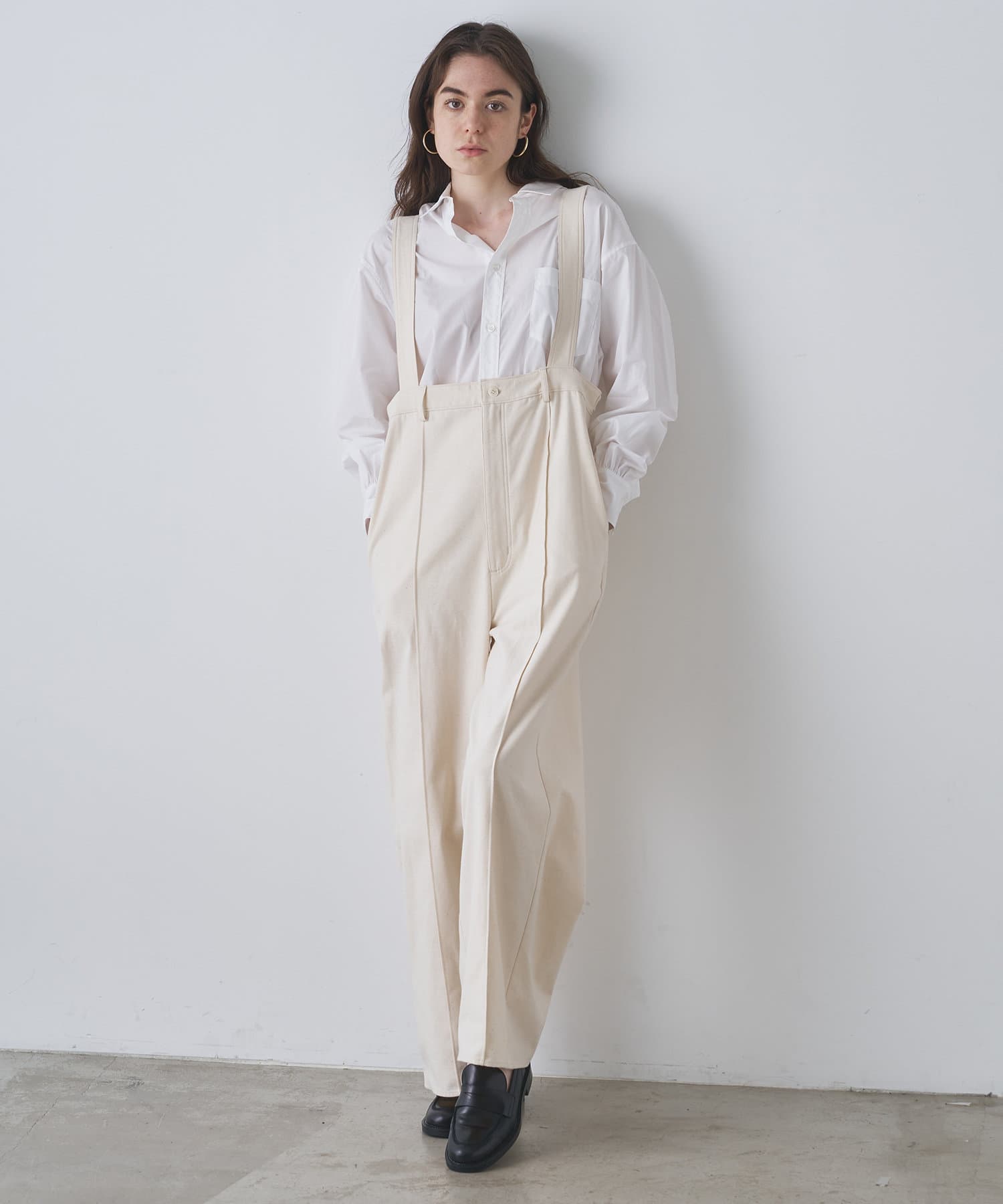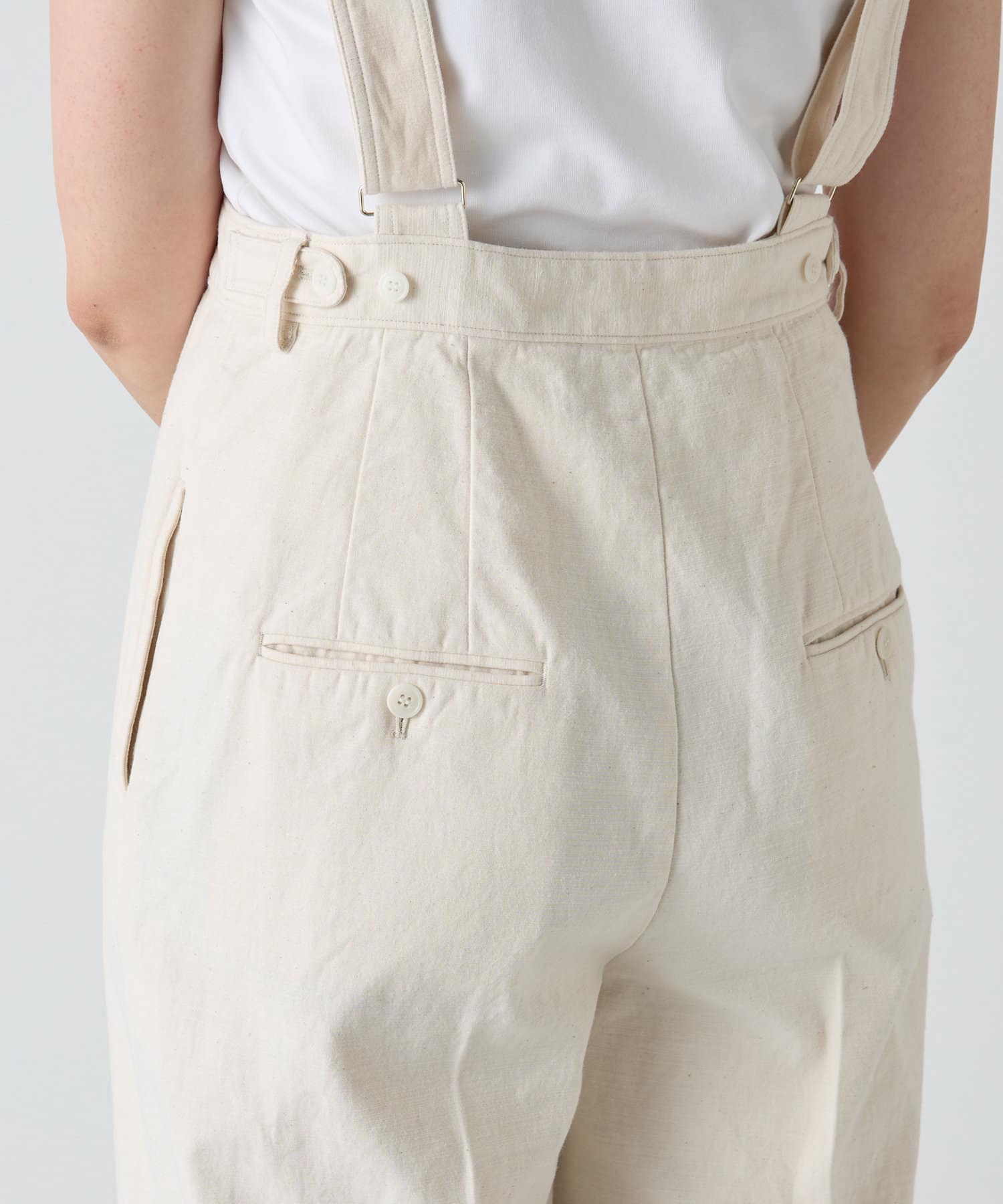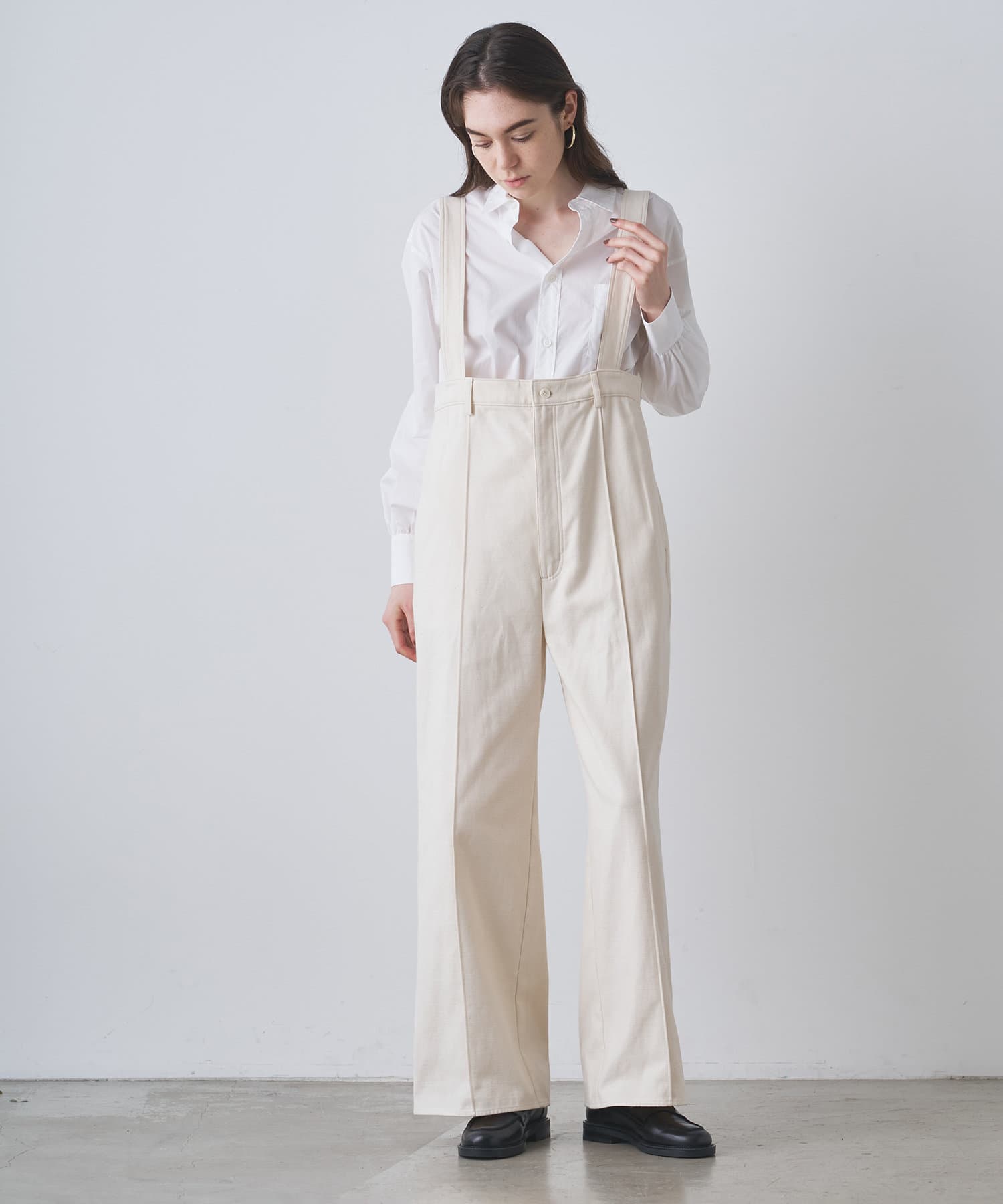 ■縫込み仕様のサスペンダーデザインが特徴のパンツ。