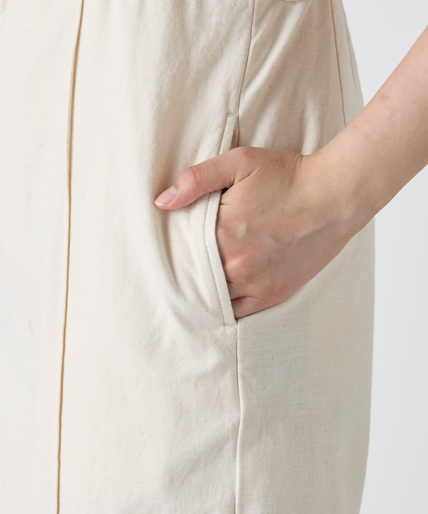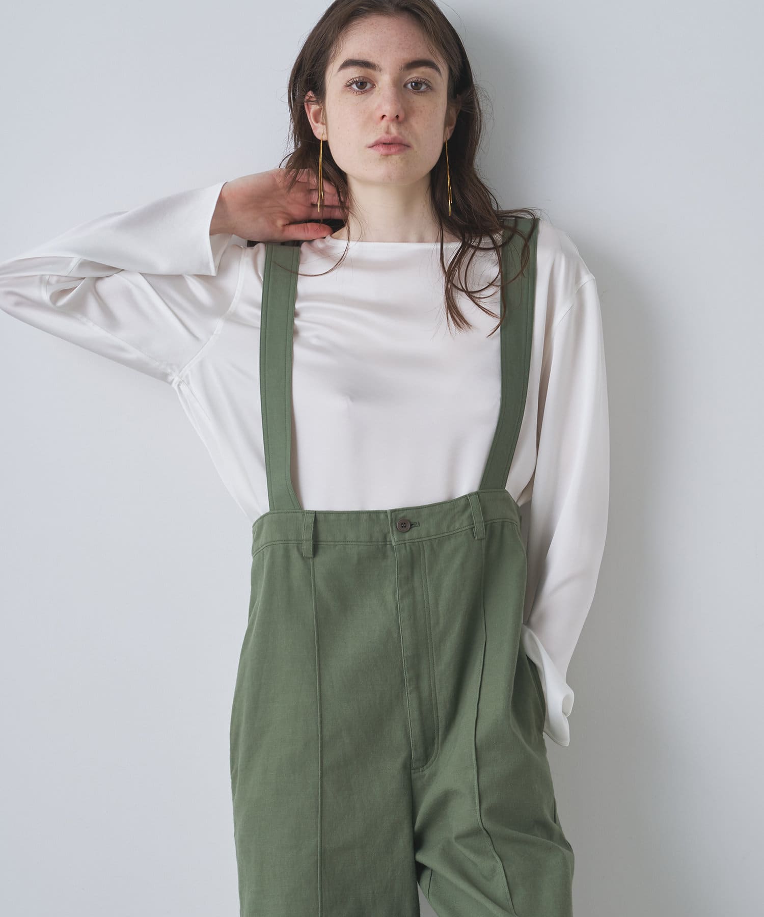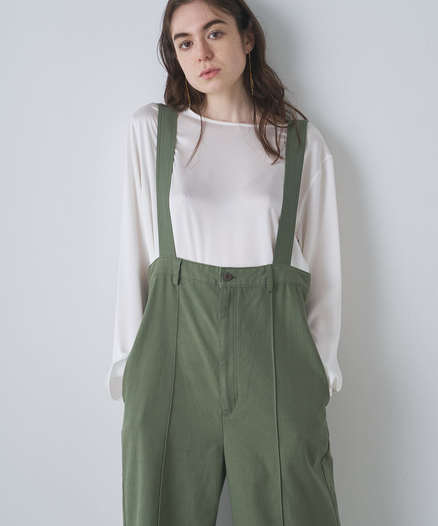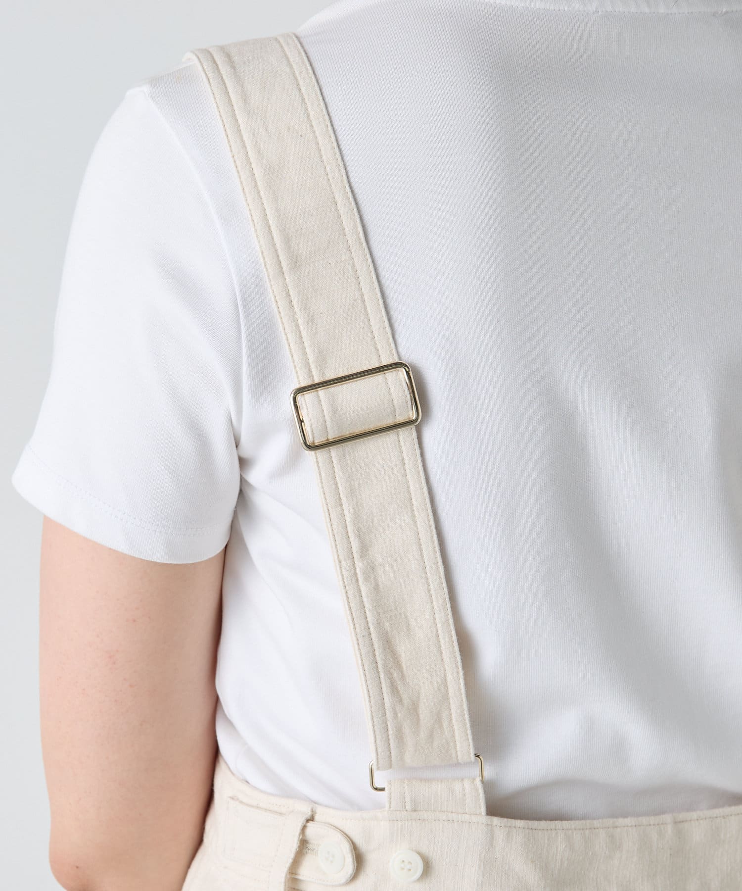 サロペットだと子供っぽい、、という方にも着やすいデザインかと思います。ウエスト位置がかなり高いので、やや細身なトップスと合わせるのがおすすめです。素材も通年着れるコットンなのも嬉しい。