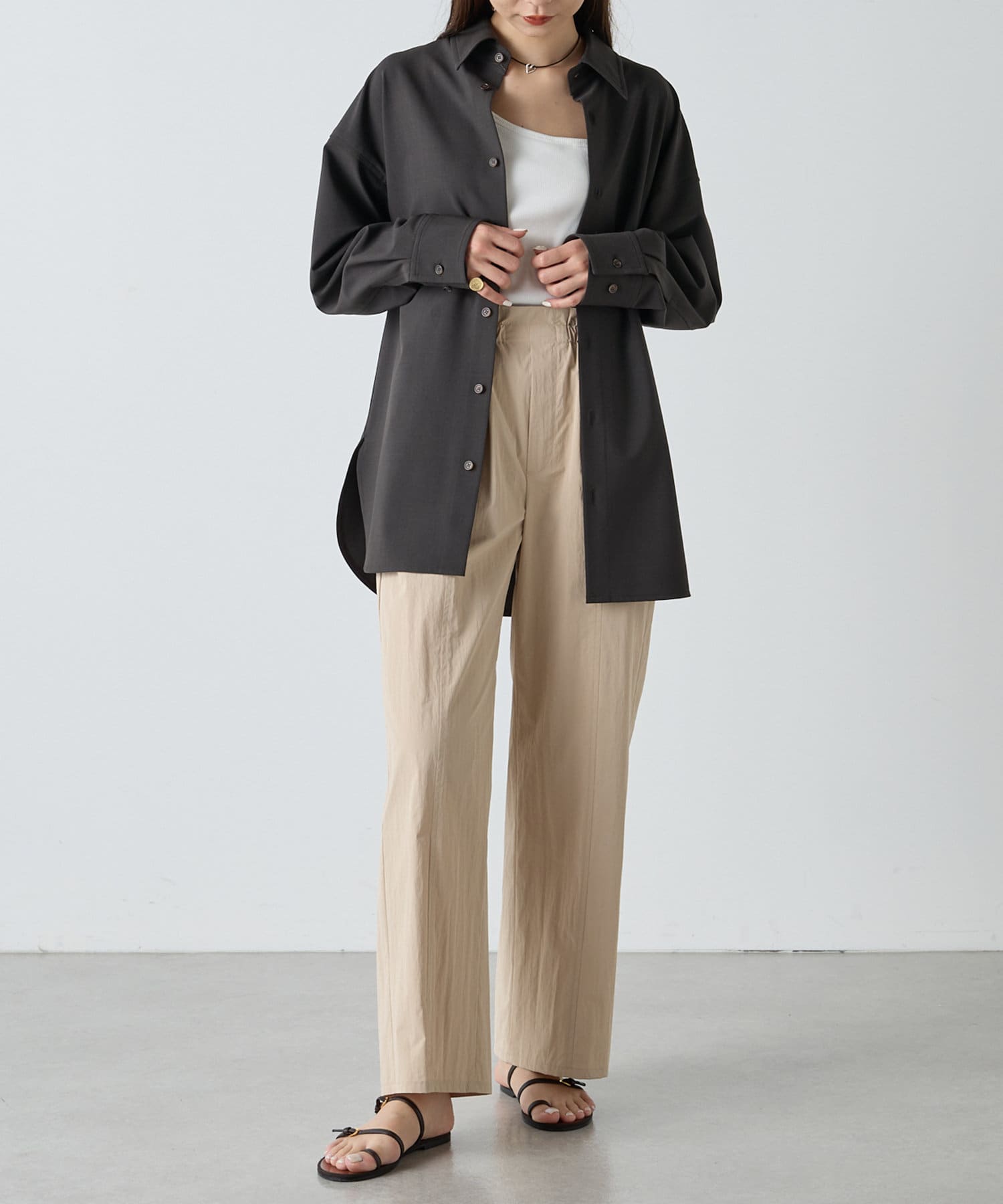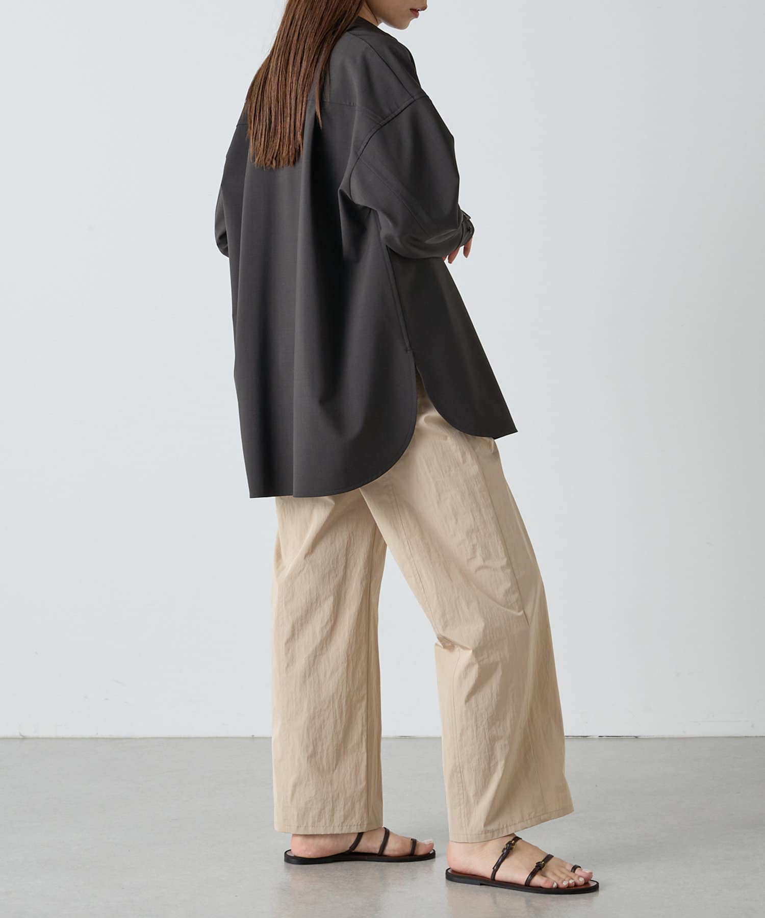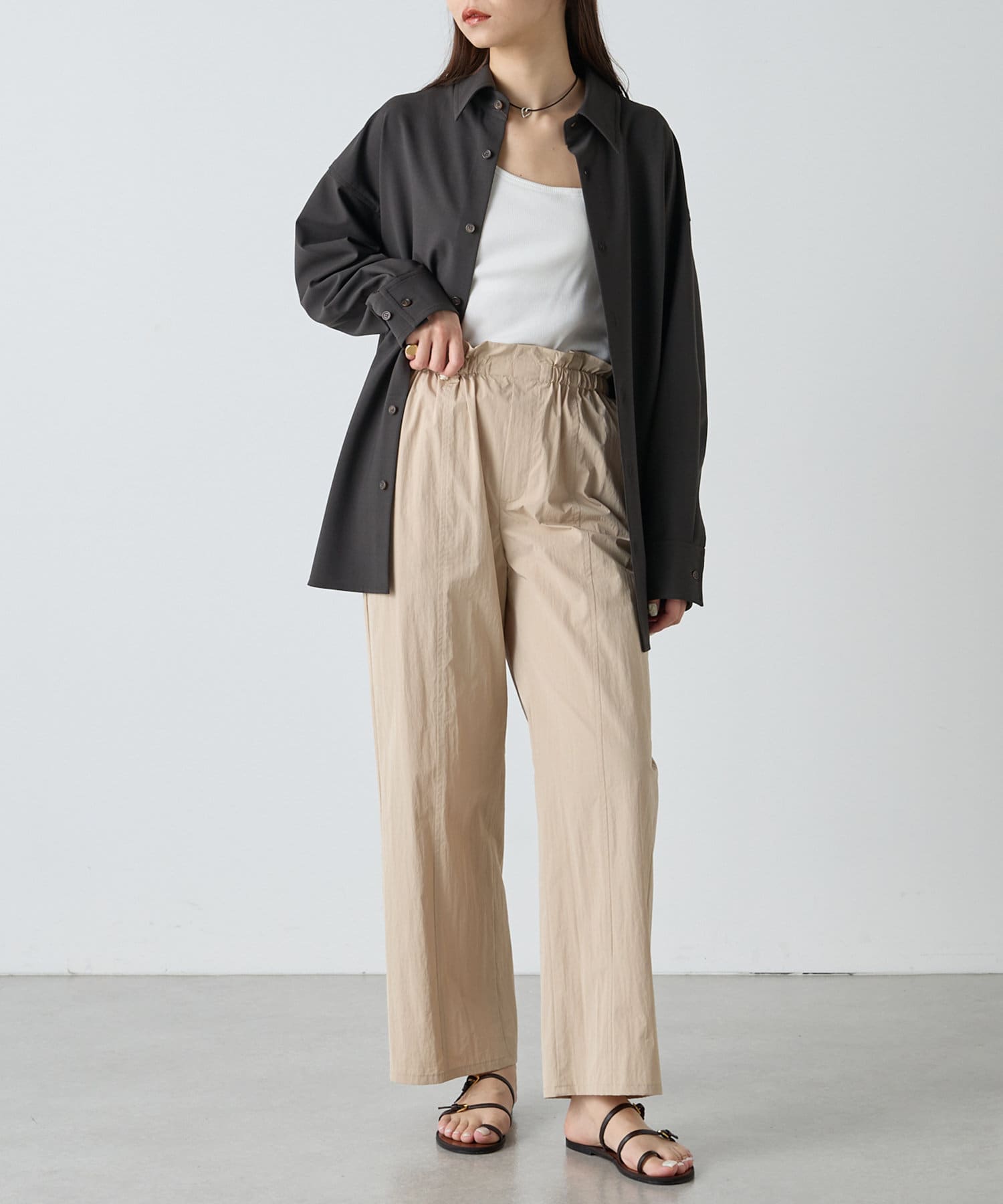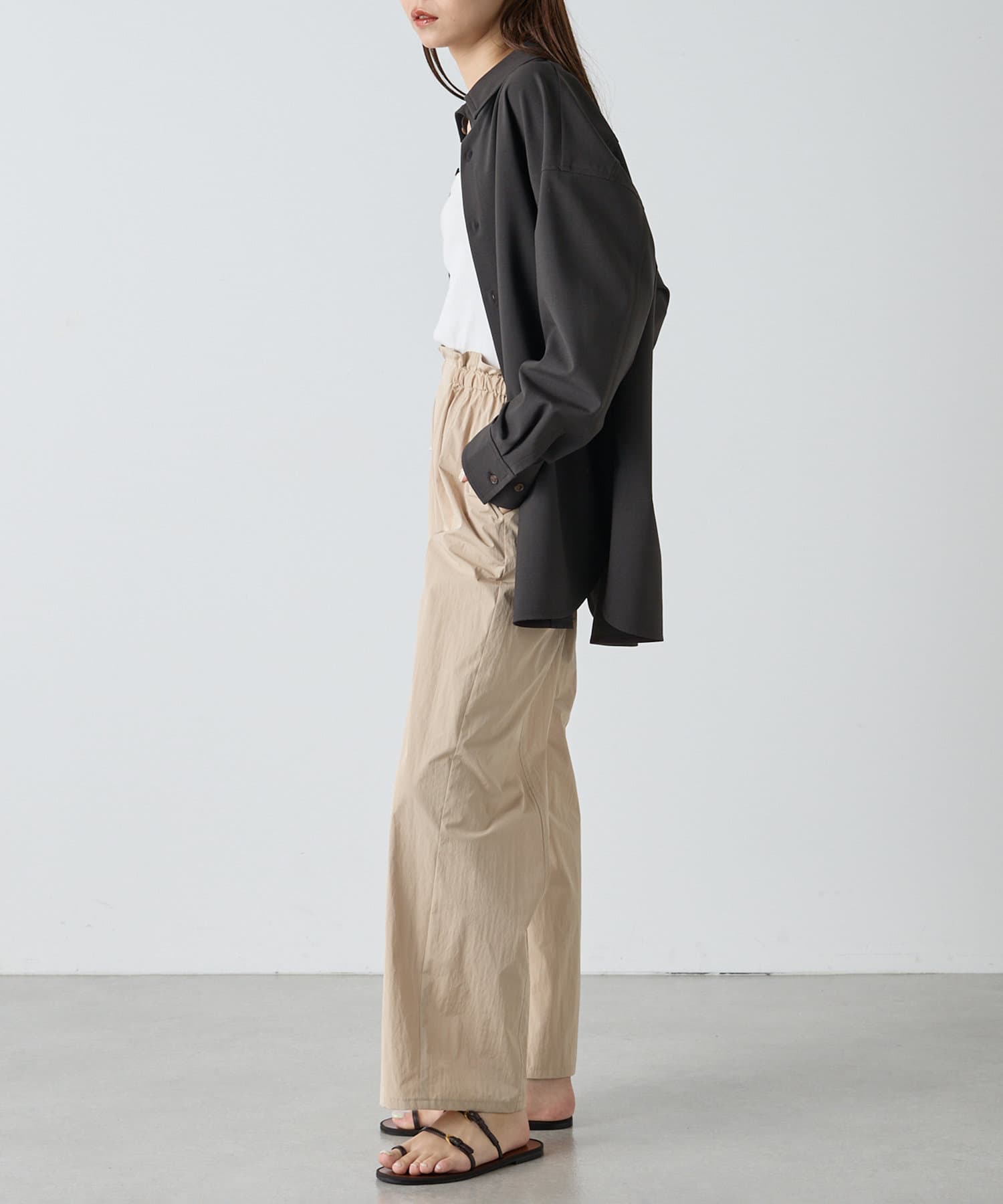 ■すっきりとしたストレートシルエットにウエストギャザーがアクセントになる一枚。