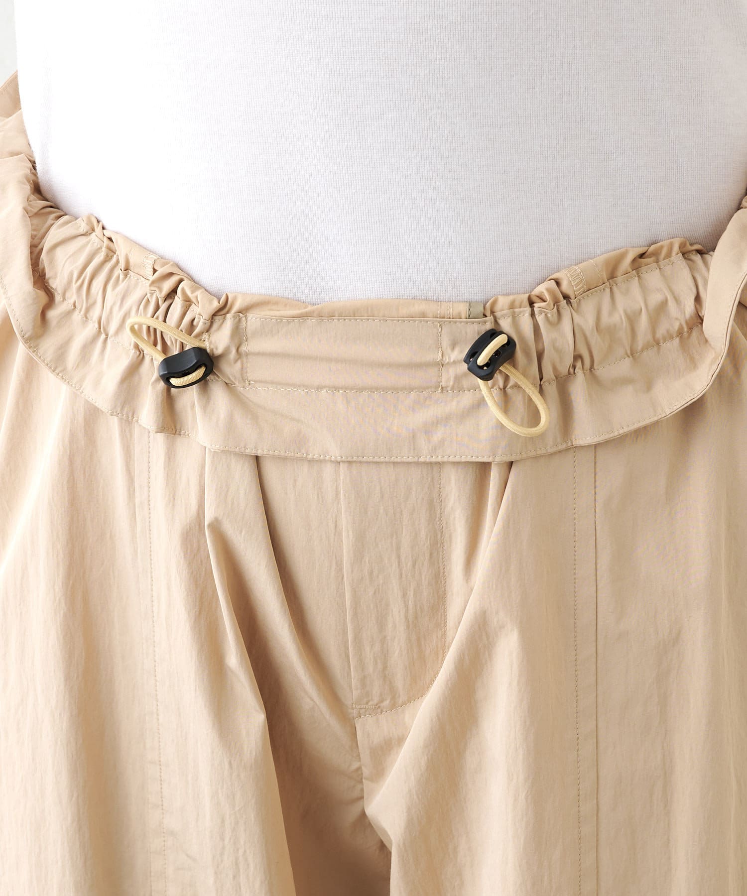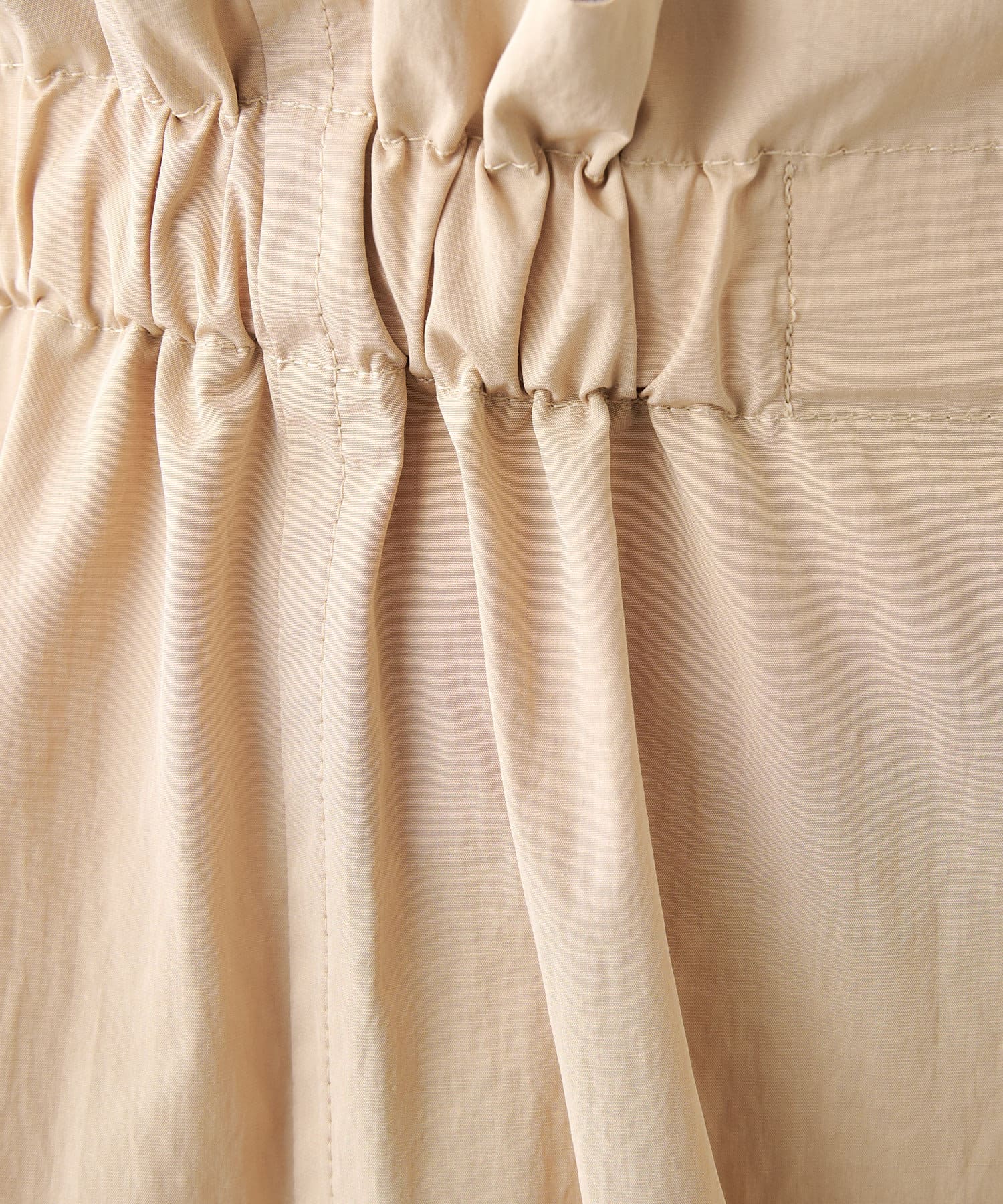 防水 × 速乾の万能アイテム。カジュアルな素材ですが、淡いベージュが綺麗な印象にしてくれるので大人も素敵に着られます◎