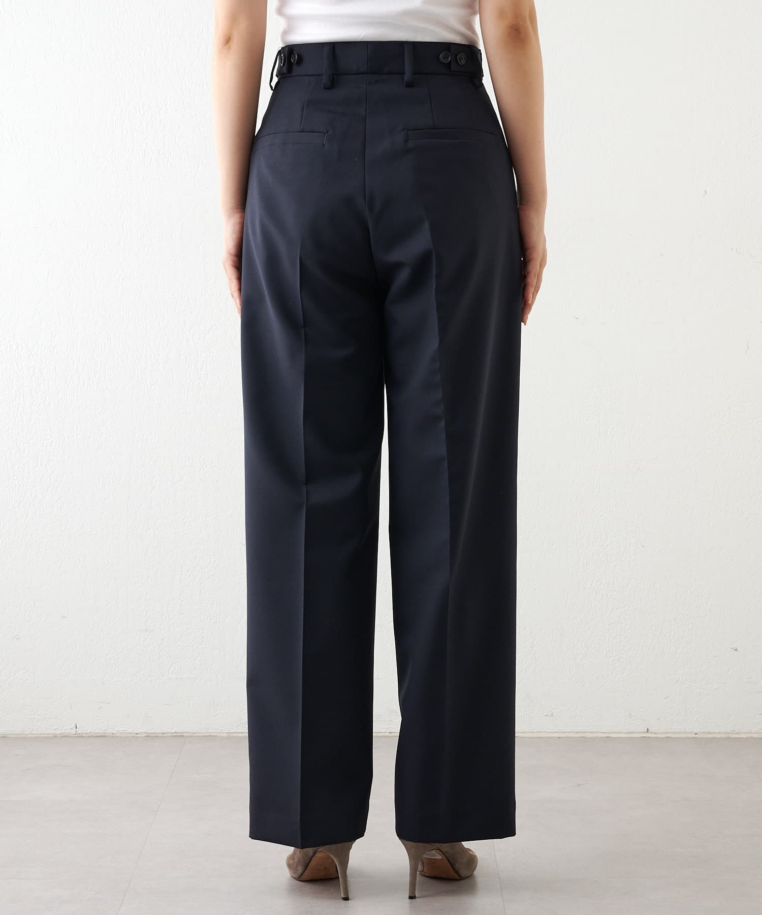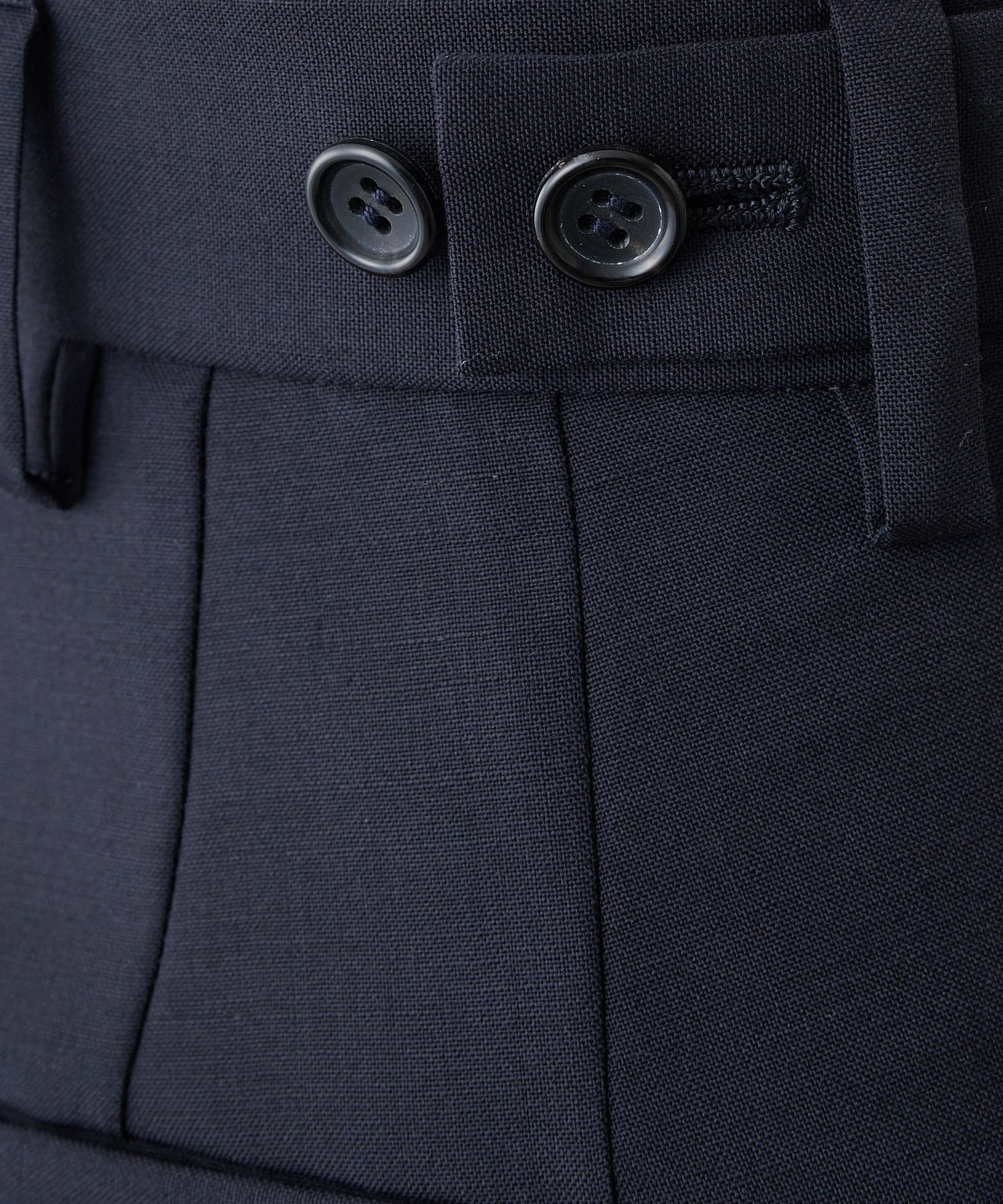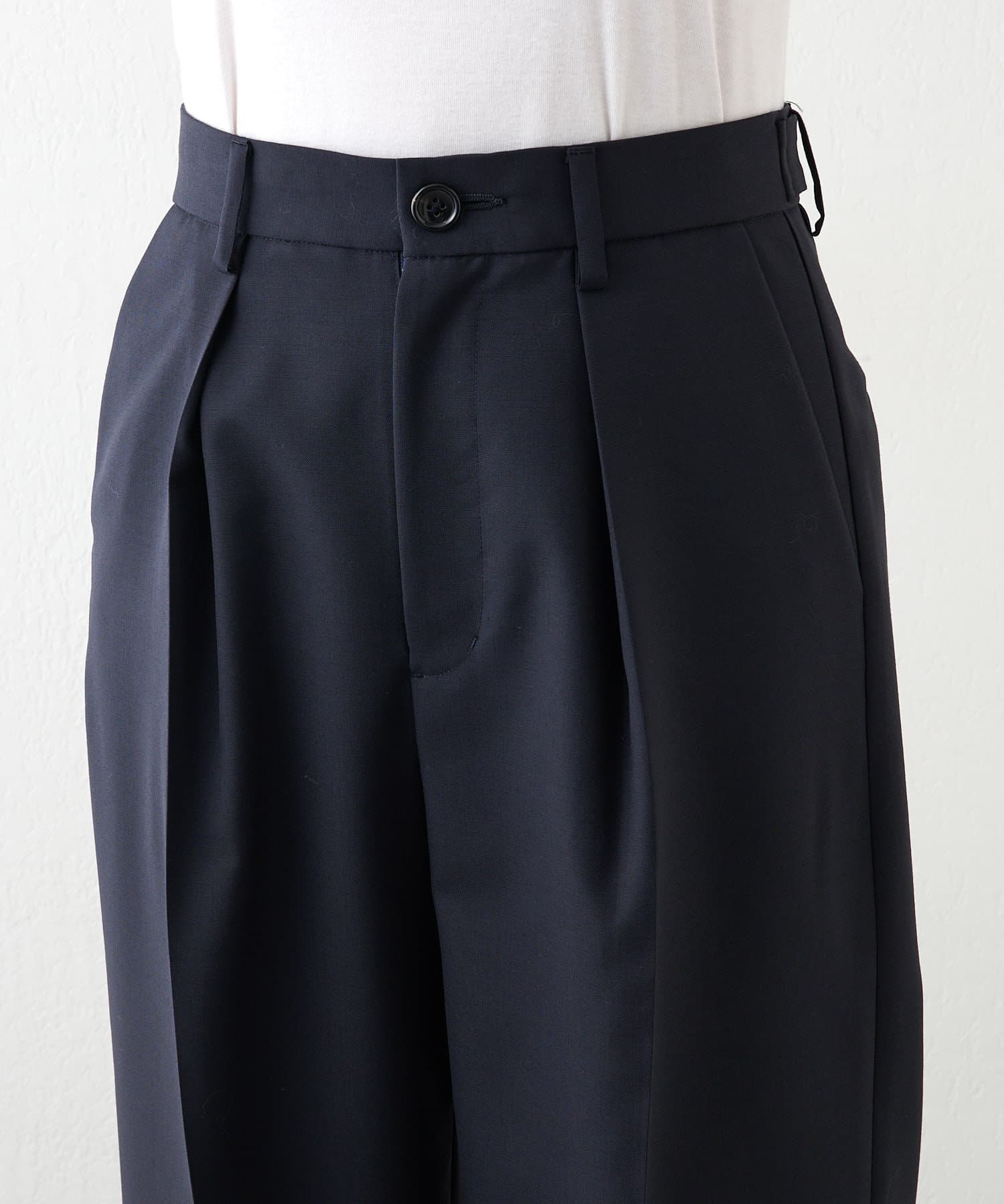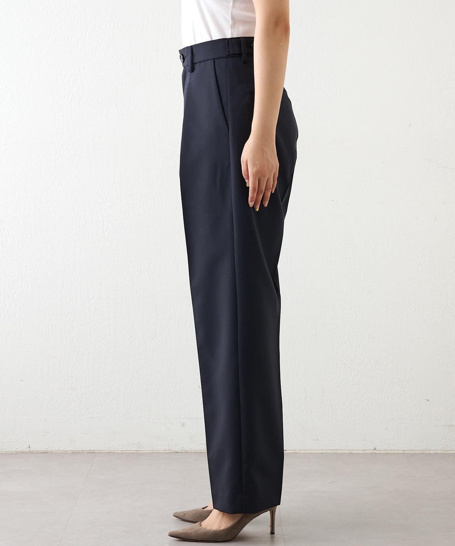■ドライでコシのあるスーツ素材を使用したタックパンツ。