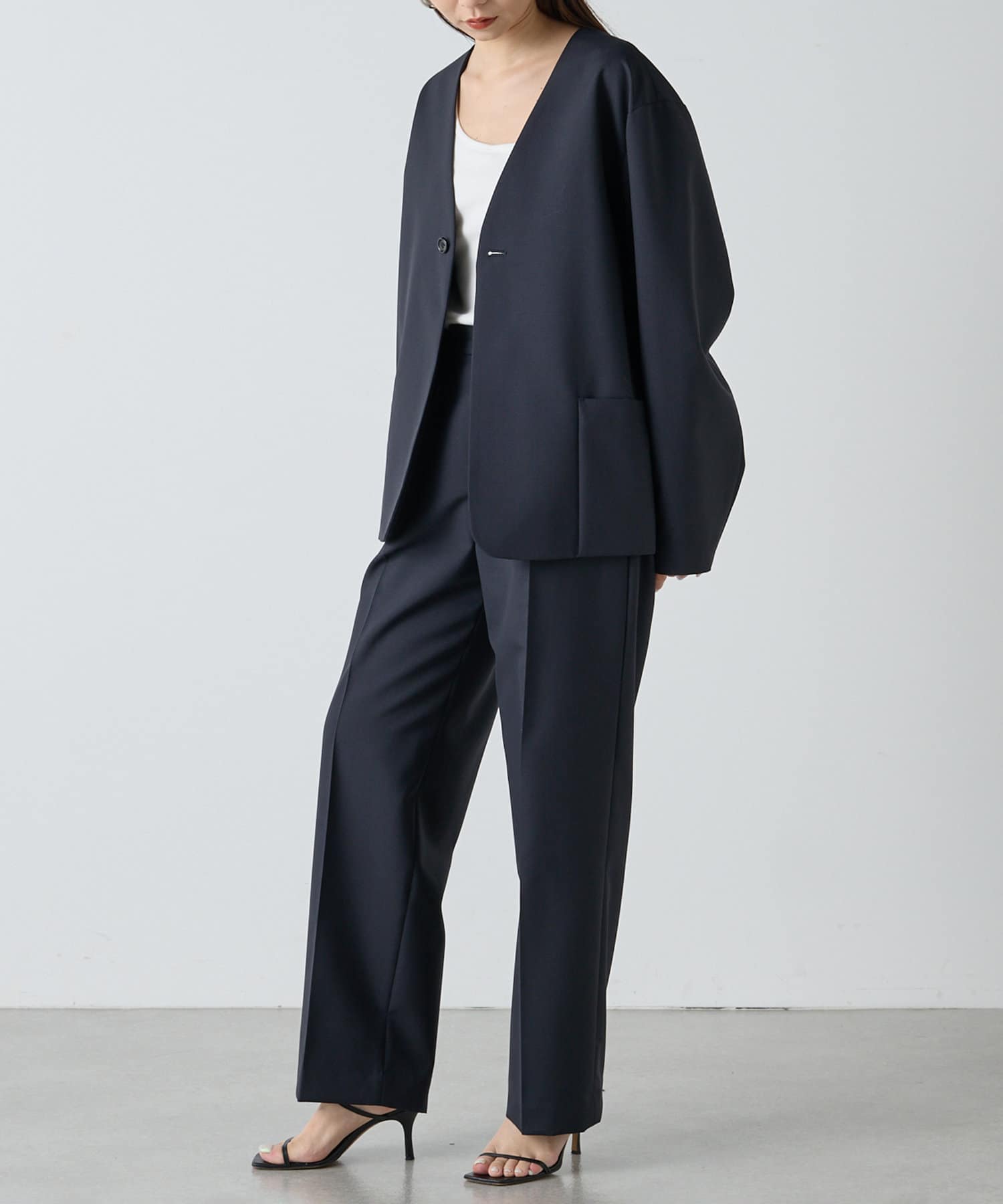 ■同素材のウールモヘアノーカラージャケット(ブランド品番:DNZ1042107A0011)とのセットアップもおすすめ。