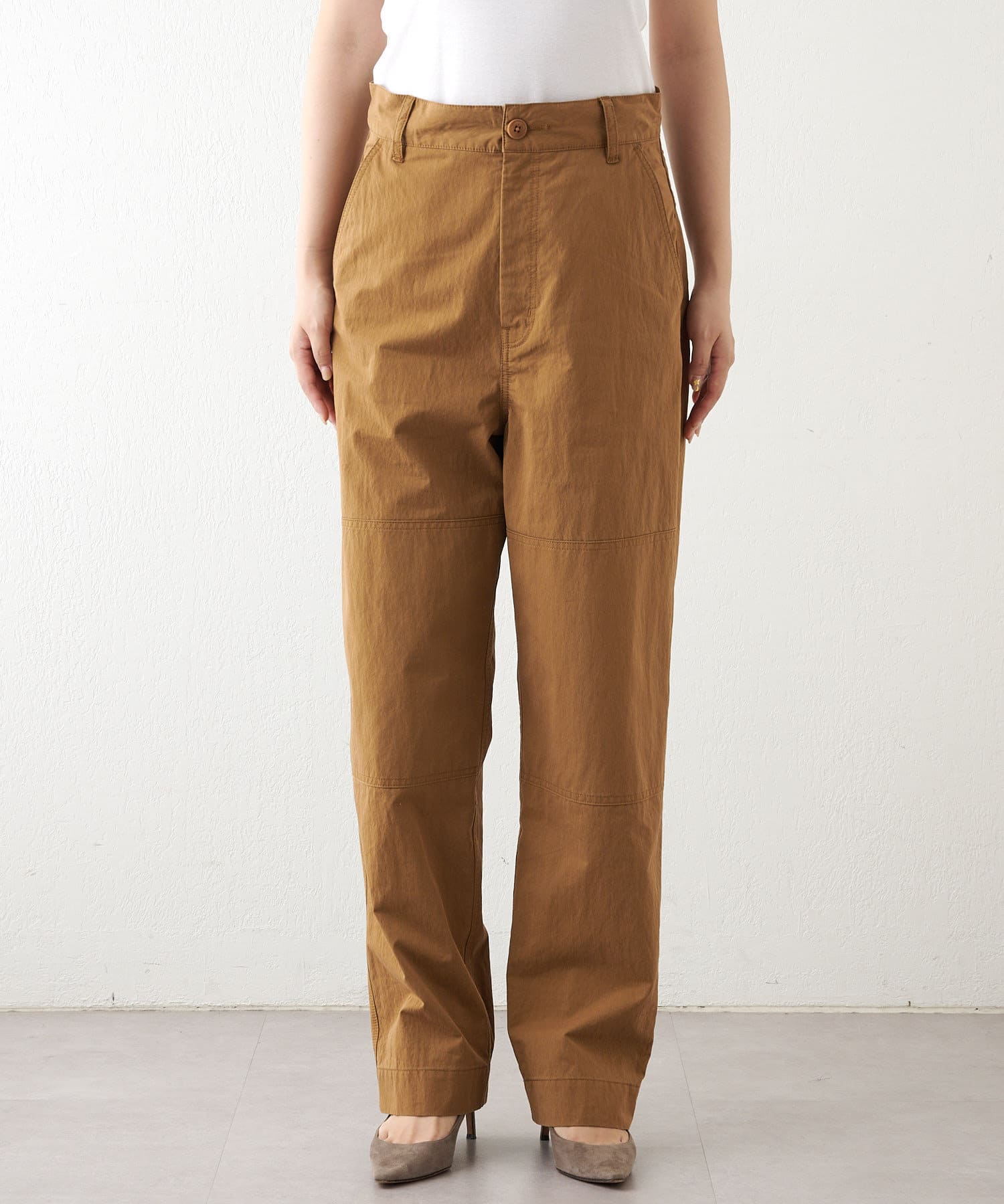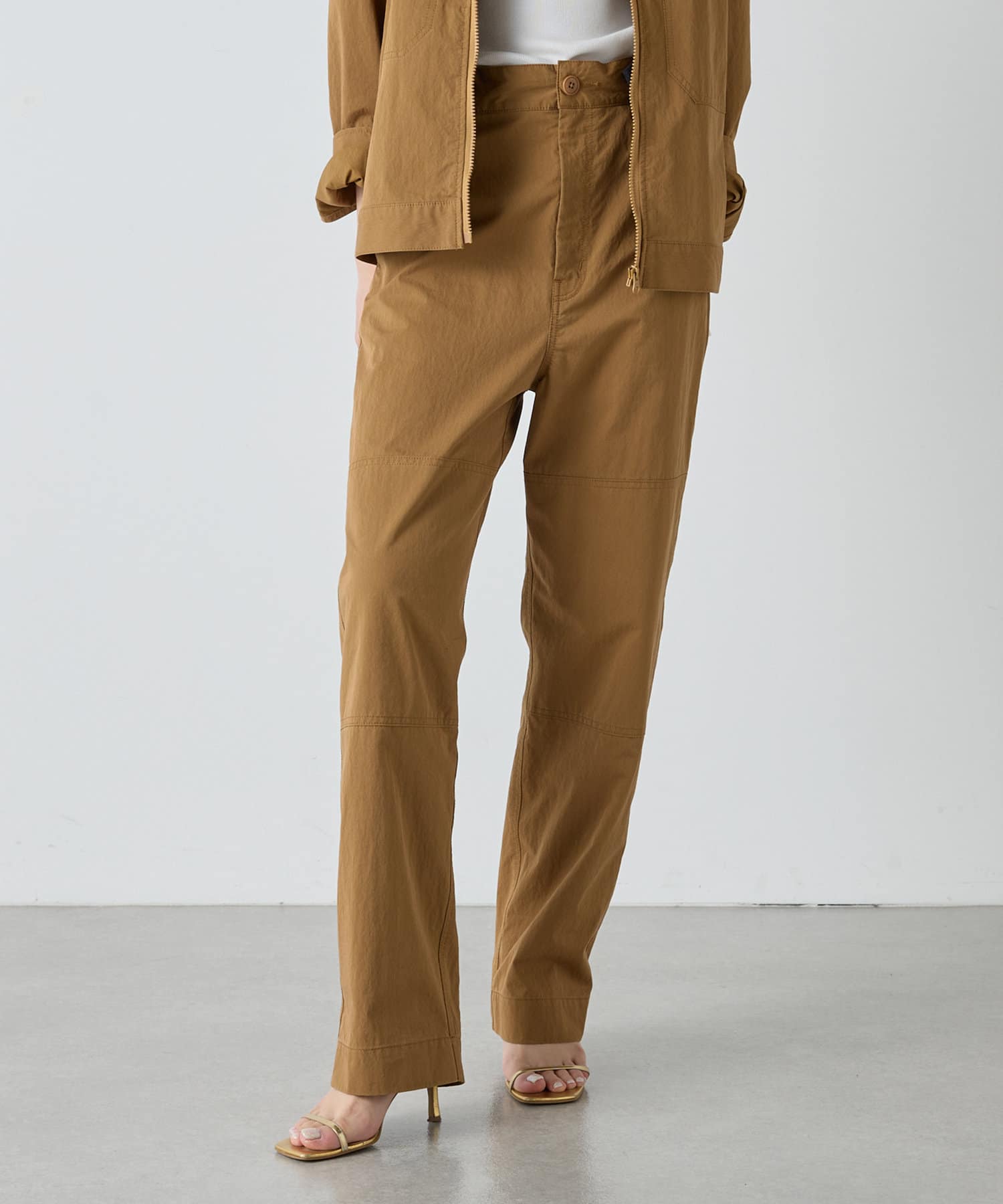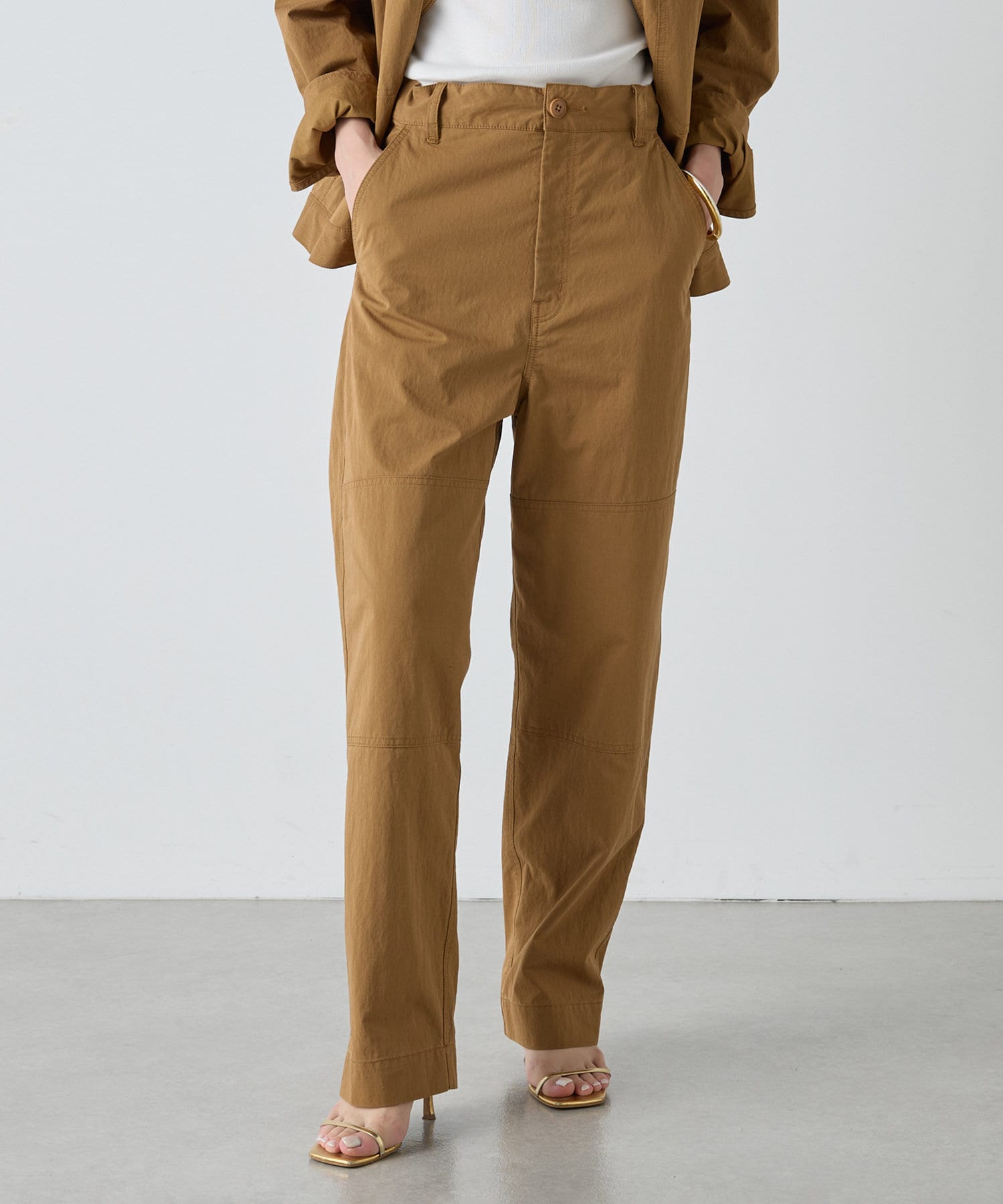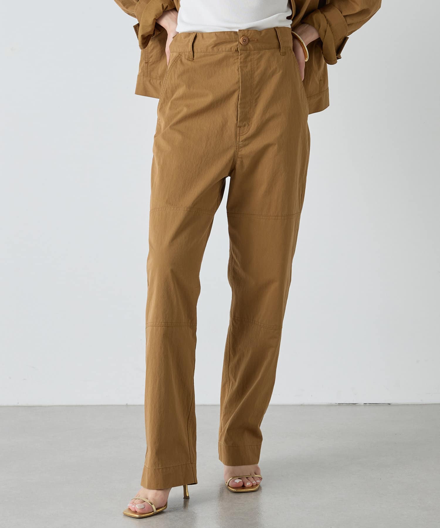 ■高密度のツイルワッシャー生地で仕立てたストレートパンツ。