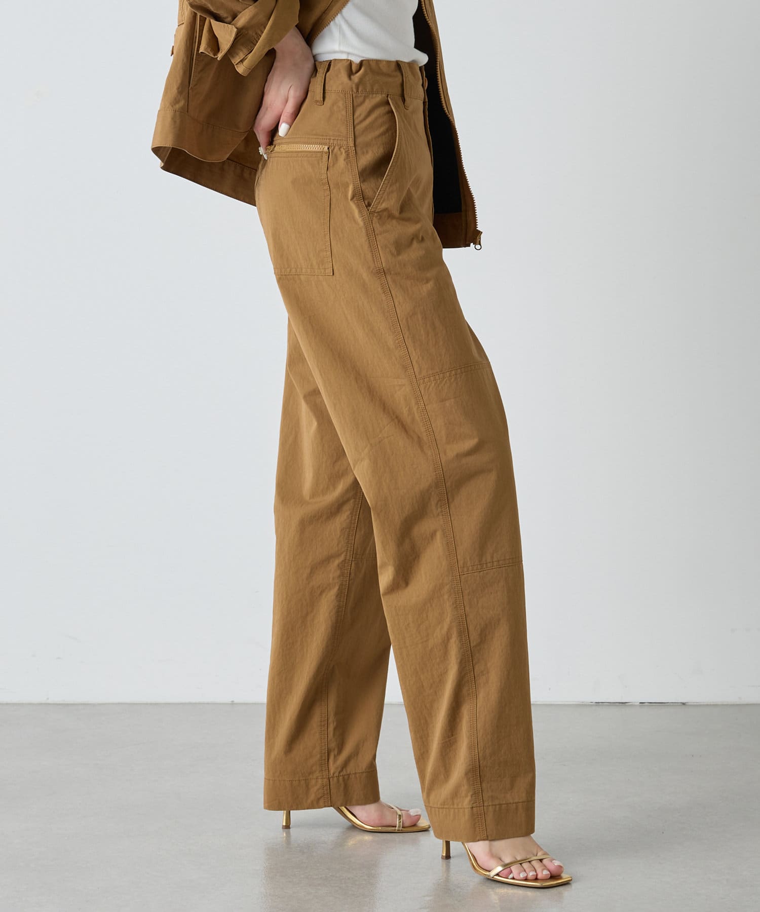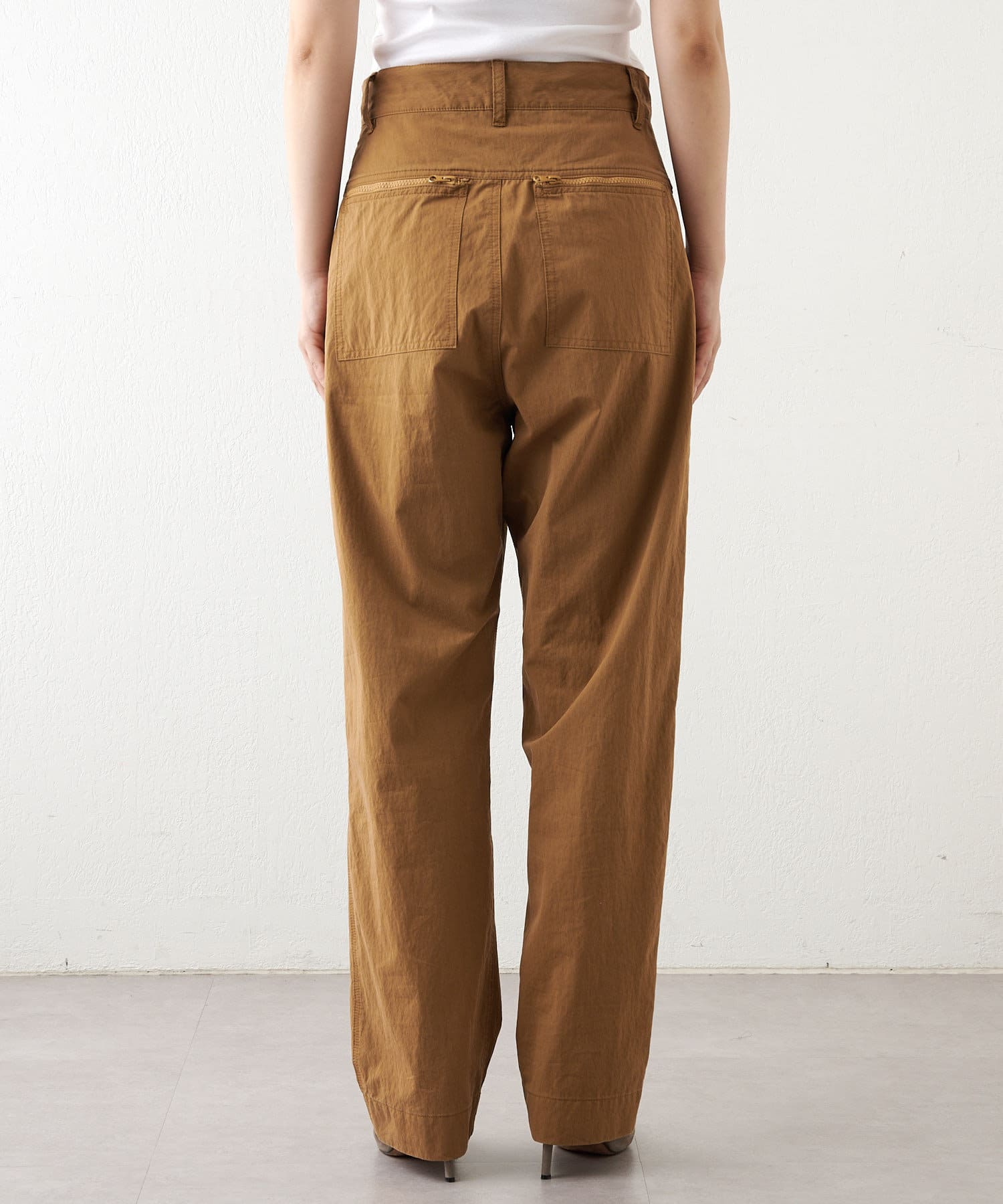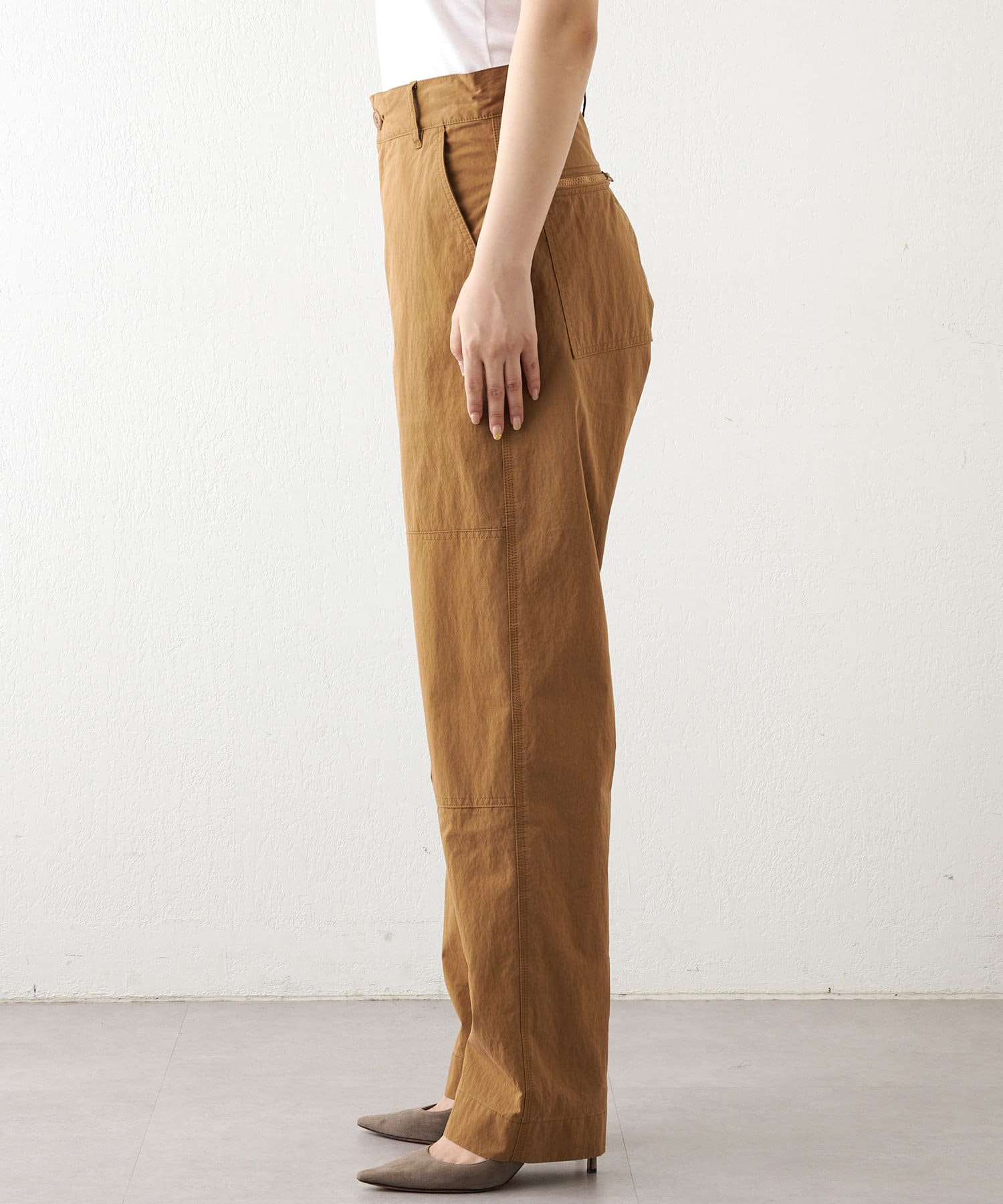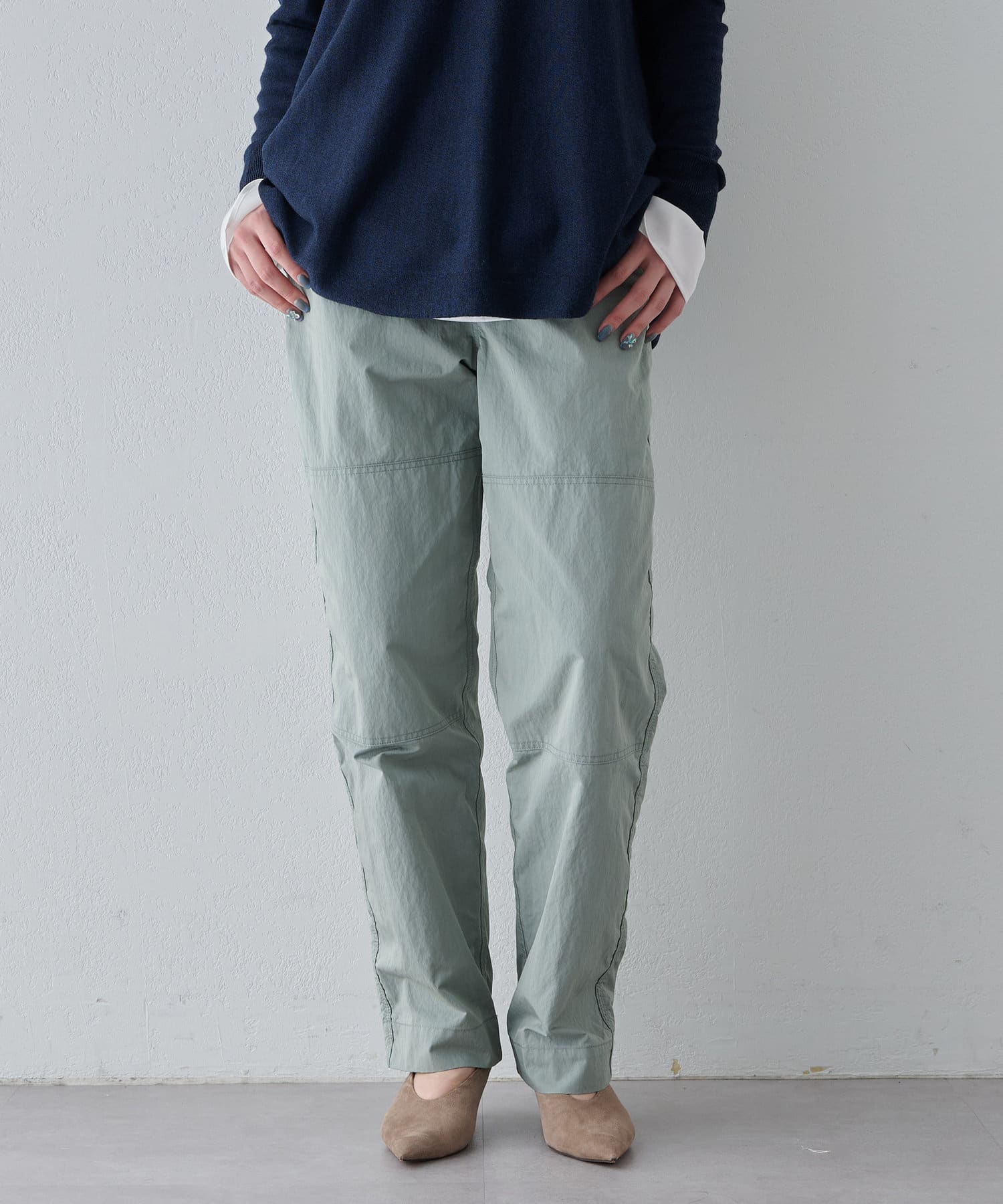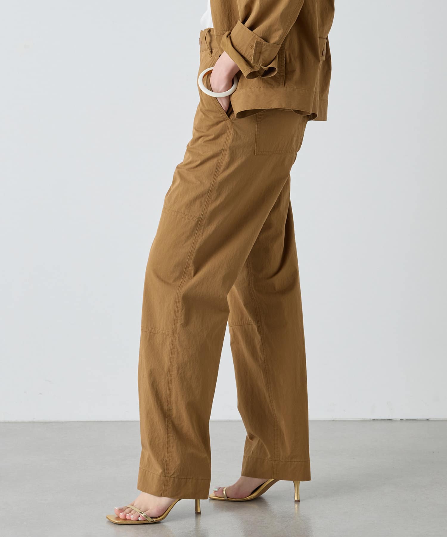 ■高密度のツイルワッシャー生地で仕立てたストレートパンツ。
