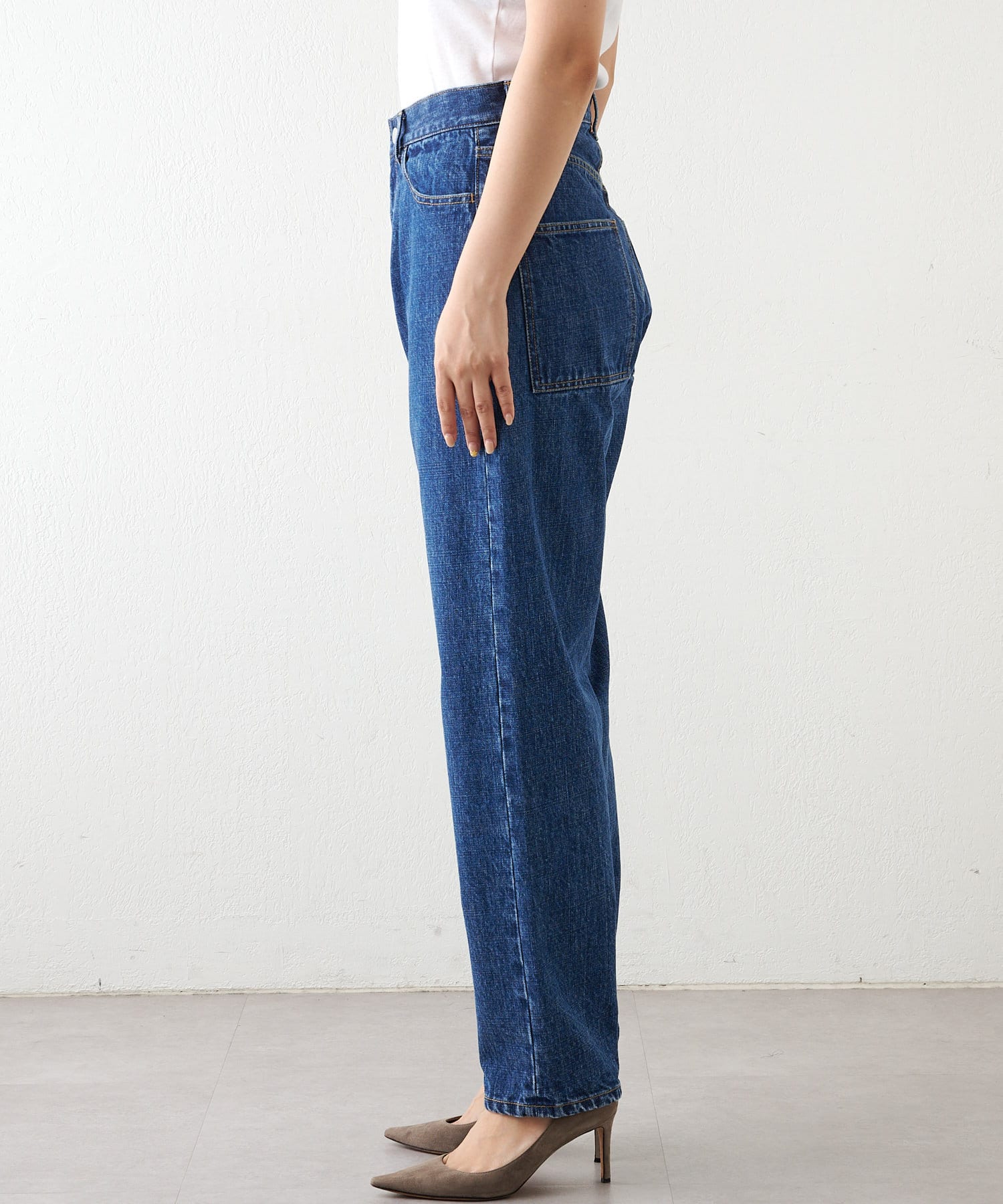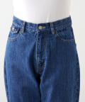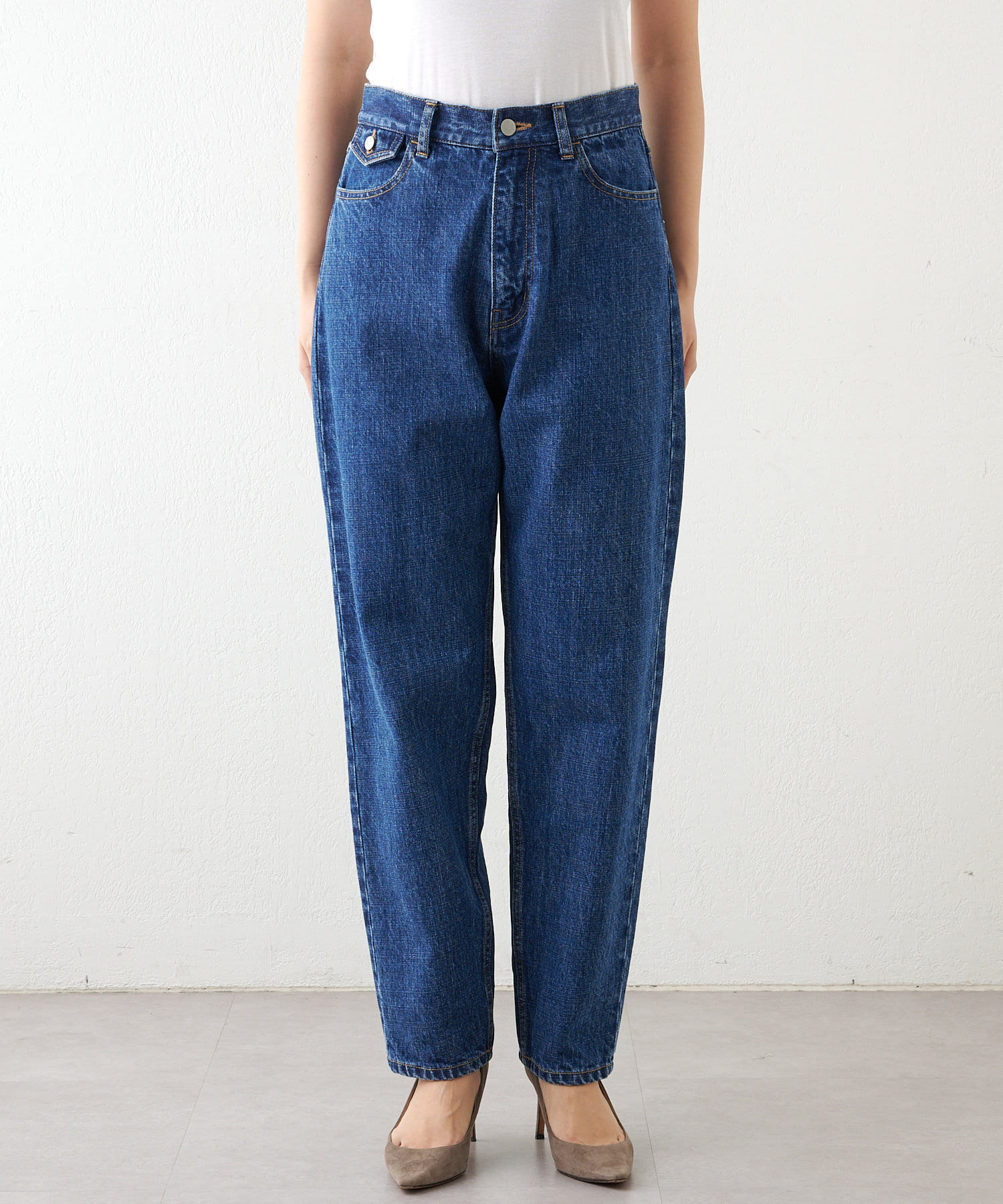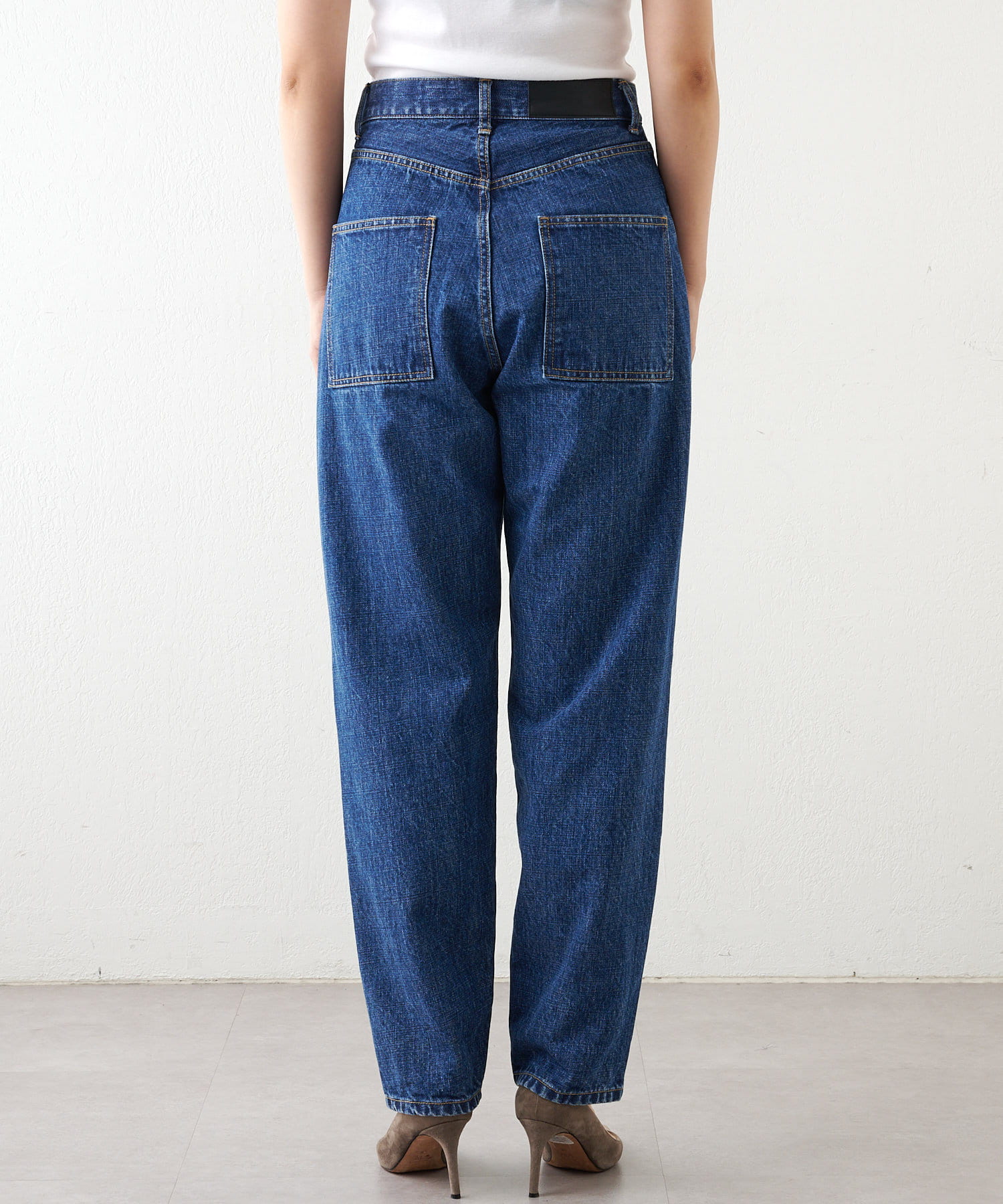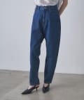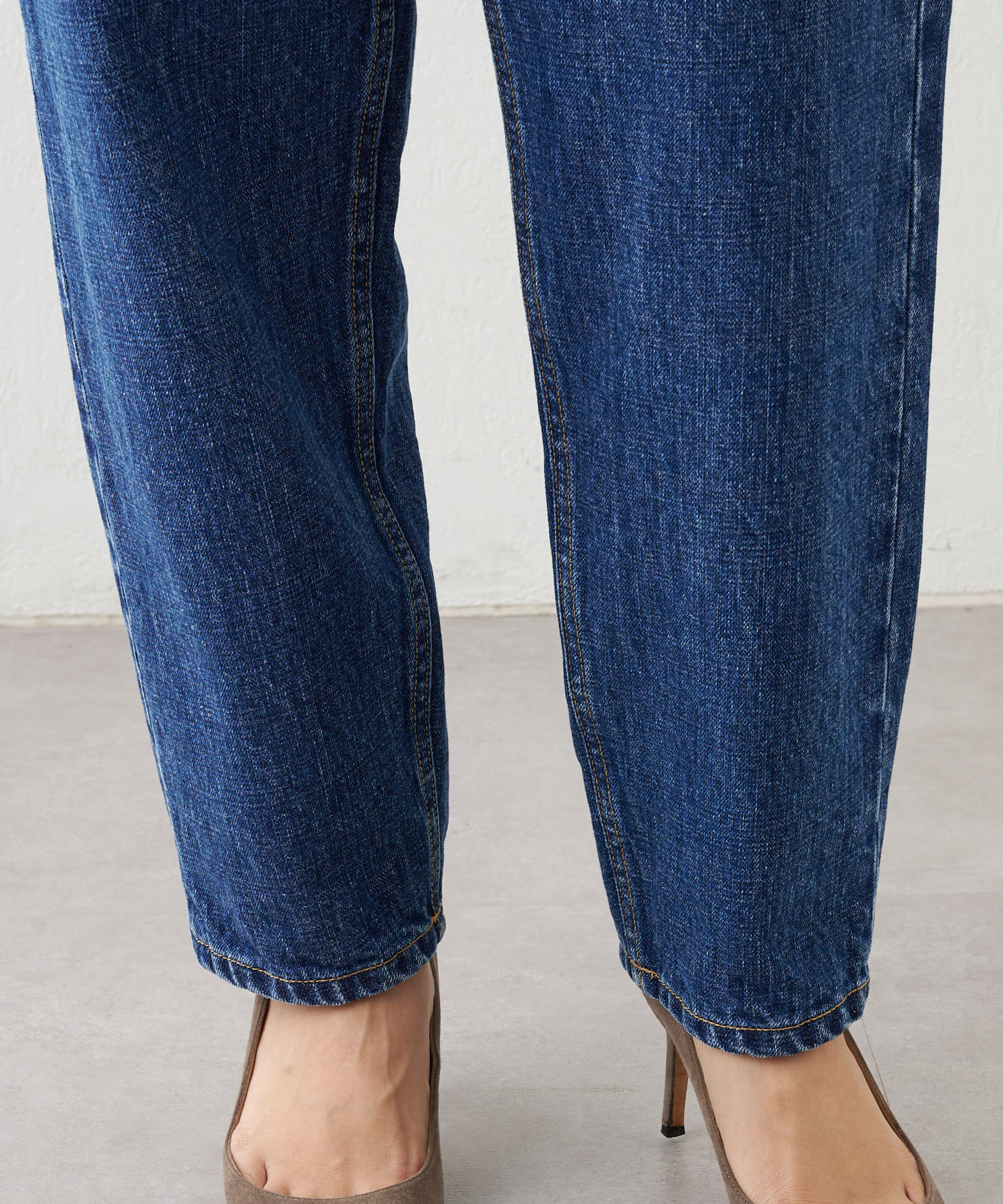 ■細めなプレーンテーパードシルエットのデニムパンツ。