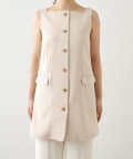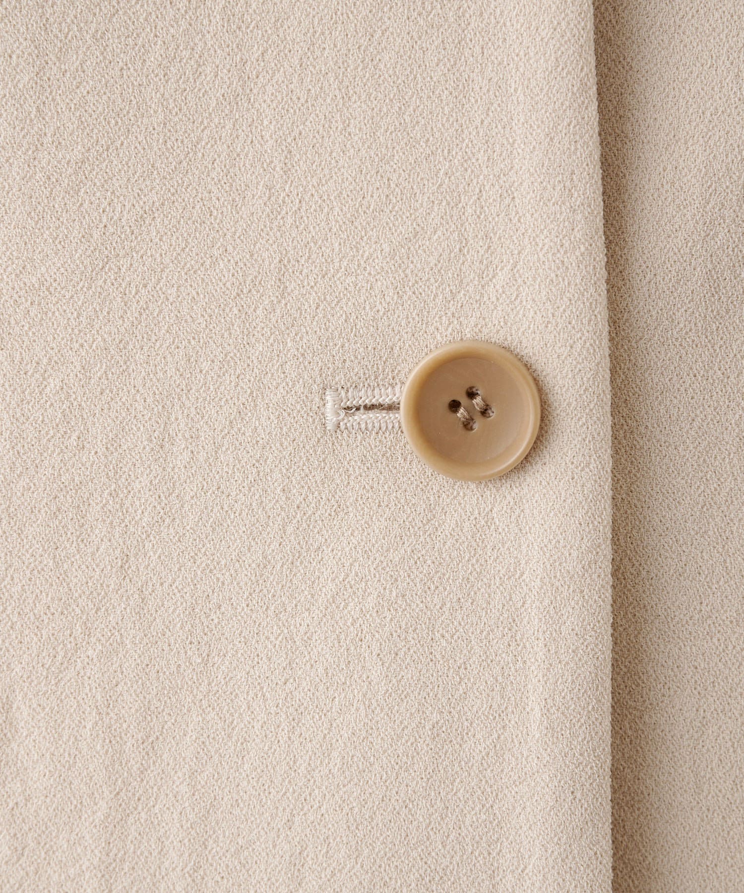珍しい質感と、スクエアネックがポイント。マニッシュすぎず、女性らしい雰囲気。お尻も隠れて、さらにすっきりとしたウエストラインに見せてくれます。