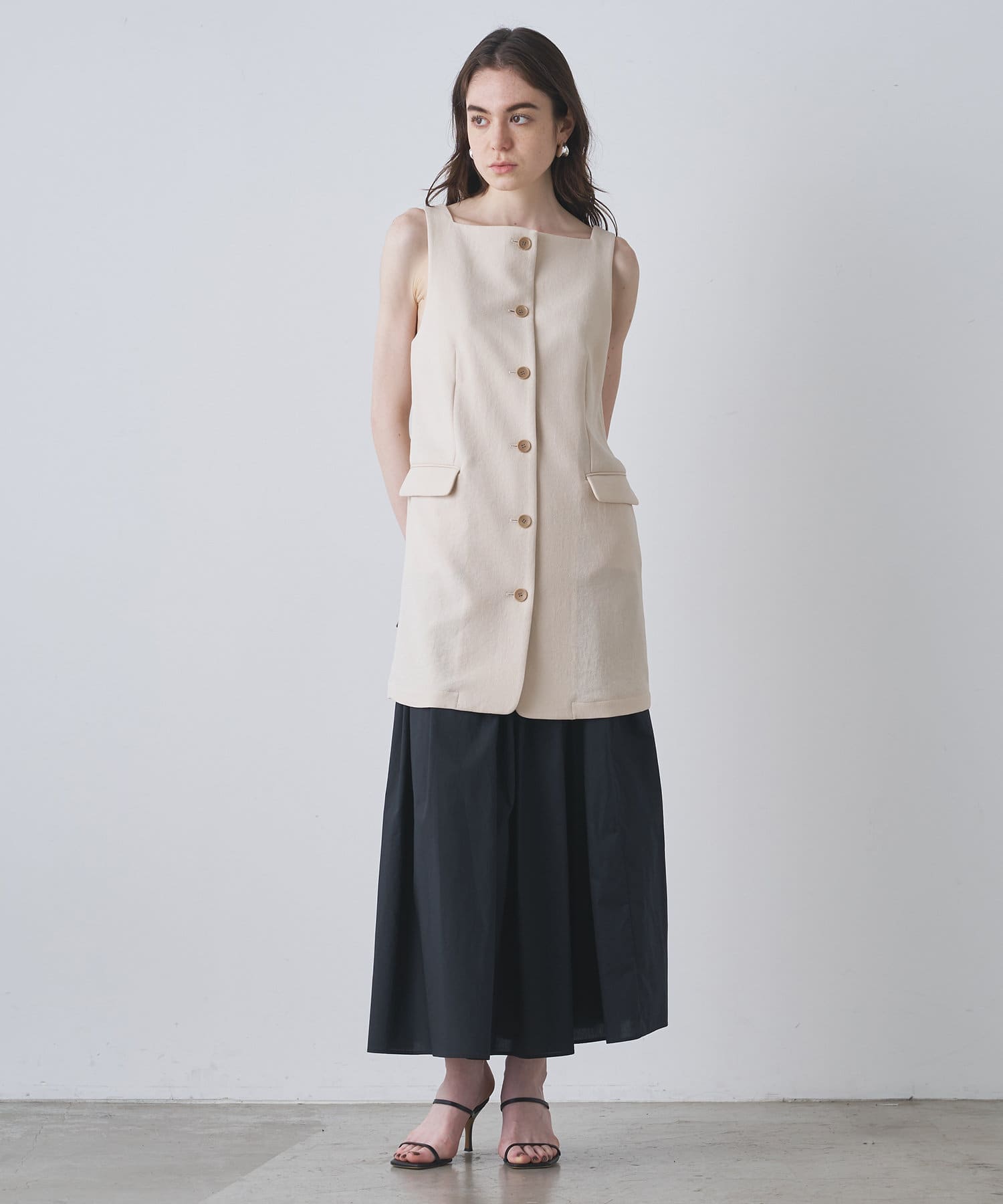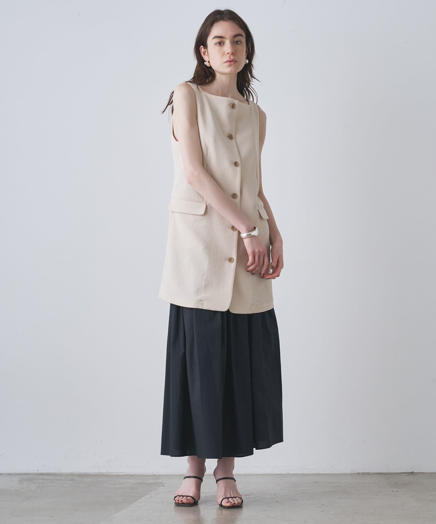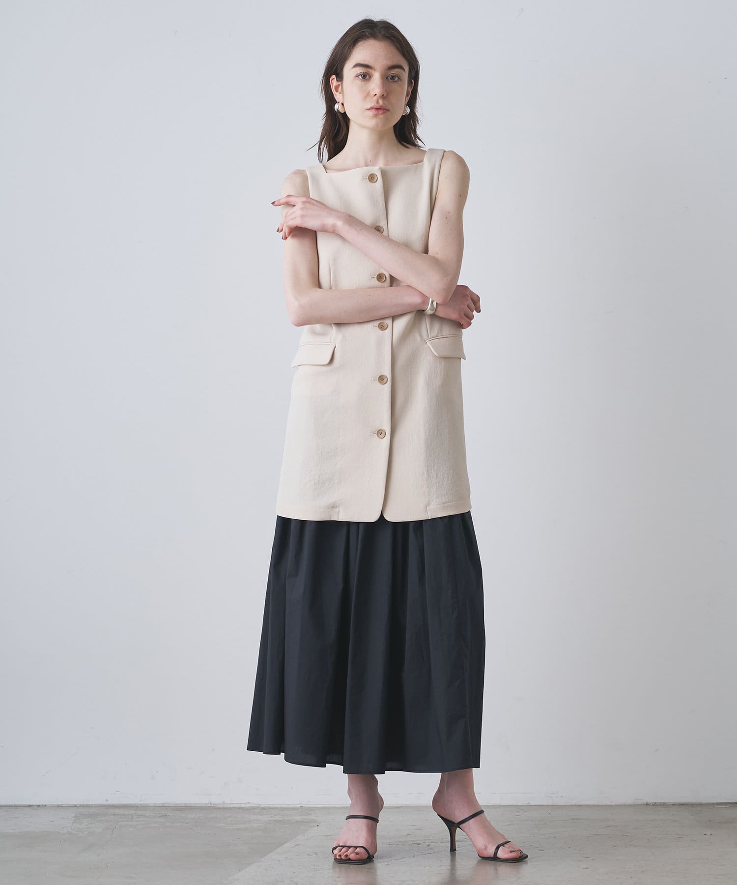 レディライクに楽しめる、エレガントなロング丈ジレ