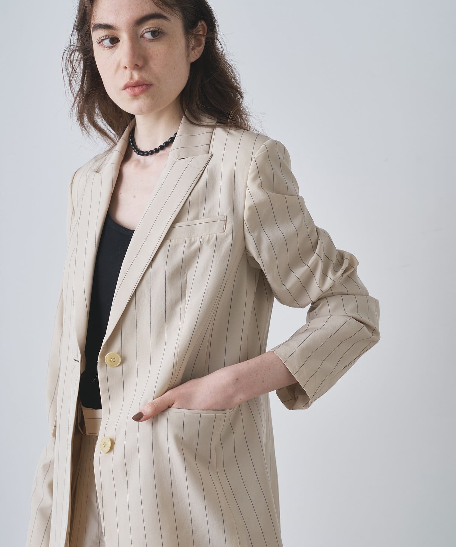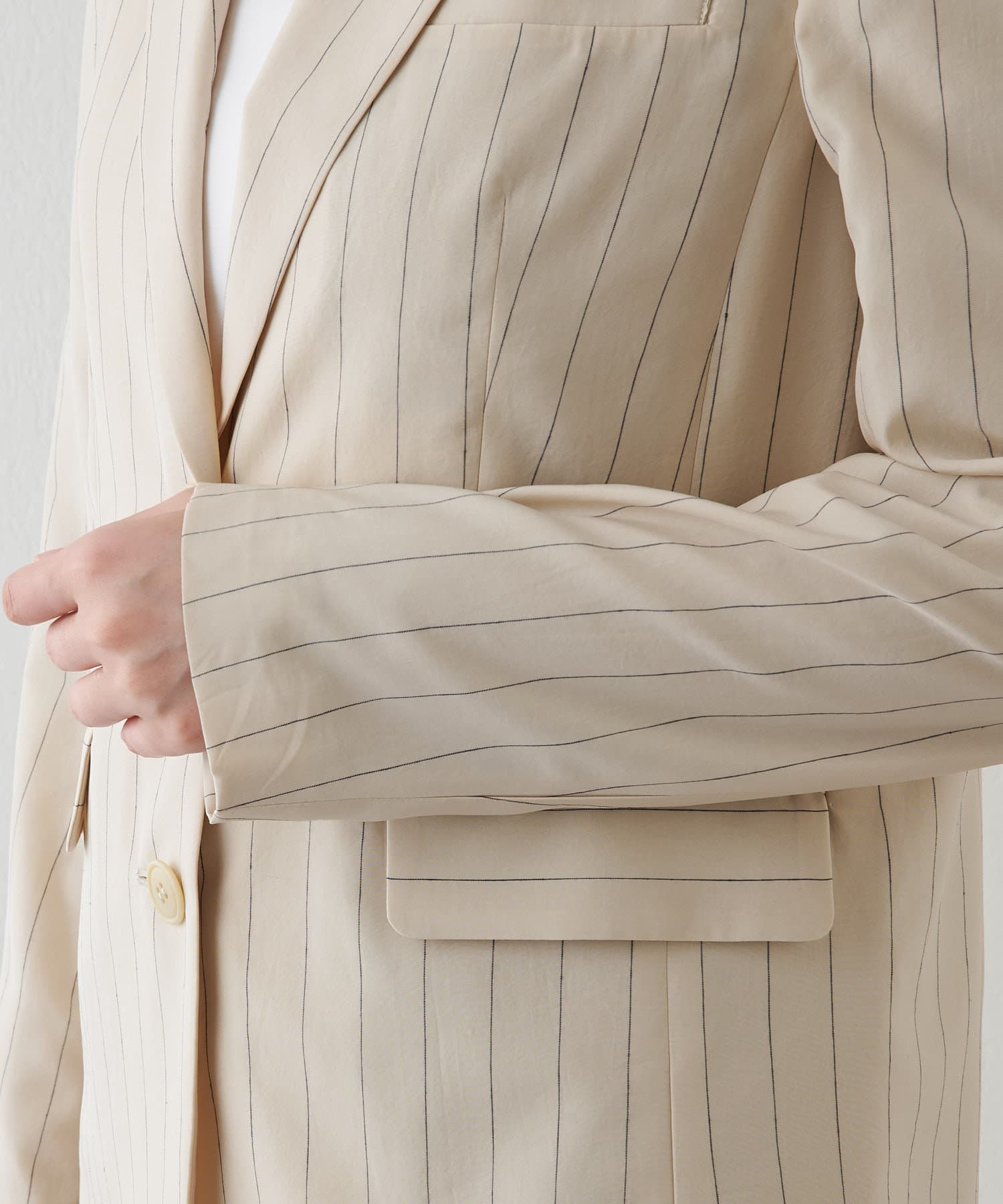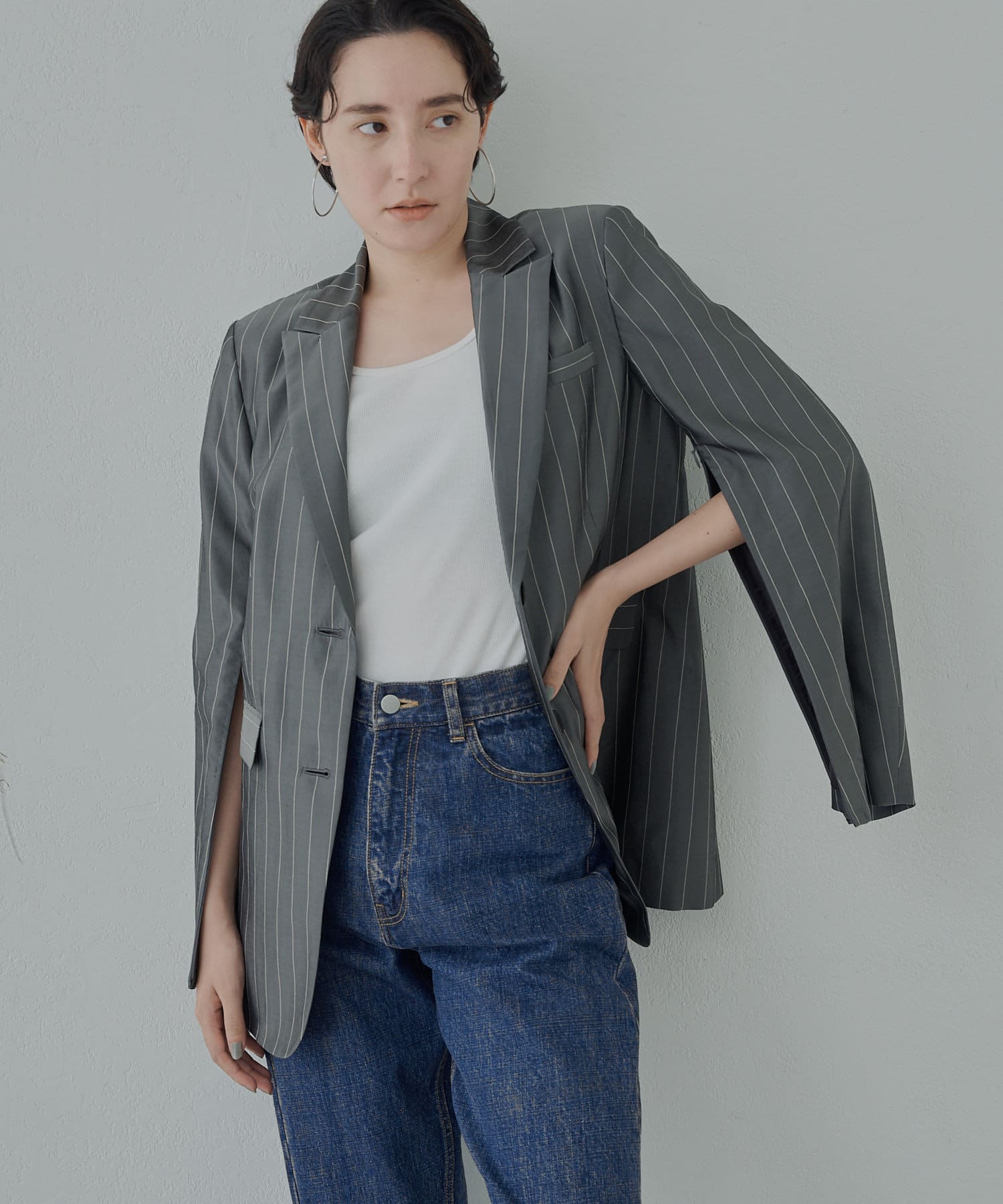 エレガントに格好良く仕上がる、ストライプ柄ジャケット