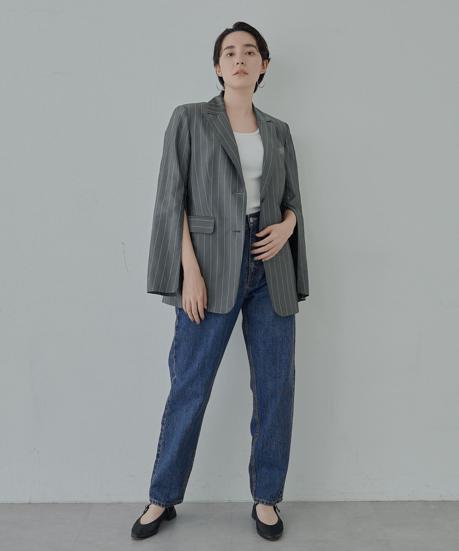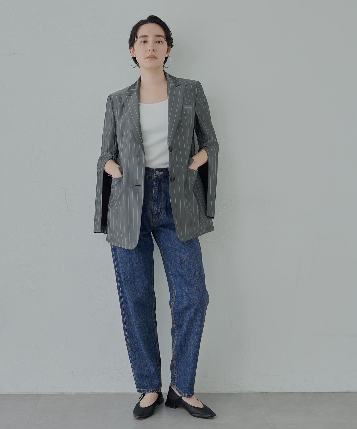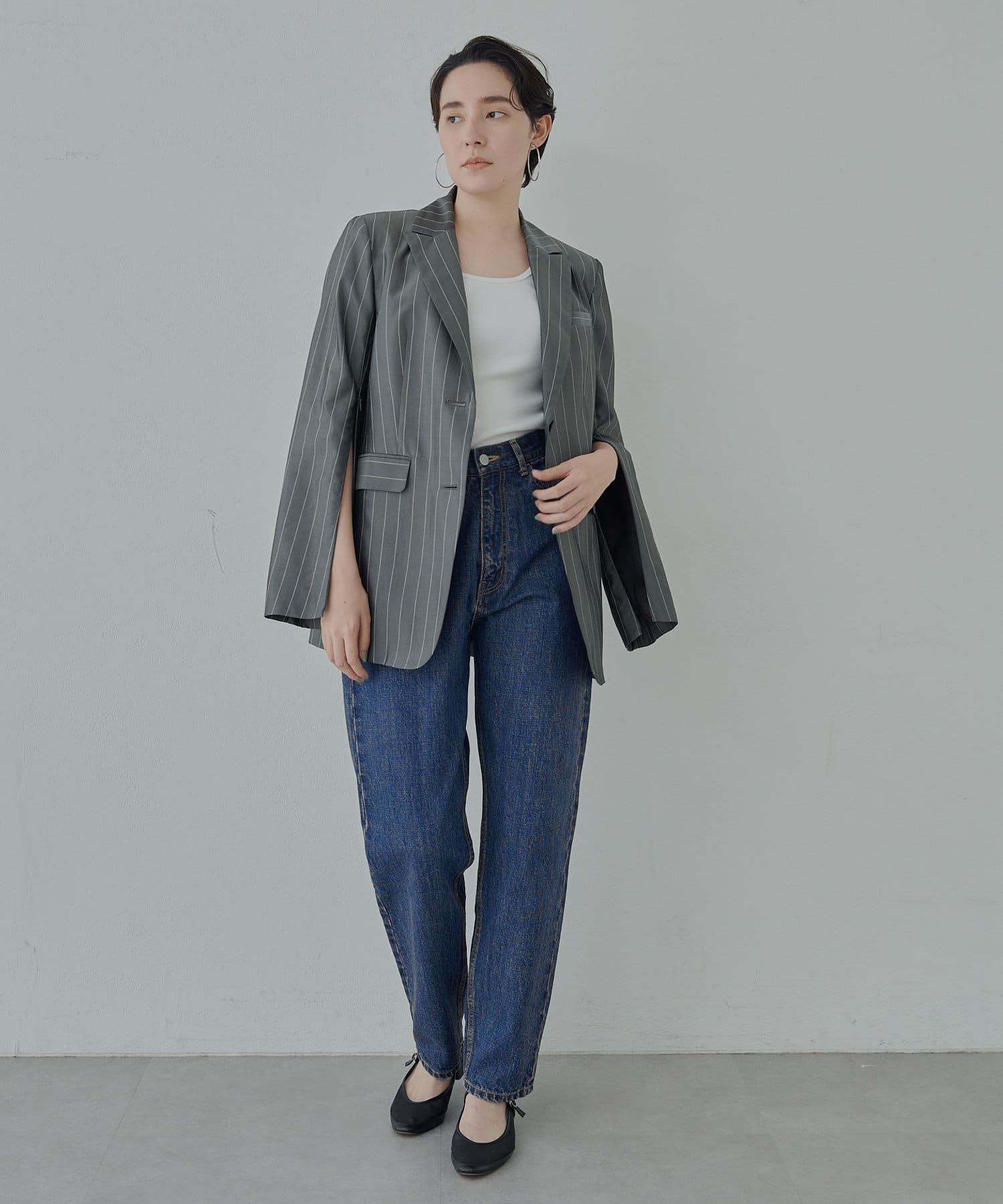 エレガントに格好良く仕上がる、ストライプ柄ジャケット