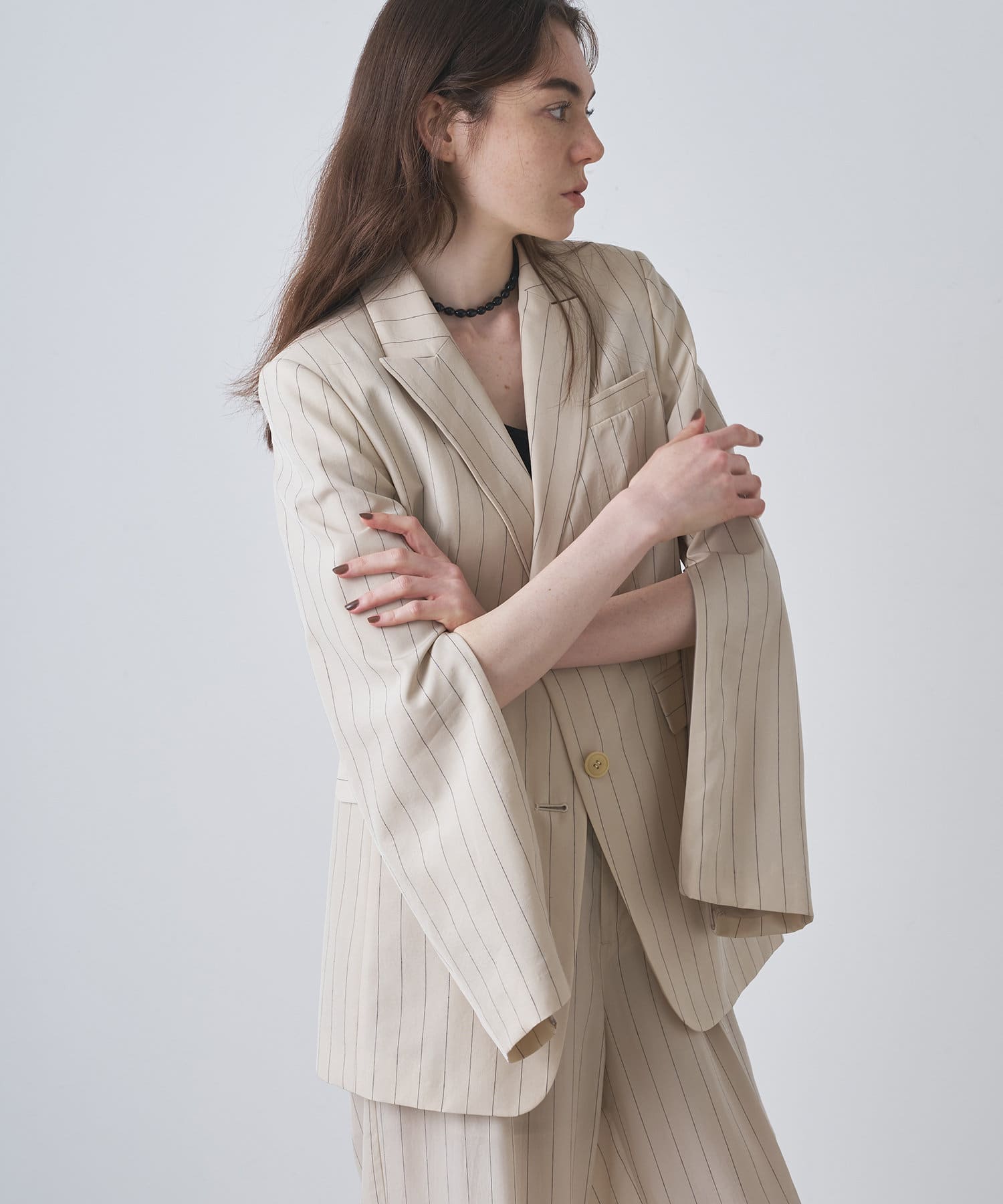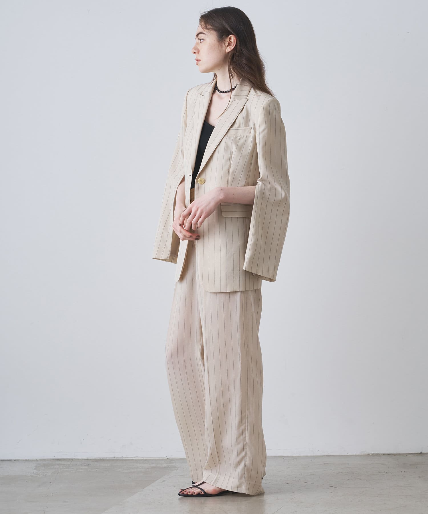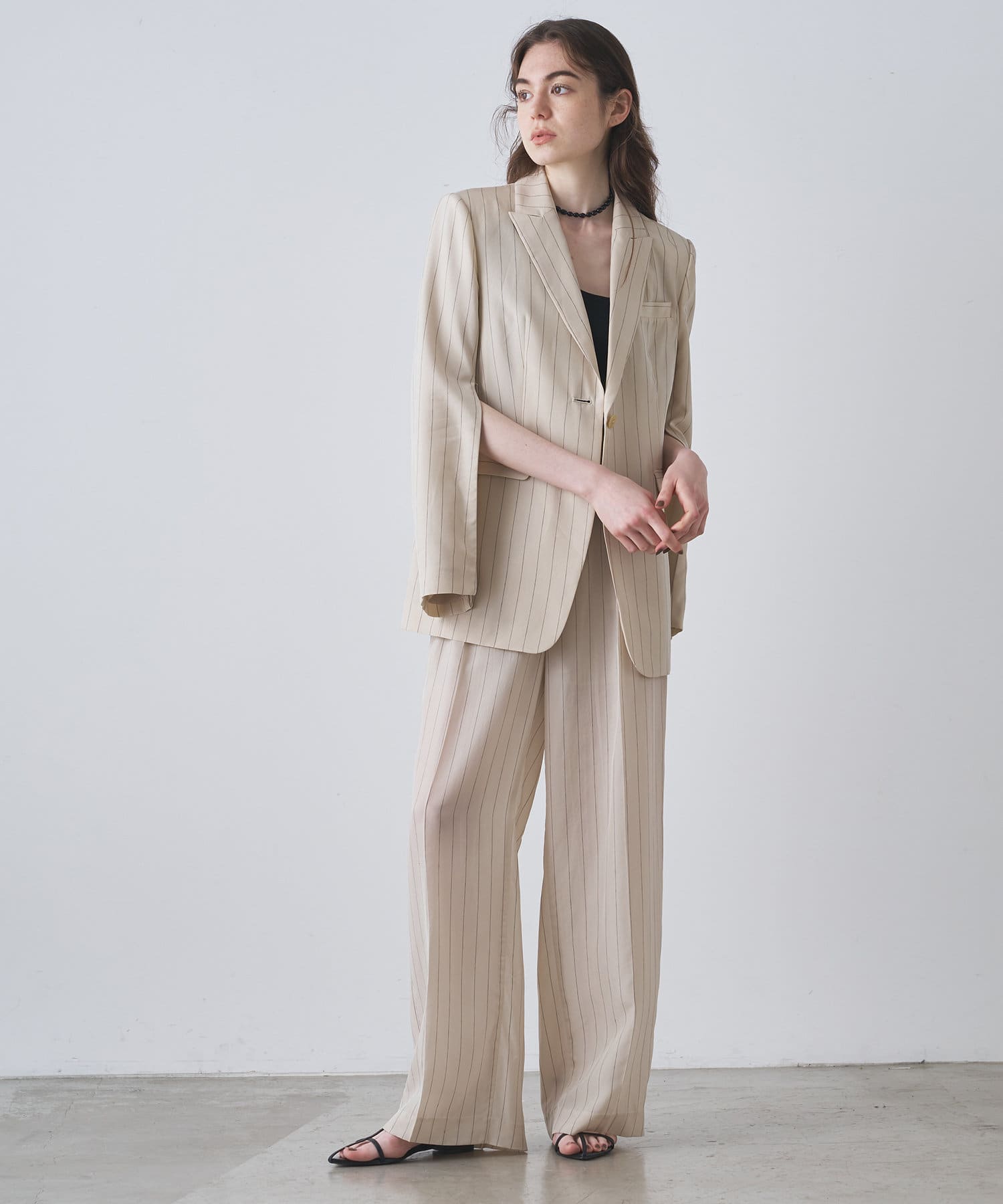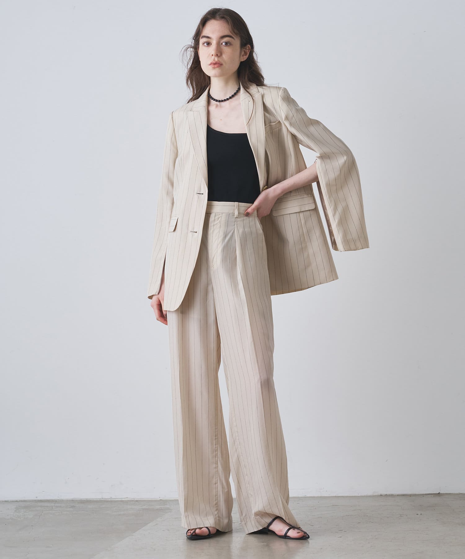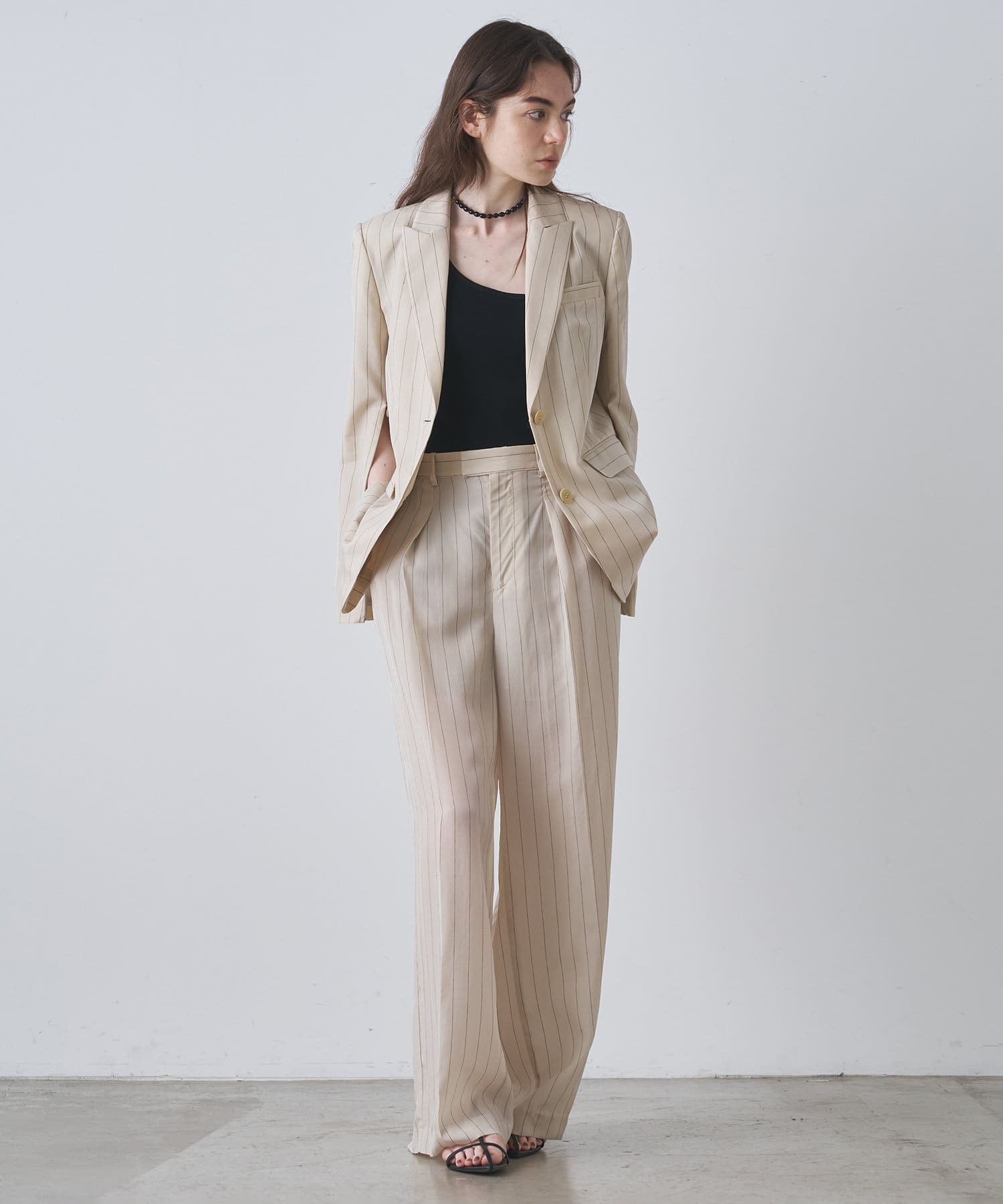 ■同素材のストライプワイドパンツ(ブランド品番:DNZ1042102A0005)とのセットアップもおすすめ。