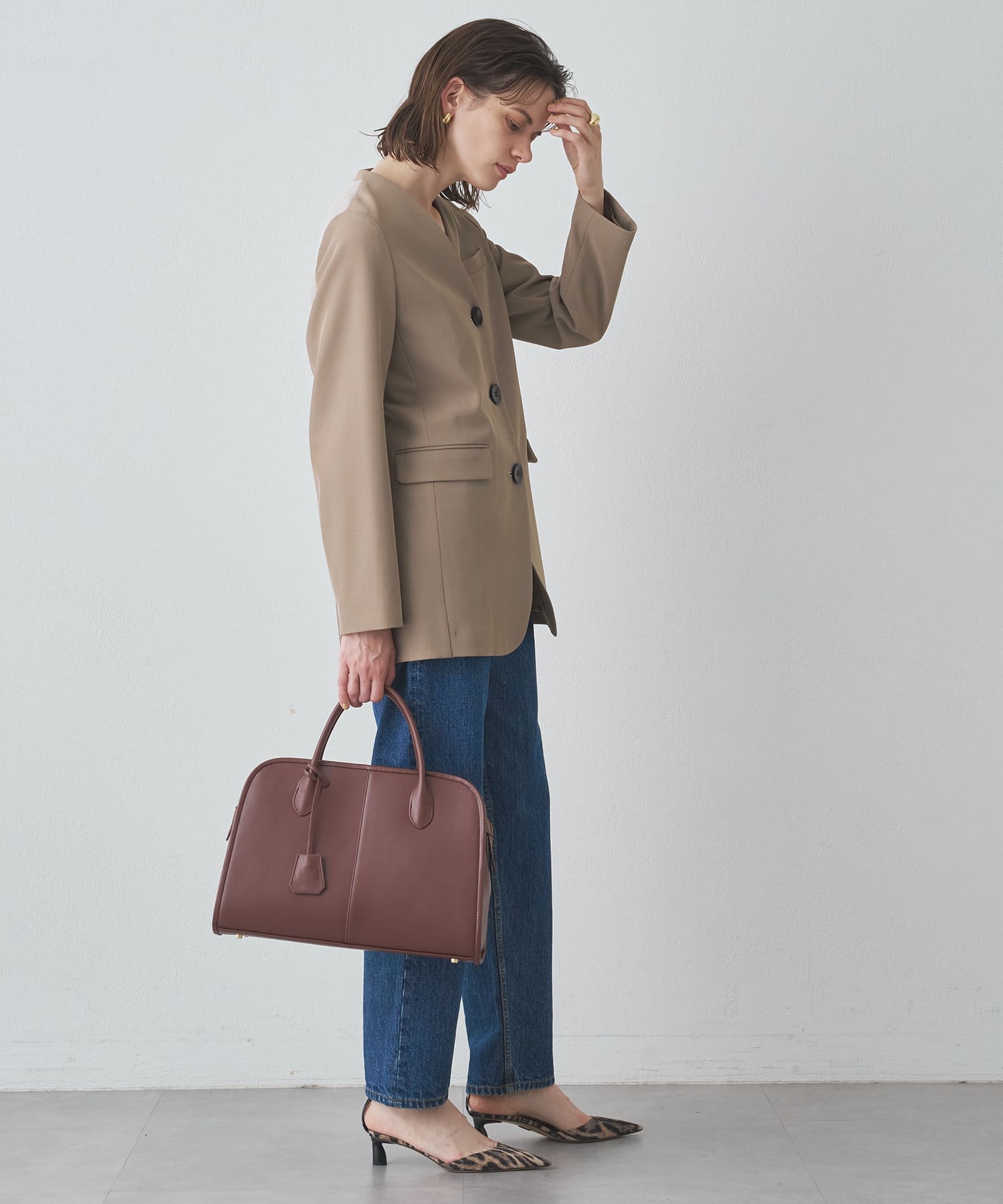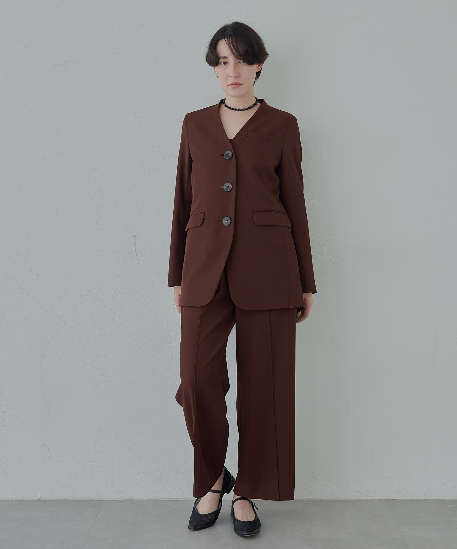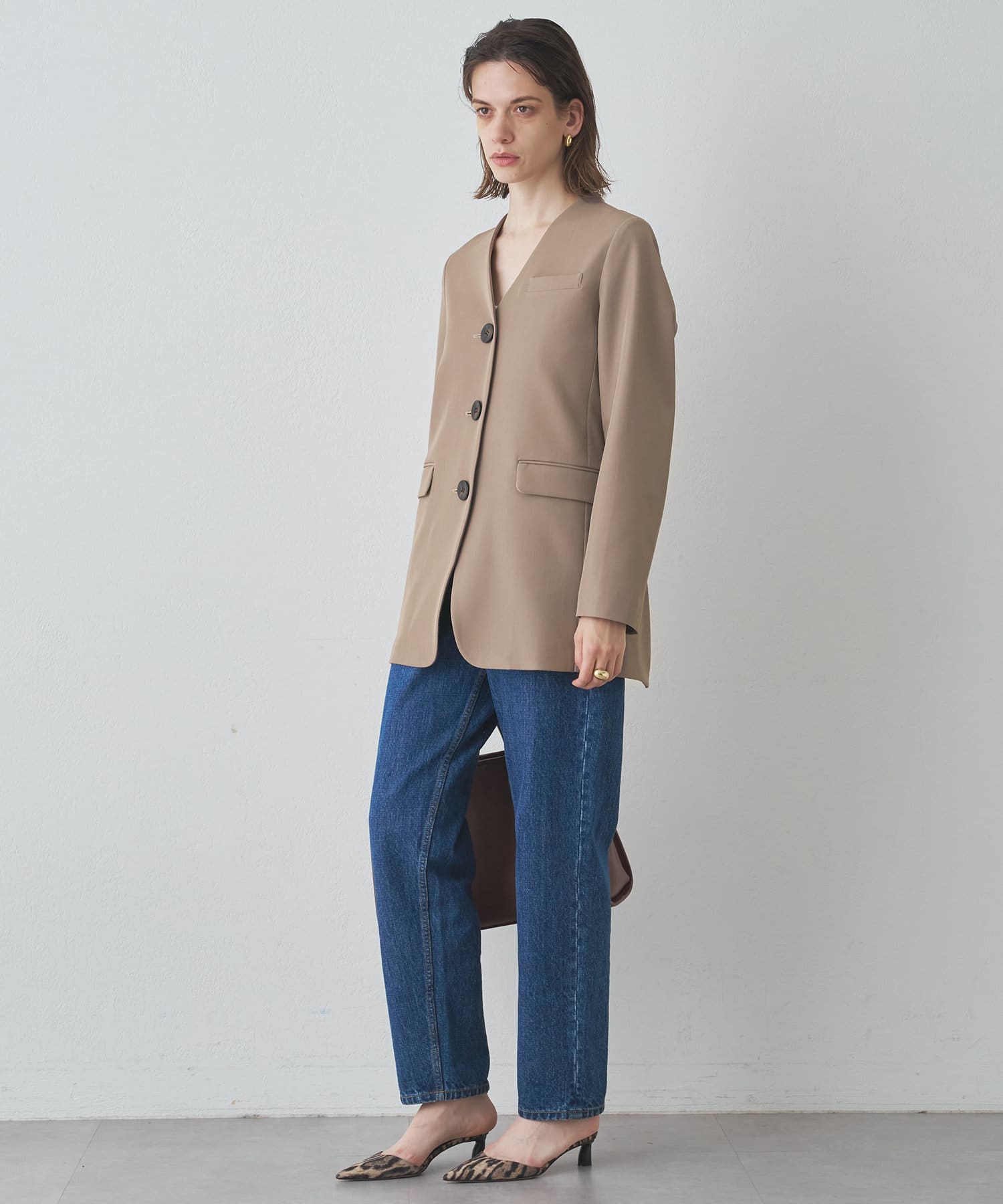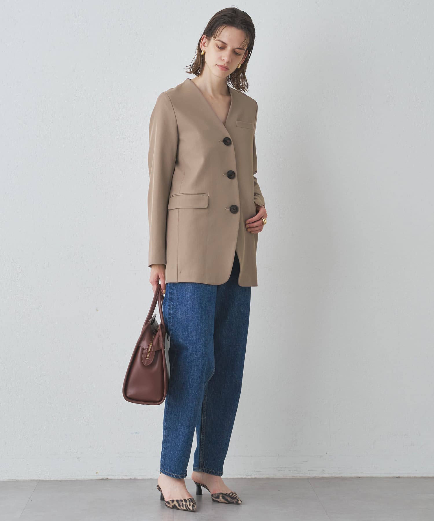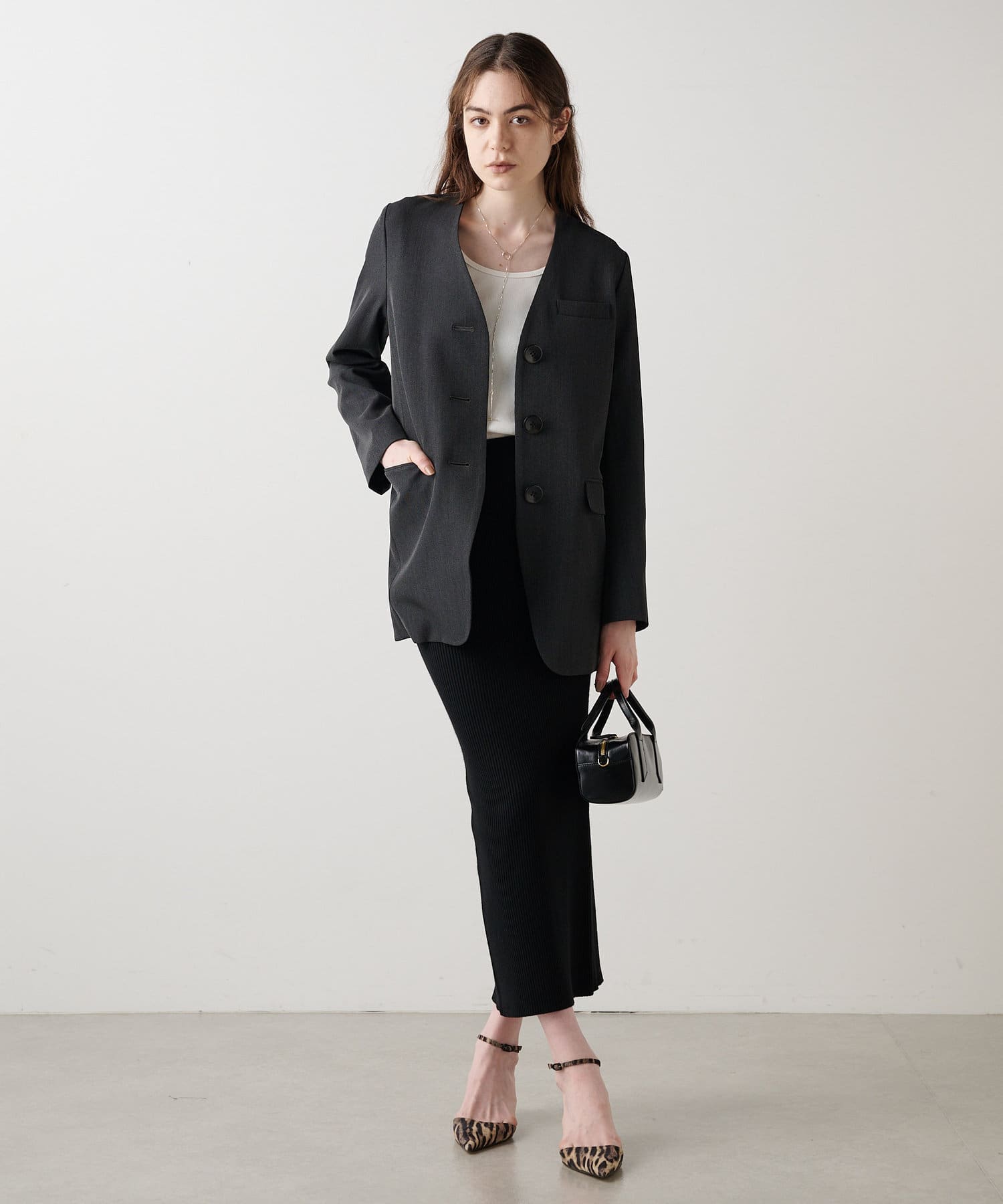 ■ノーカラーが首元をすっきりと見せ、女性らしさをプラスするデザイン。