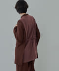 ゆったりと大きめなシルエットですが、後ろの紐の結び方次第で調節ができるジャケット。