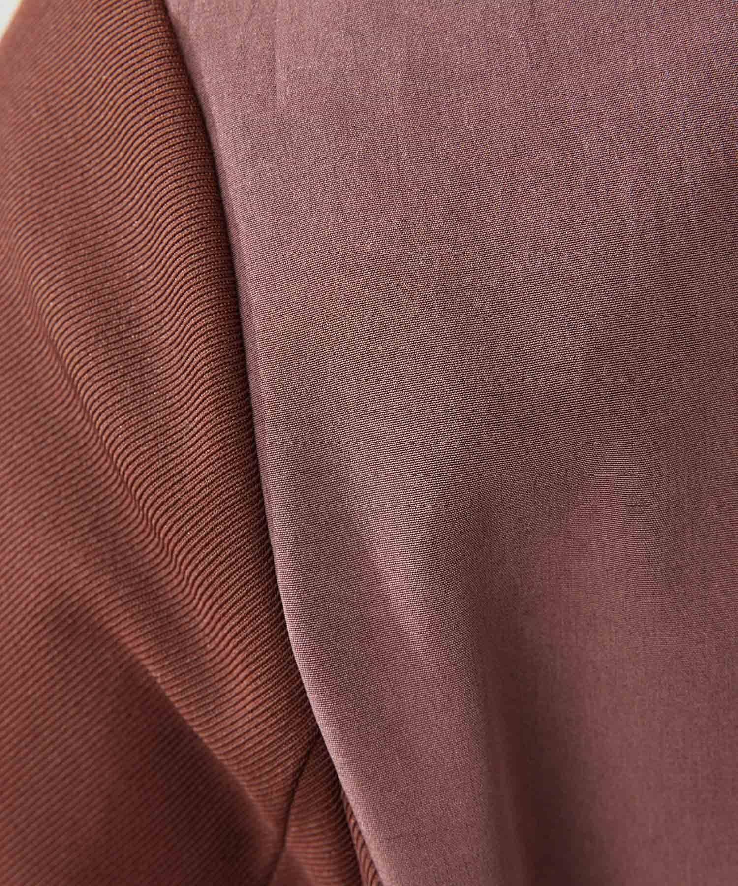 絶妙なカラーリングで秋を感じるお洋服ですが、軽い着心地なので、夏の終わりからワードローブを新鮮にしてくれるワンアイテムだと思います。