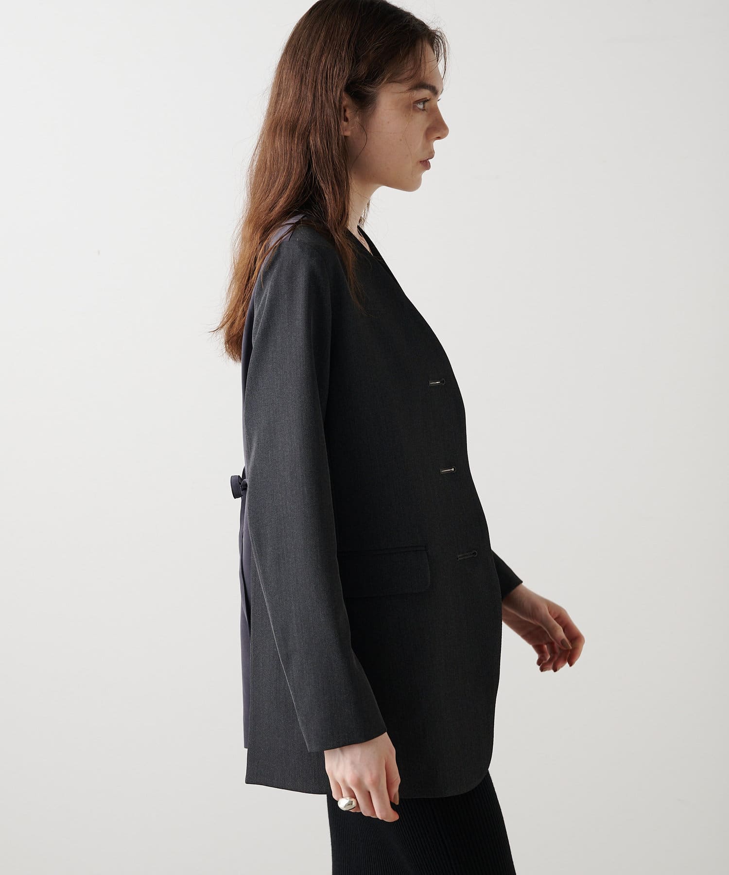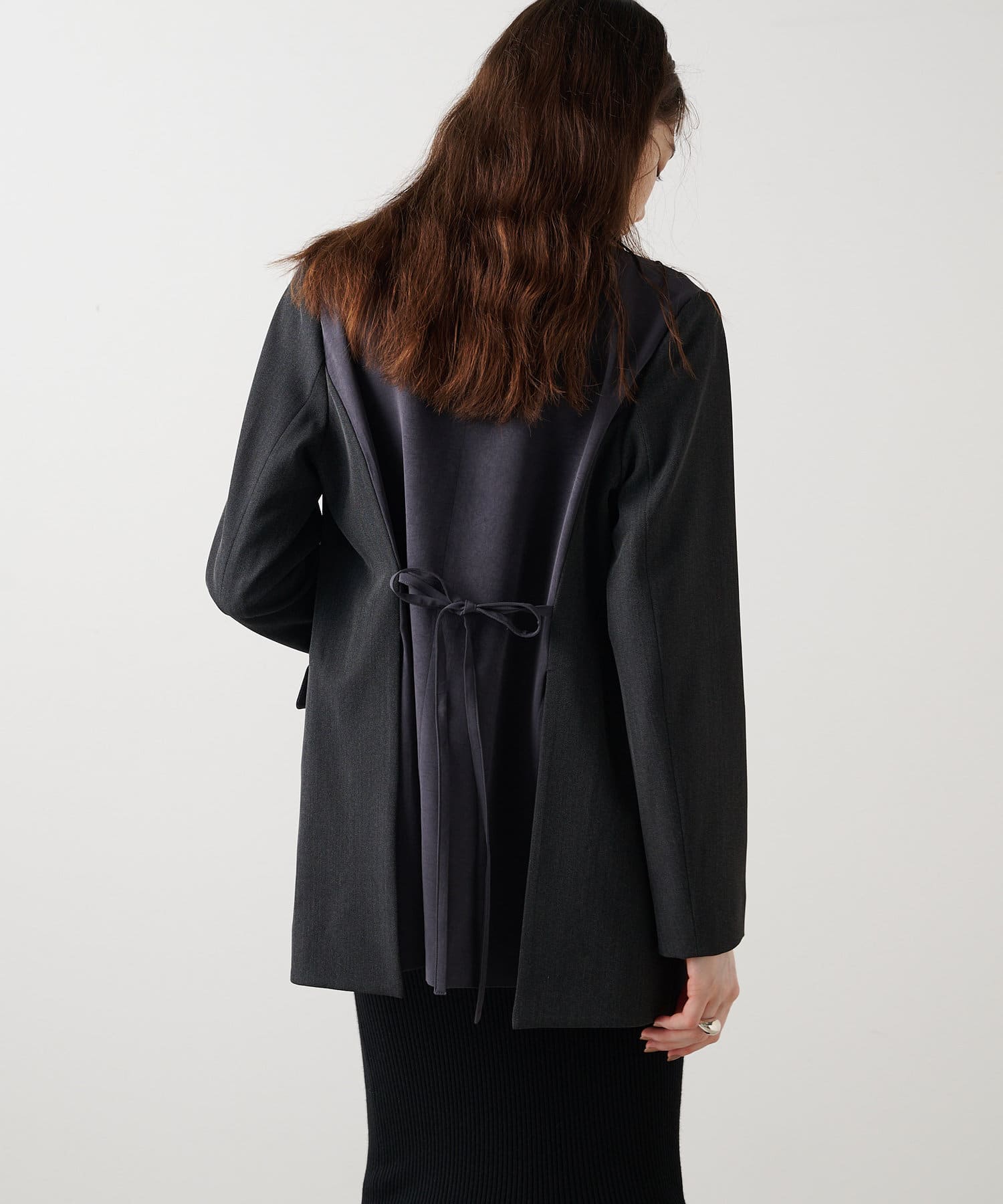 ■後ろ身頃を別布で切り替えたコンビデザインのジャケット。