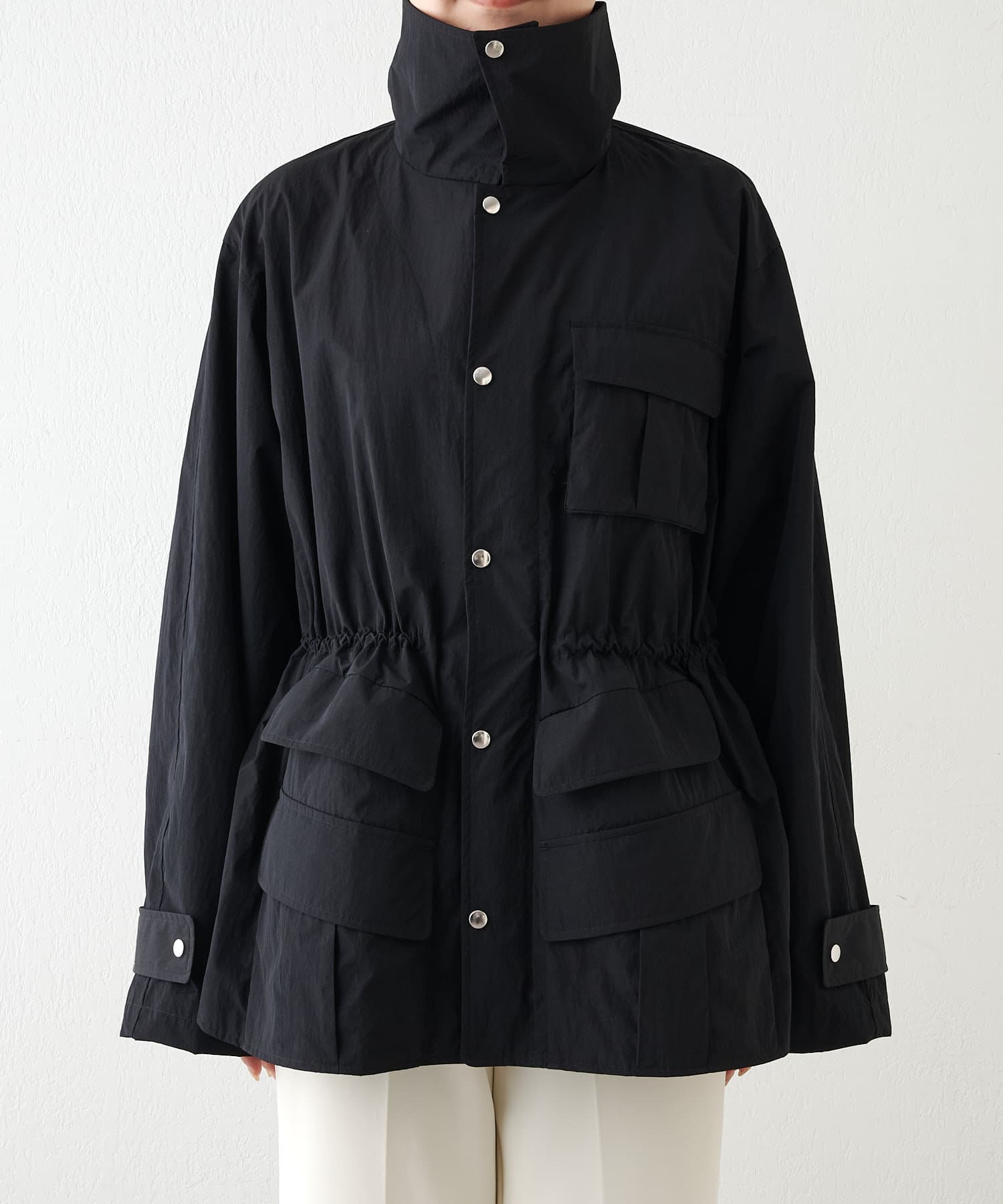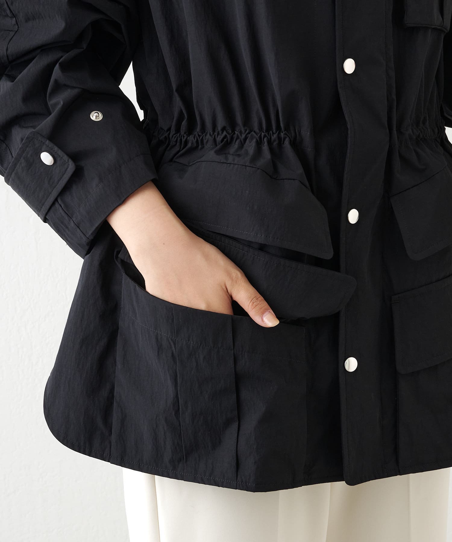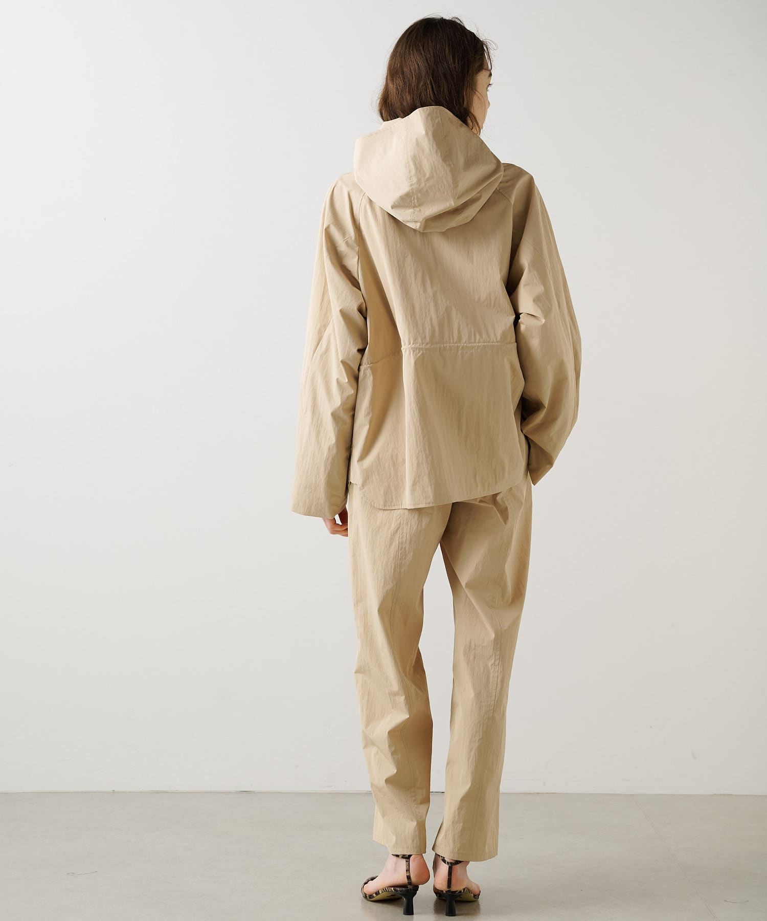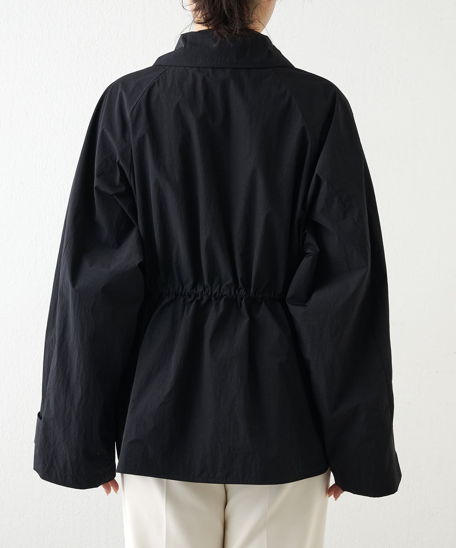 ■スポーティなアイテムながら、ウエスト内側のドローコードでギャザーを絞れば女性らしい印象に。