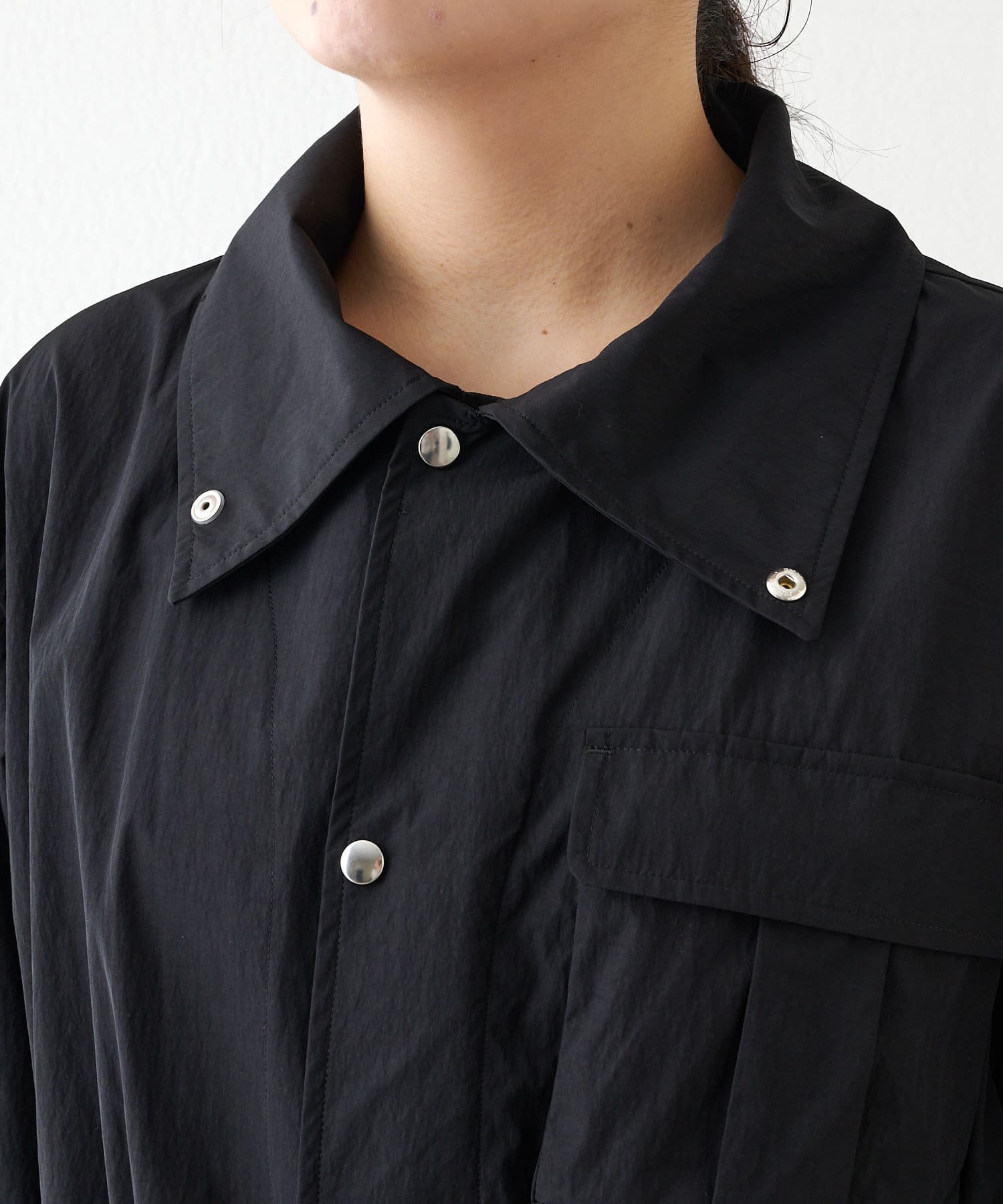 ■程よいハリのある軽いタフタ素材を使用したハーフコート。