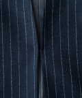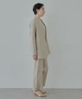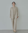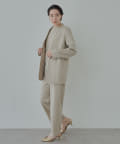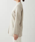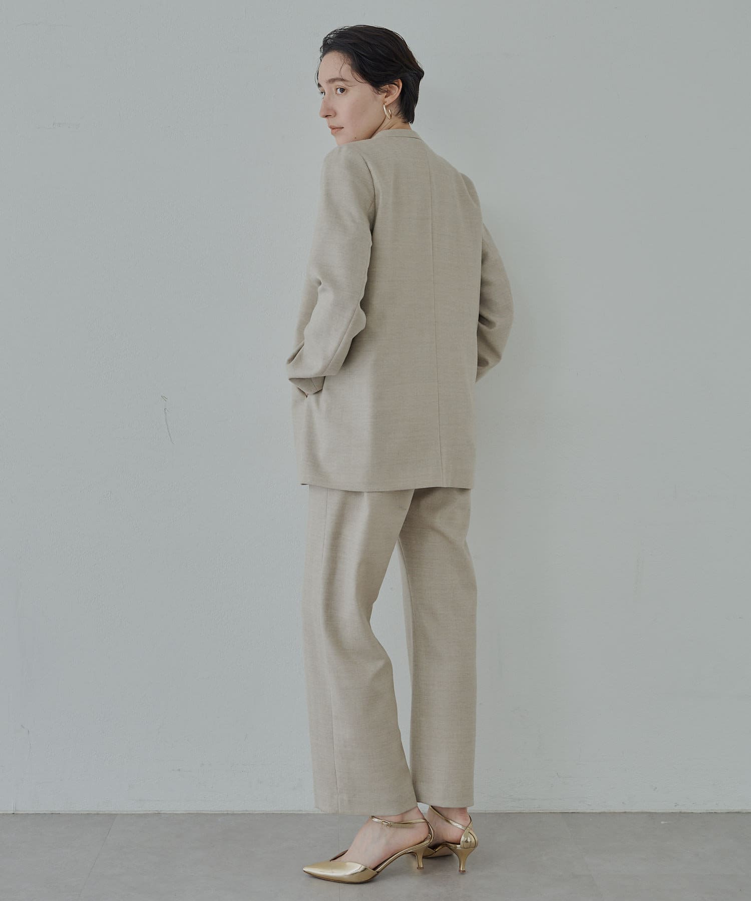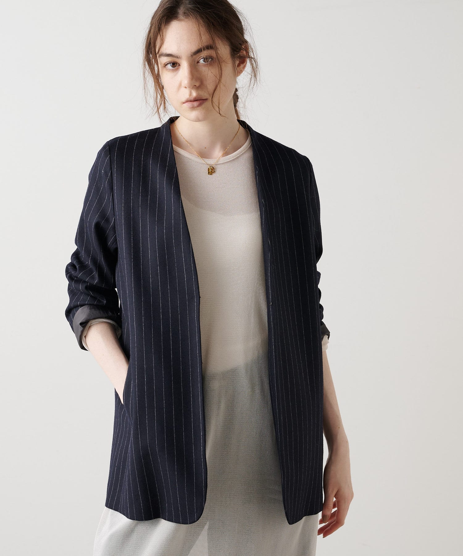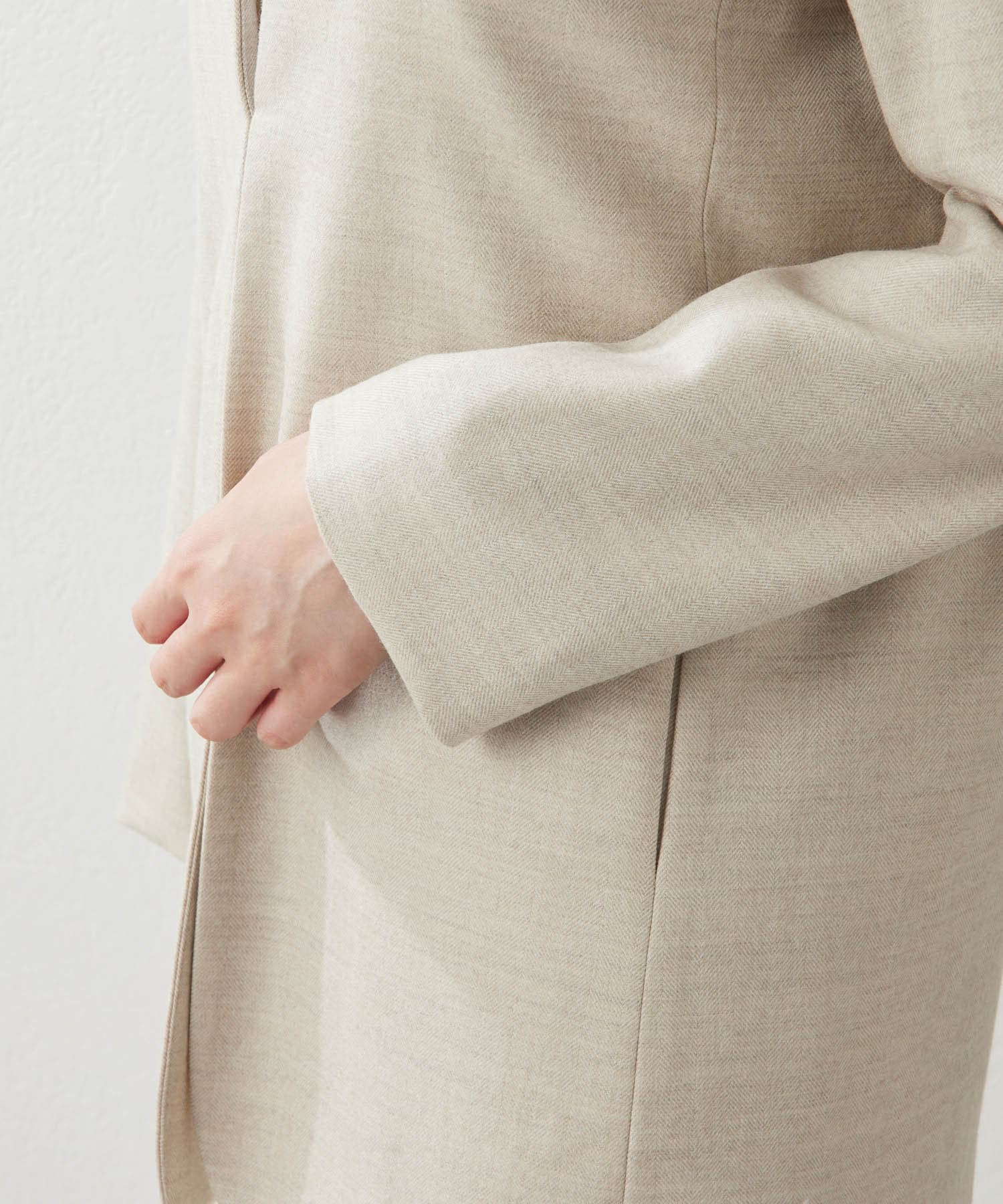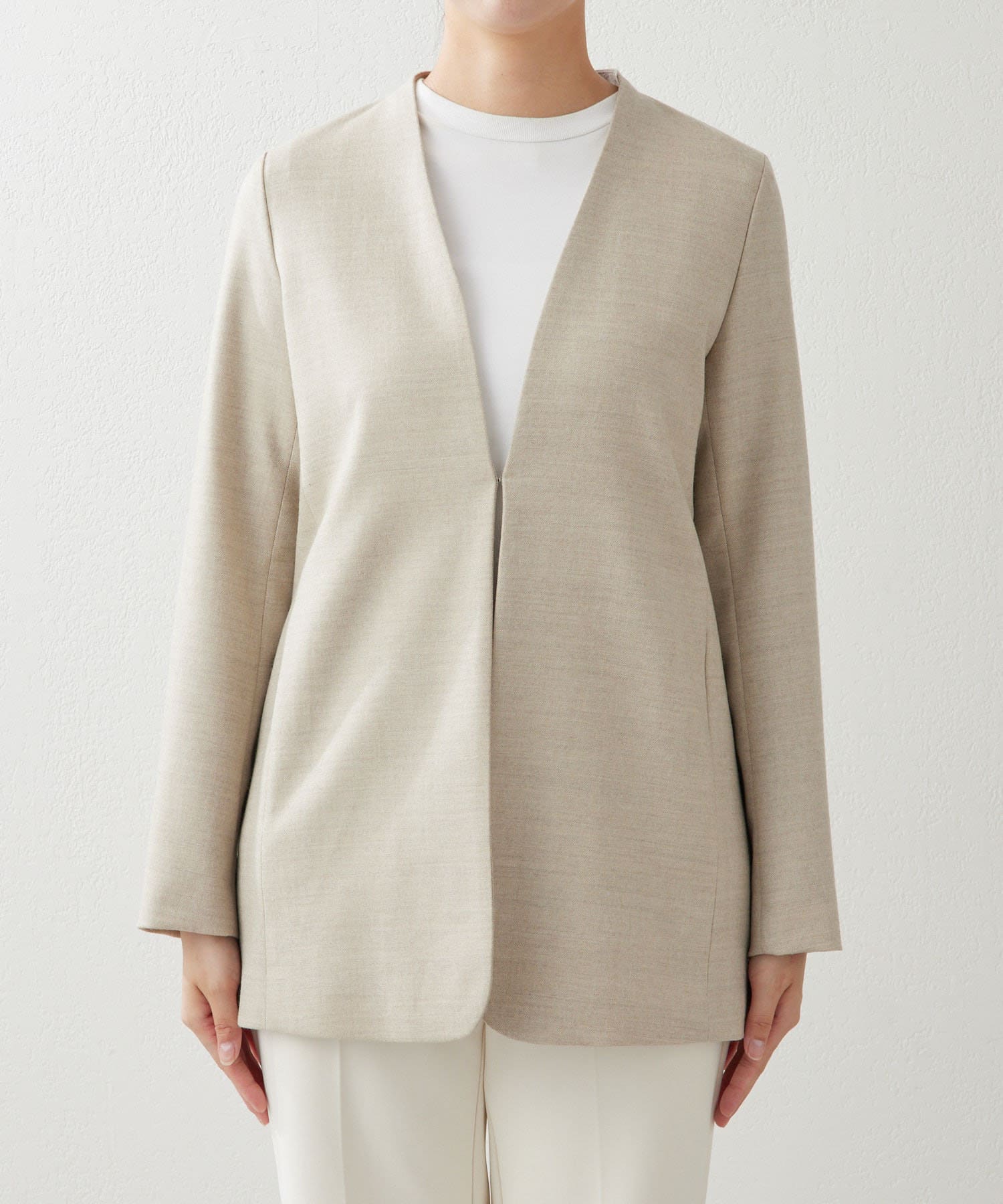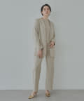■ノーカラーですっきりと仕上げたノーカラージャケット。