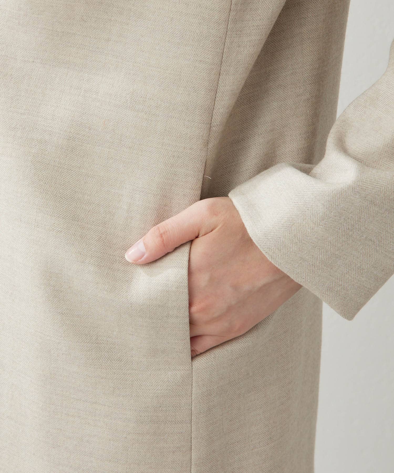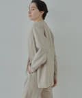 オーバーサイズでノーカラーのデザインなので、モードな、ハンサムな印象です。インポートのジャケットのような、雰囲気のある一枚です。