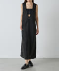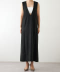■深めのVネック開きが特徴的なノースリーブワンピース。