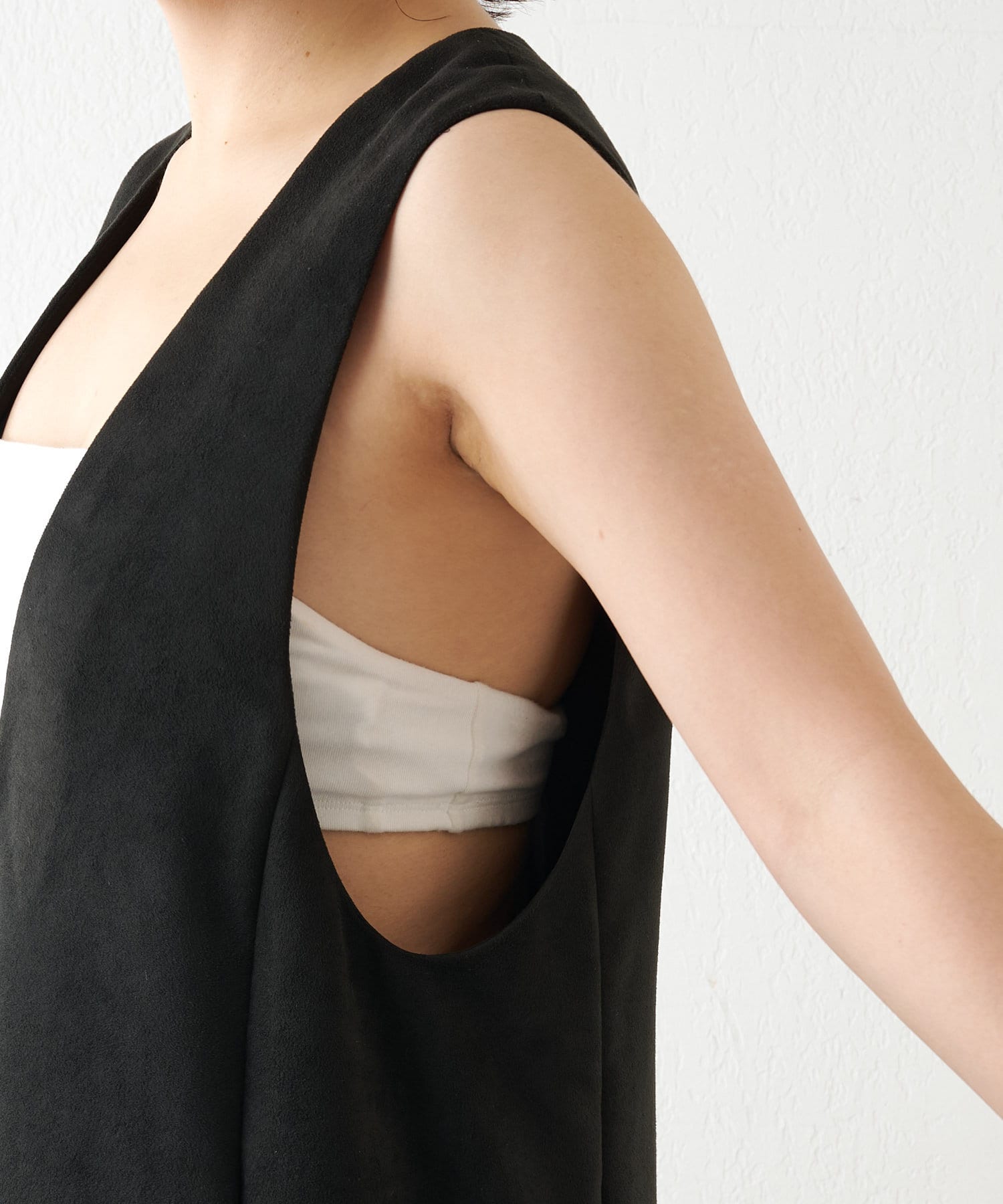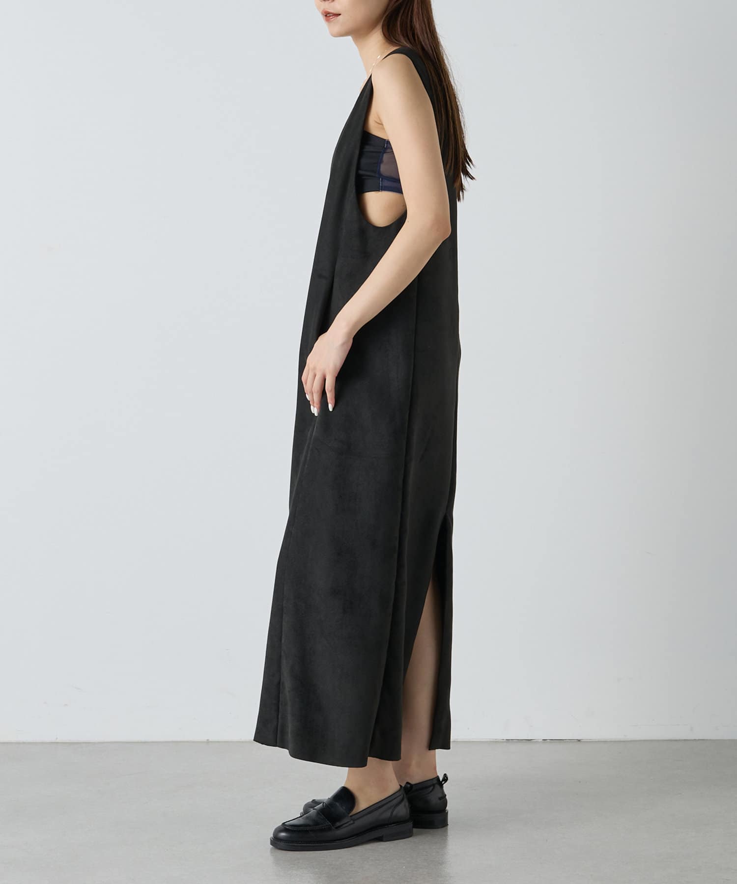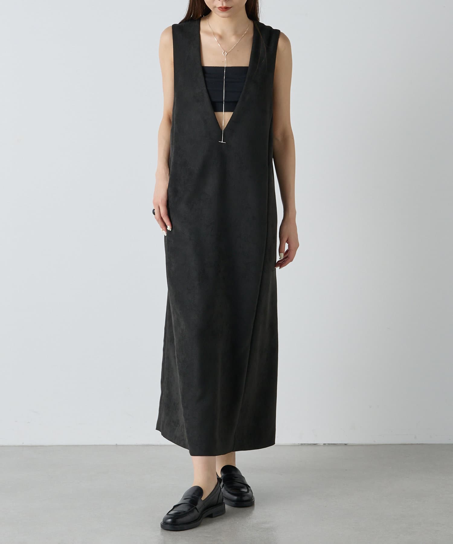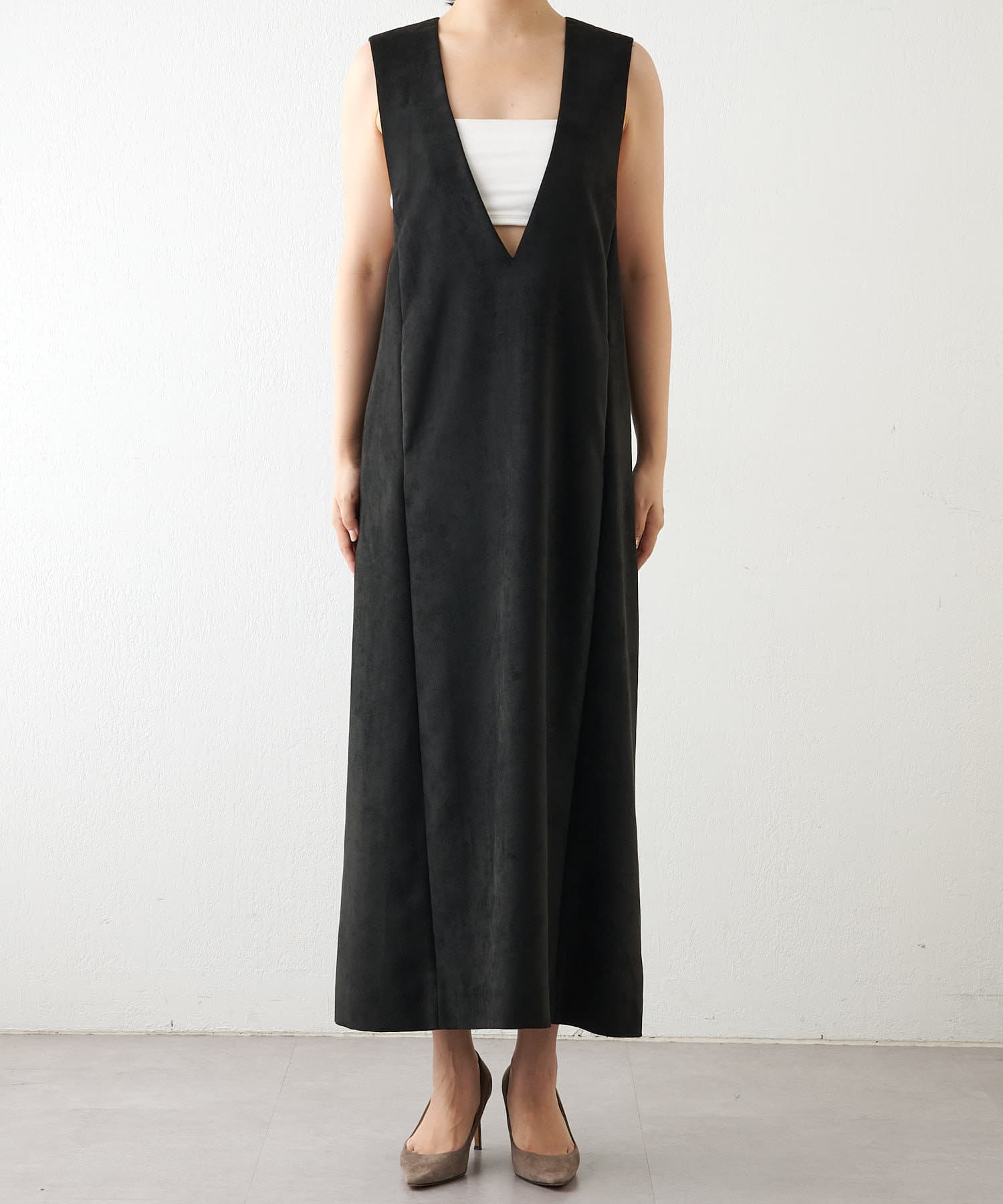 スエードパネル深Vワンピース