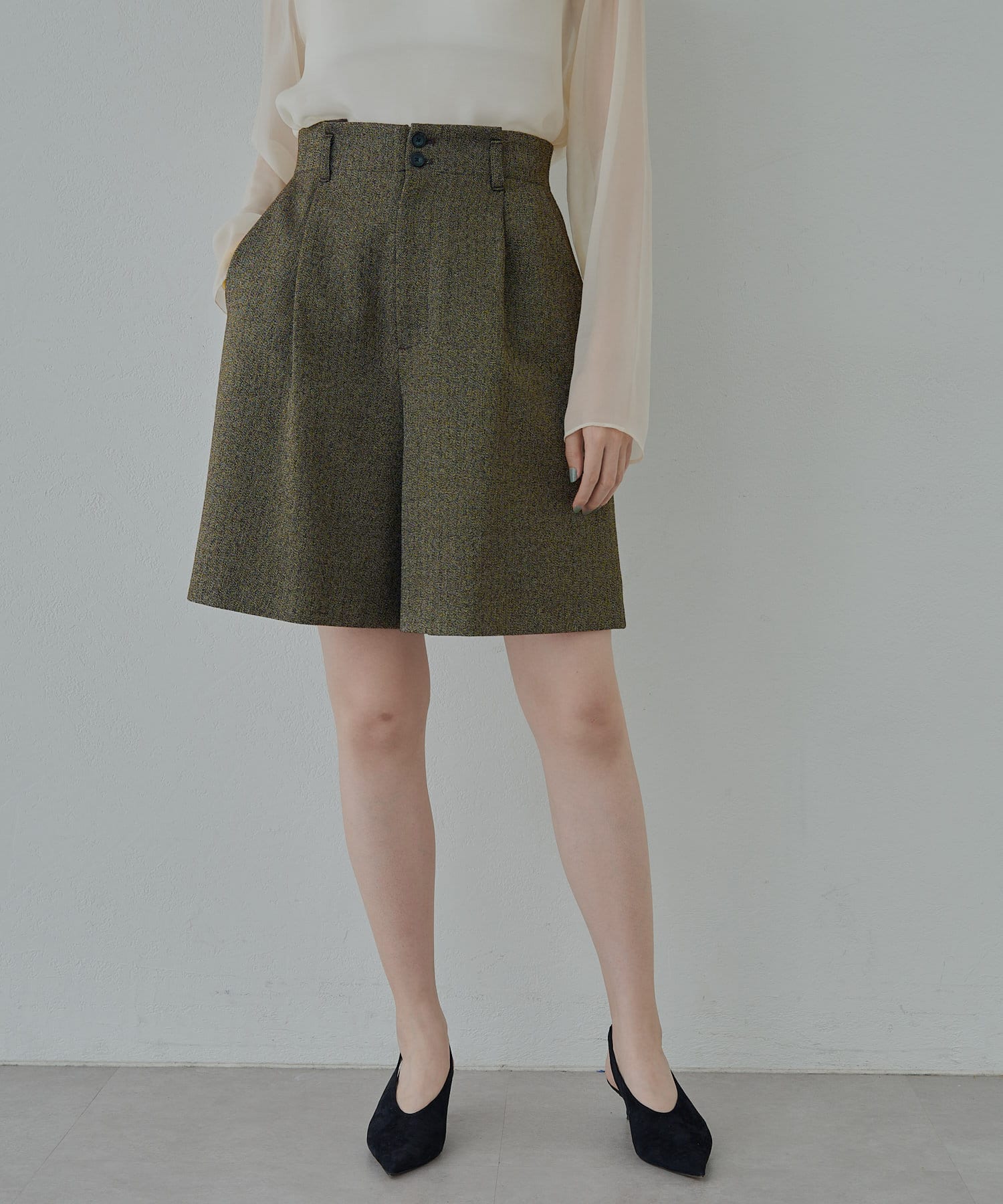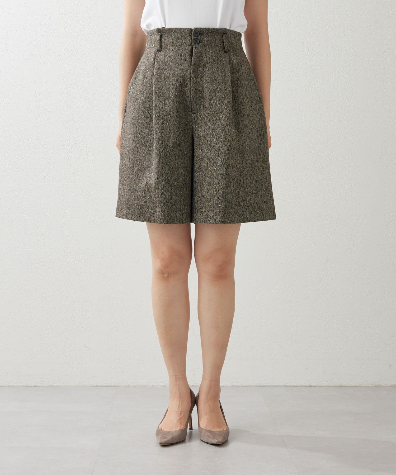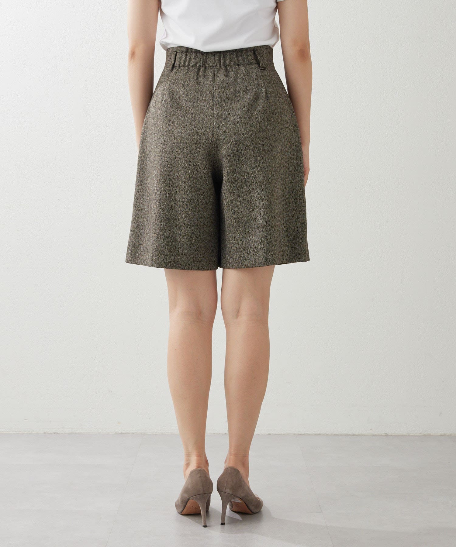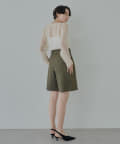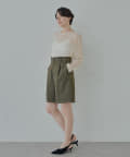 ■ラメ糸のさりげない光沢がポイントのタックショートパンツ。