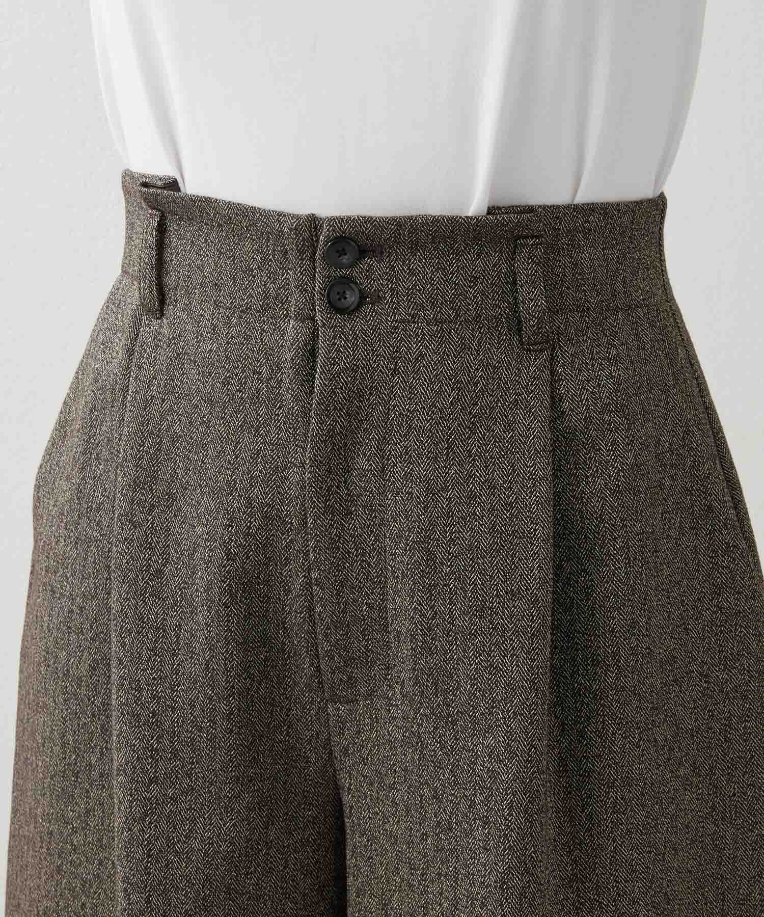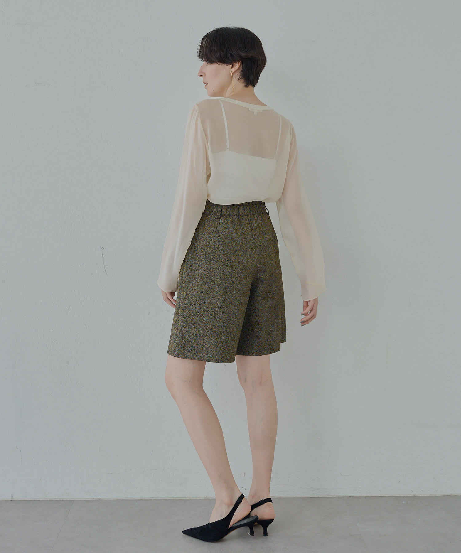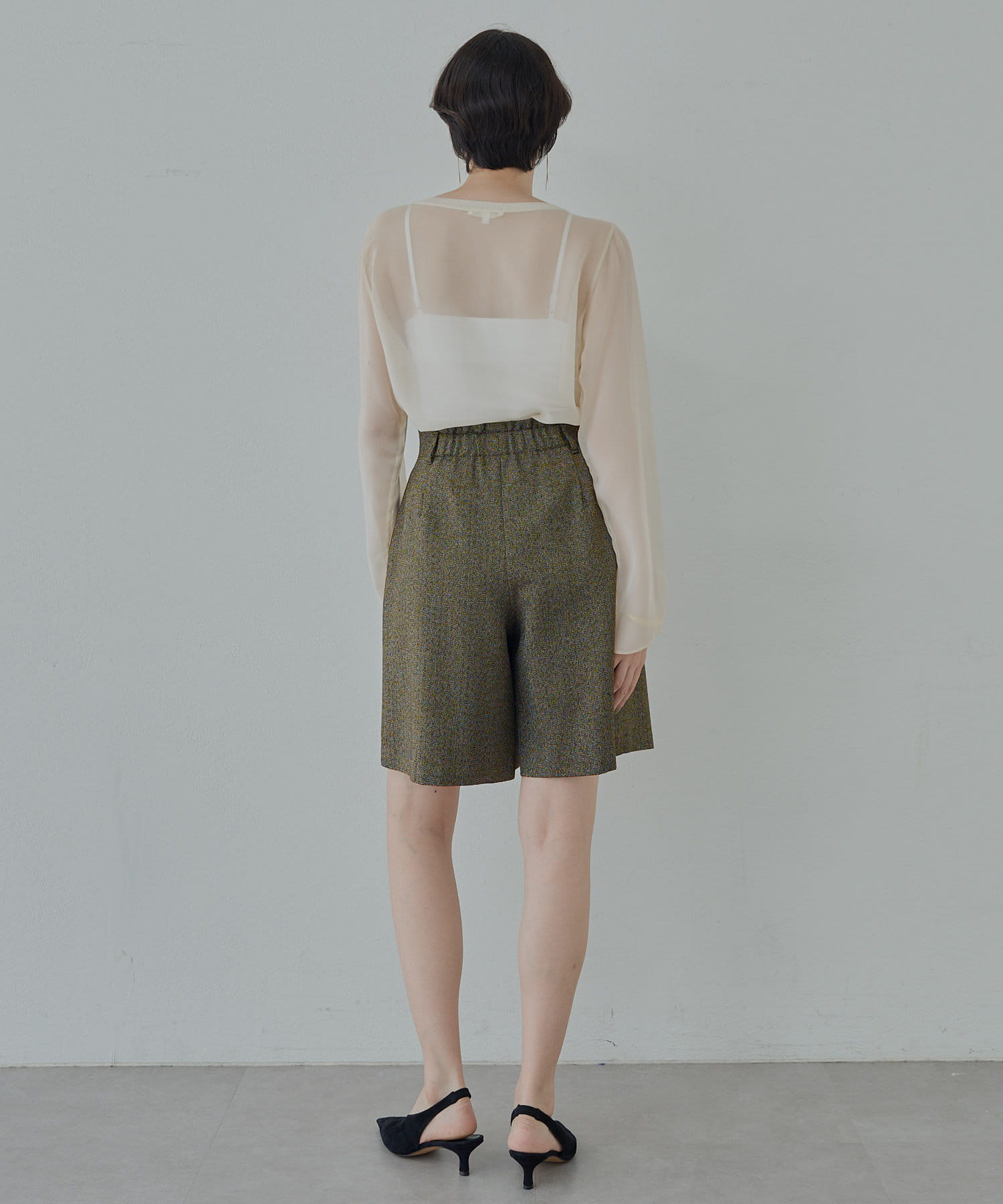 ■ラメ糸のさりげない光沢がポイントのタックショートパンツ。