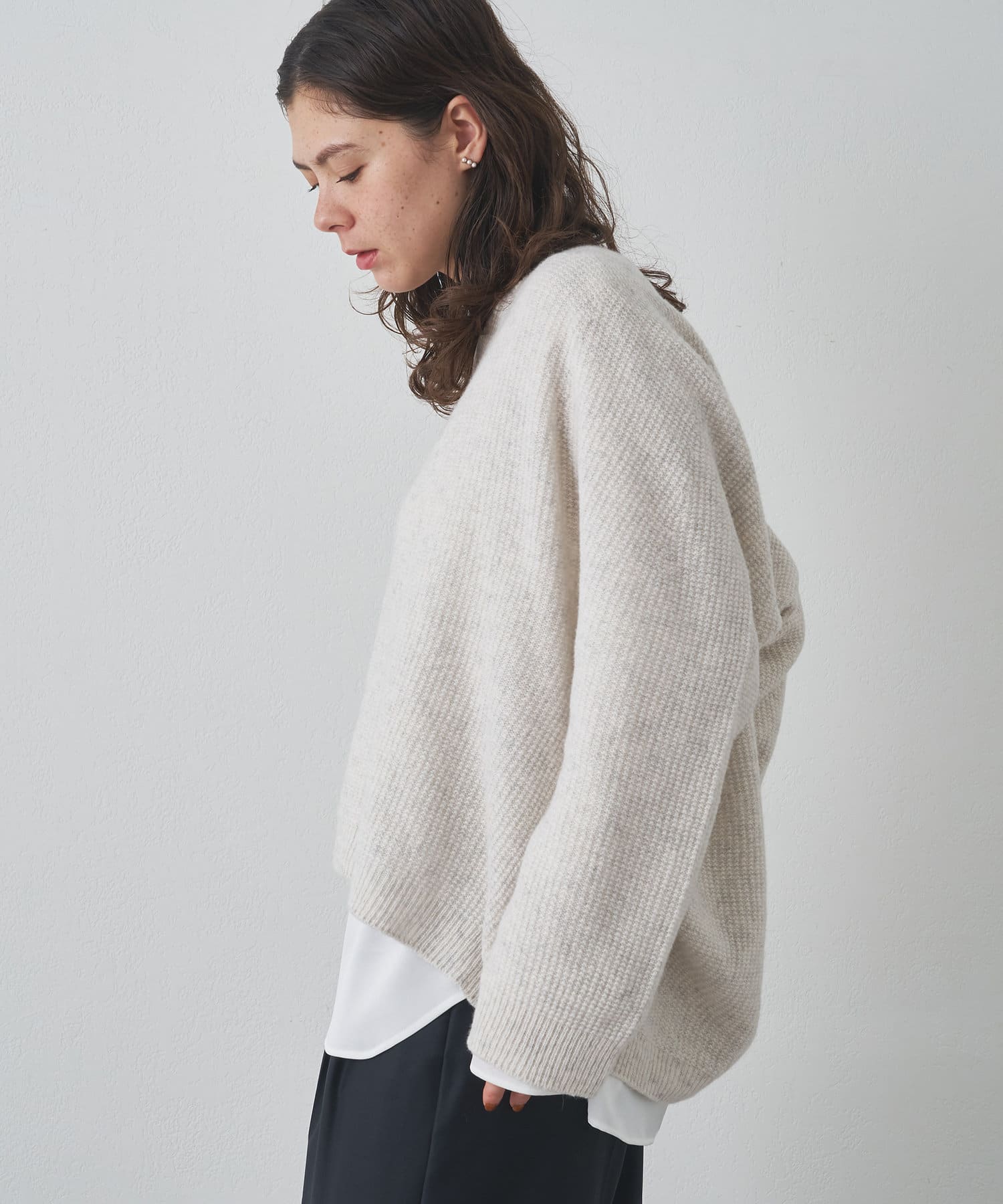 ■シンプルなデザインで合わせるアイテムを選ばず、品良く着こなせる大人の抜け感ニット。