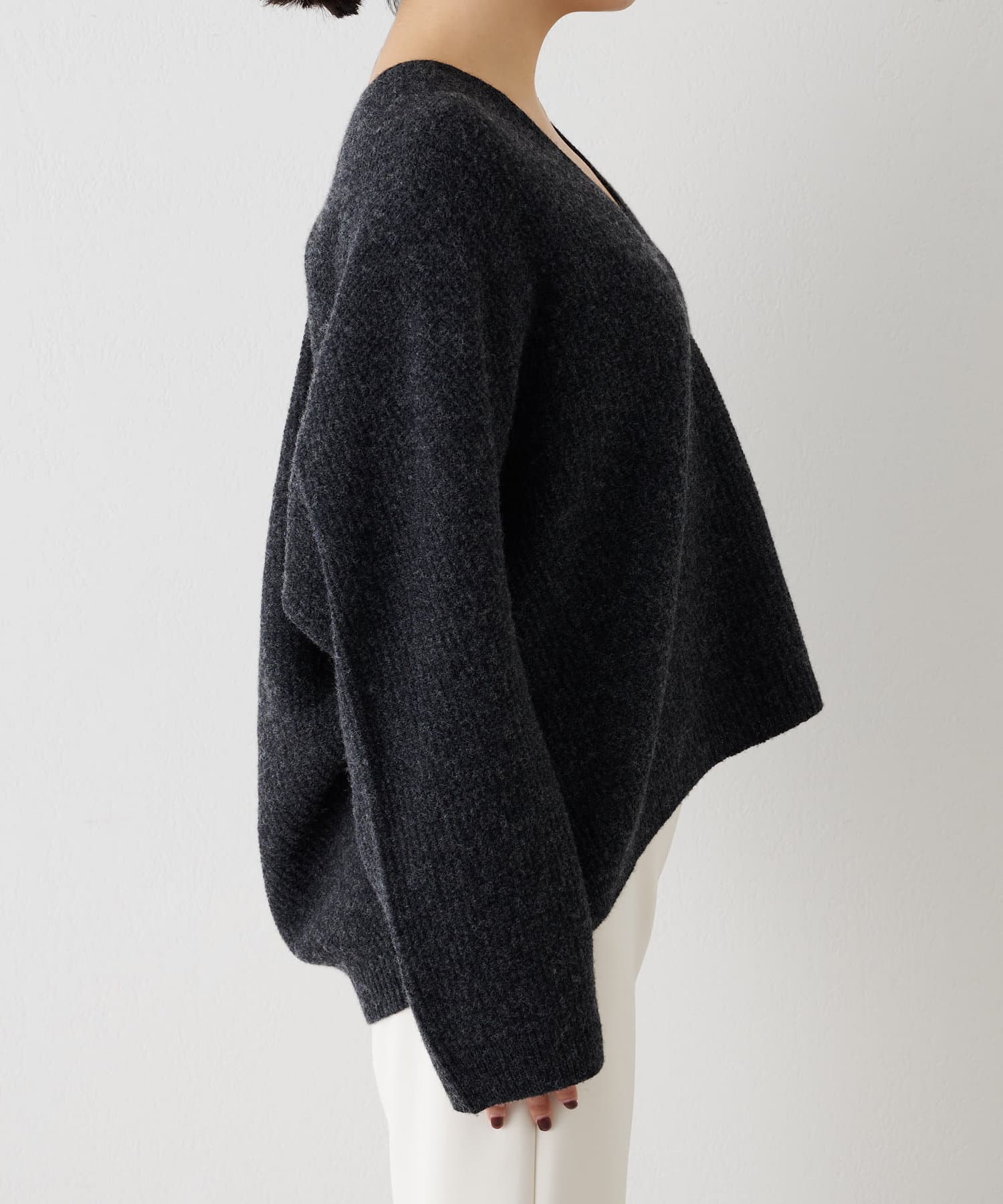 ■ホールガーメントで仕立てたVネックニットプルオーバー。