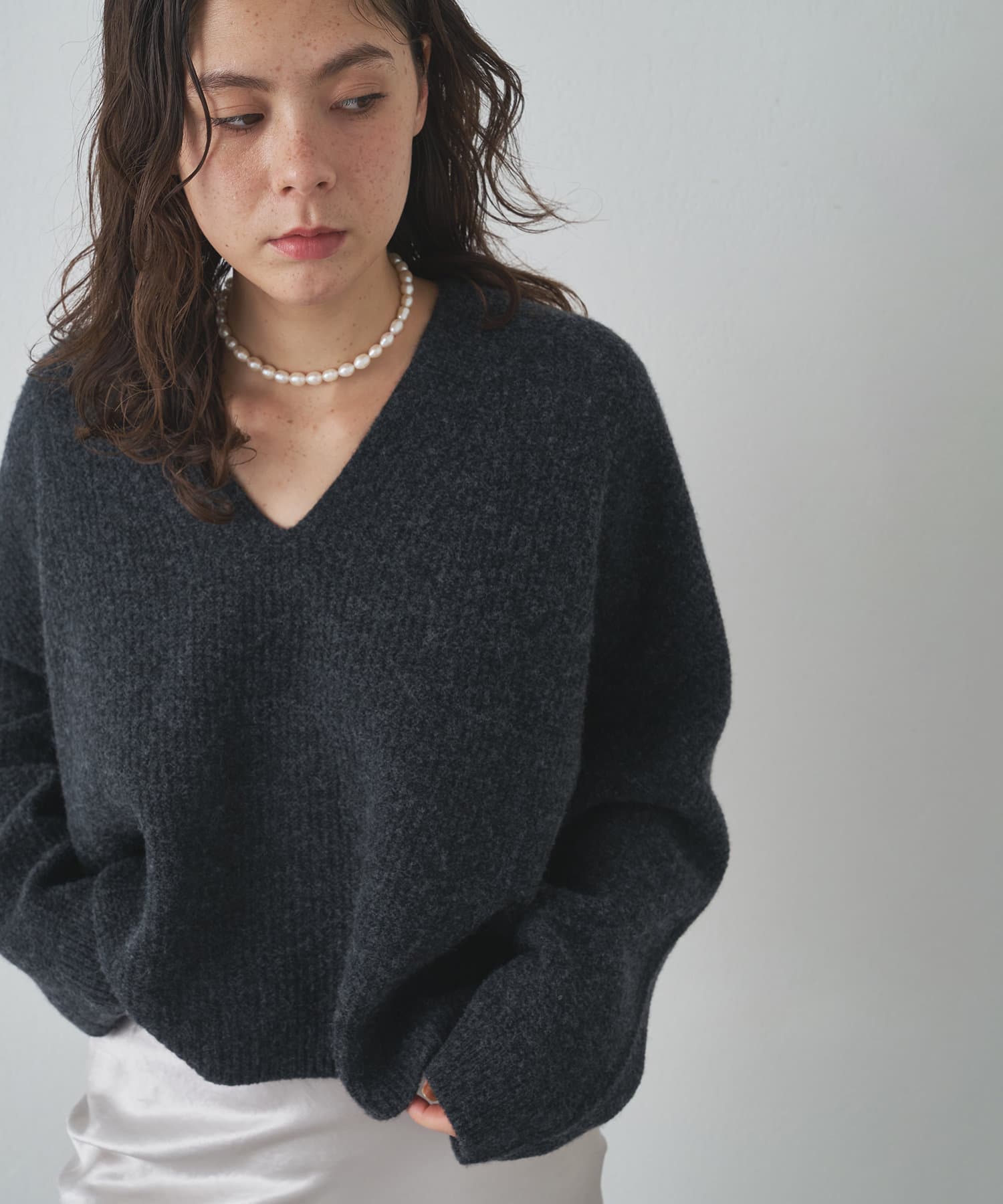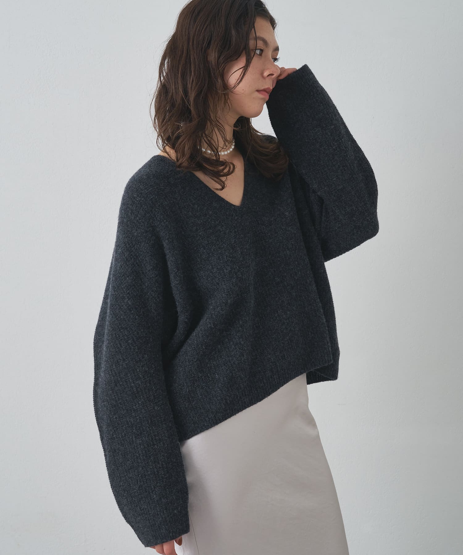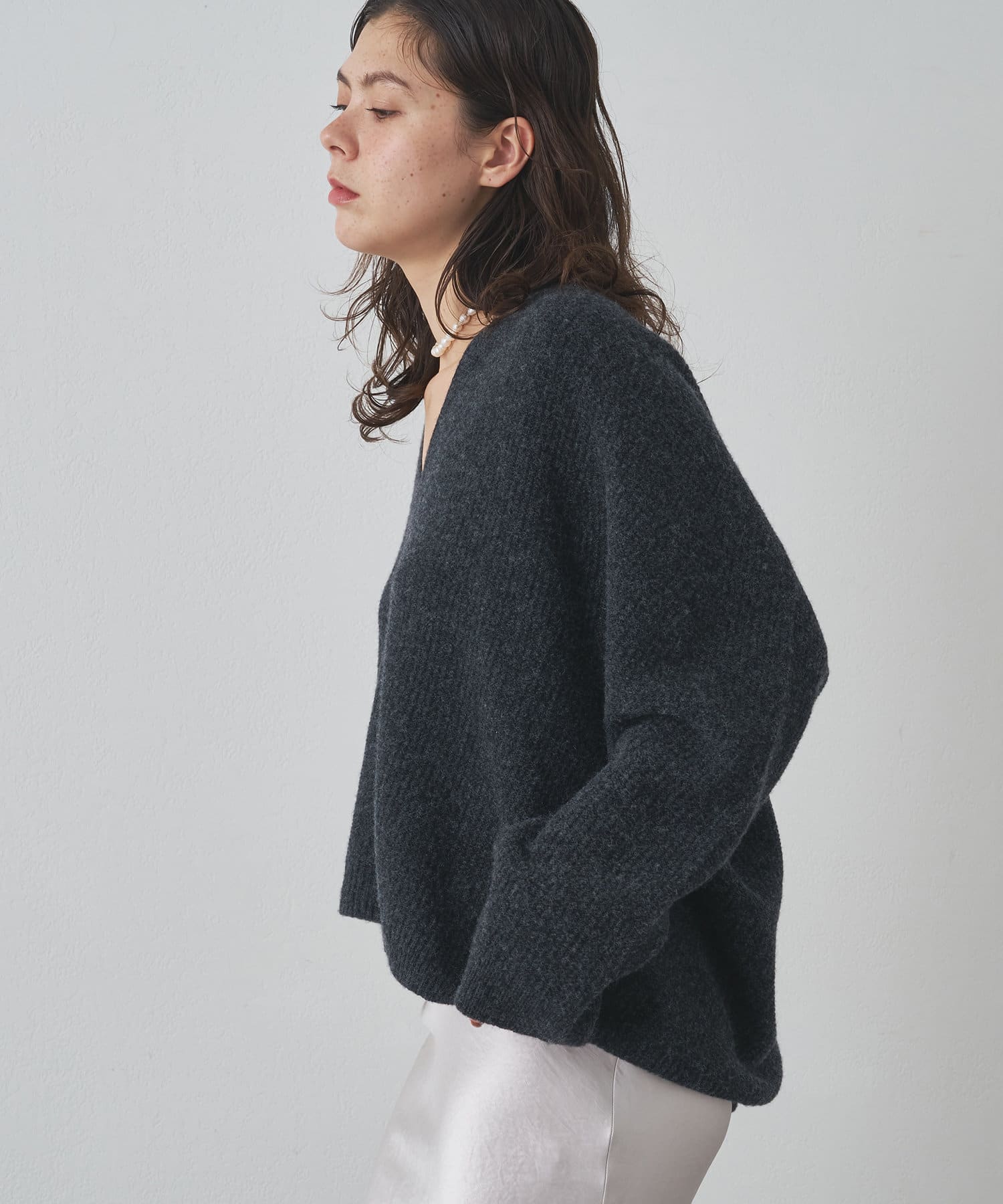 女性らしいシルエットが魅力のVネックニット