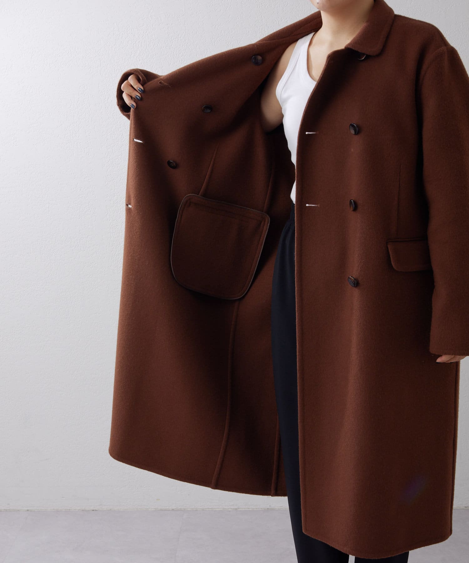 ■上質なラムウールの複合素材で作られたダブルブレストコート。