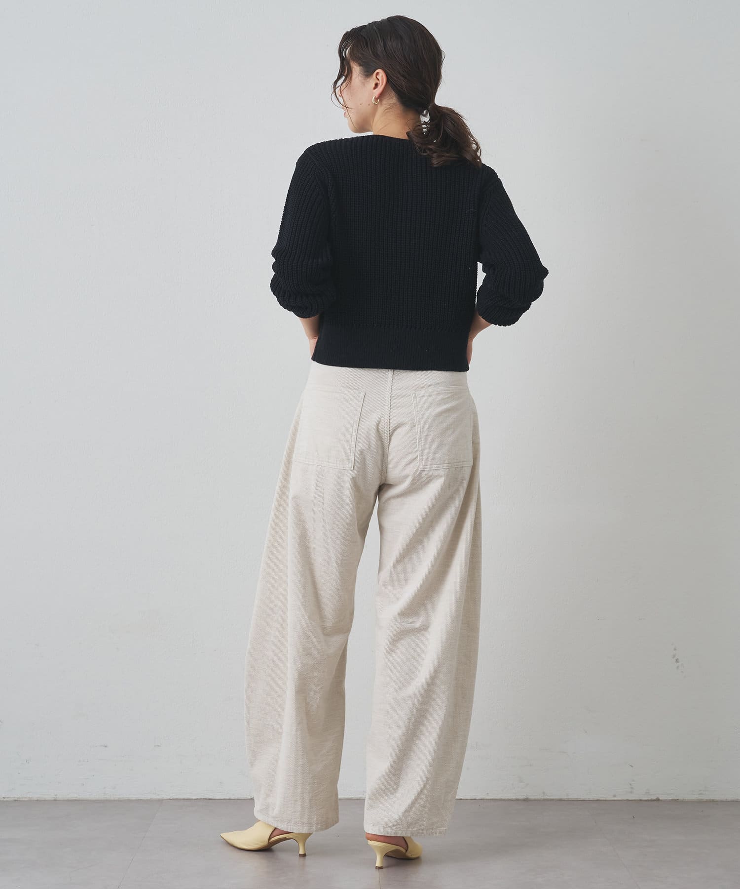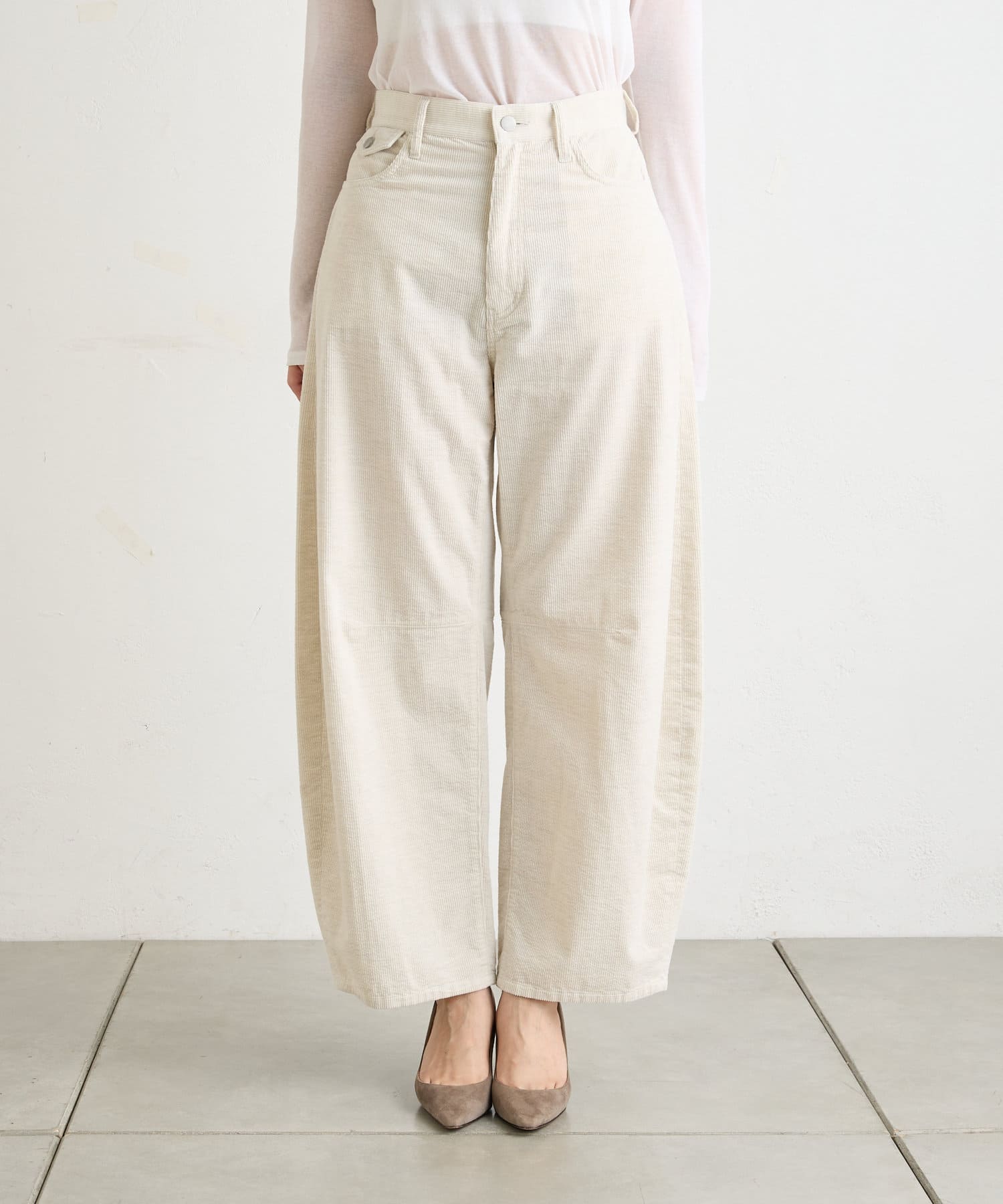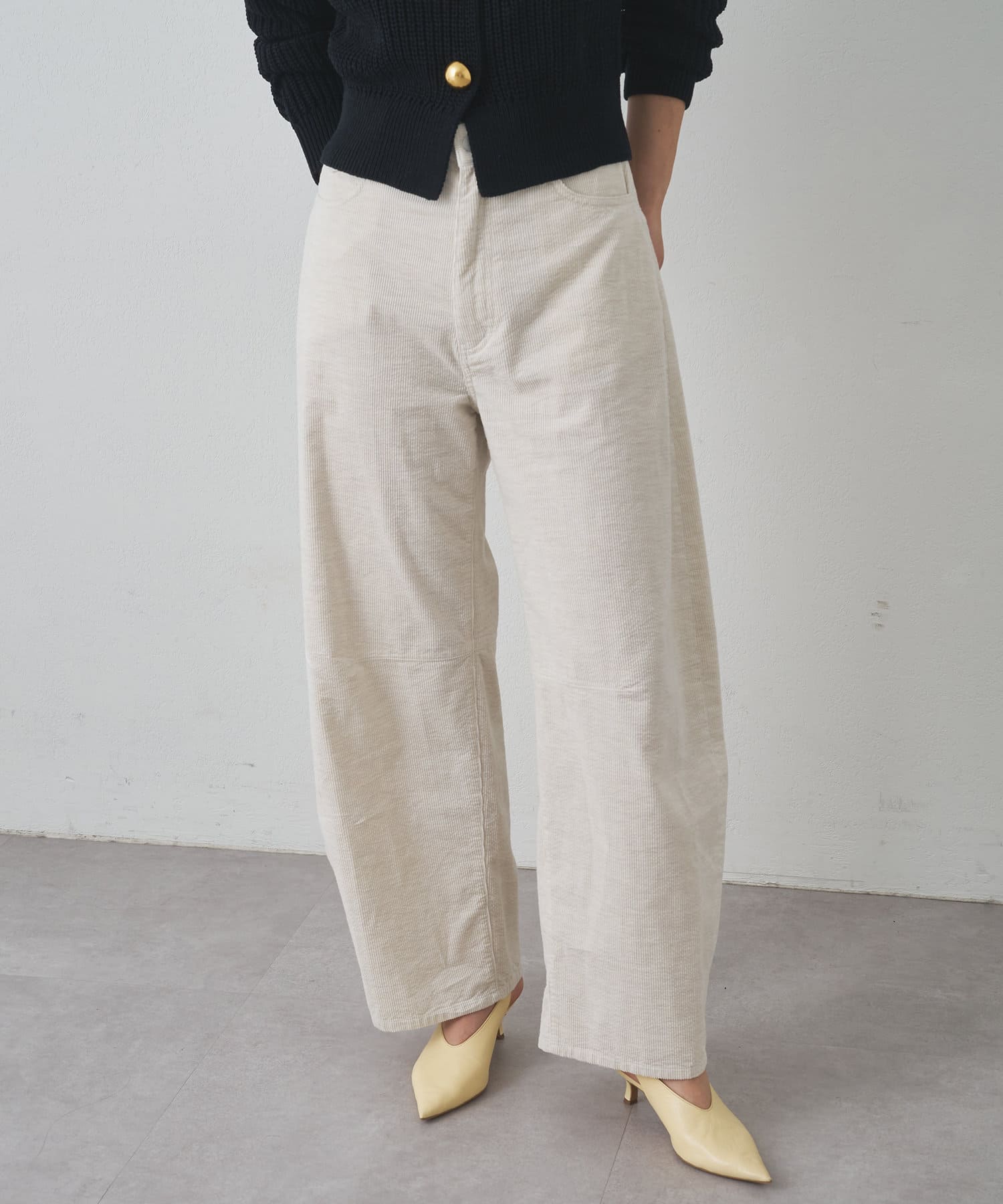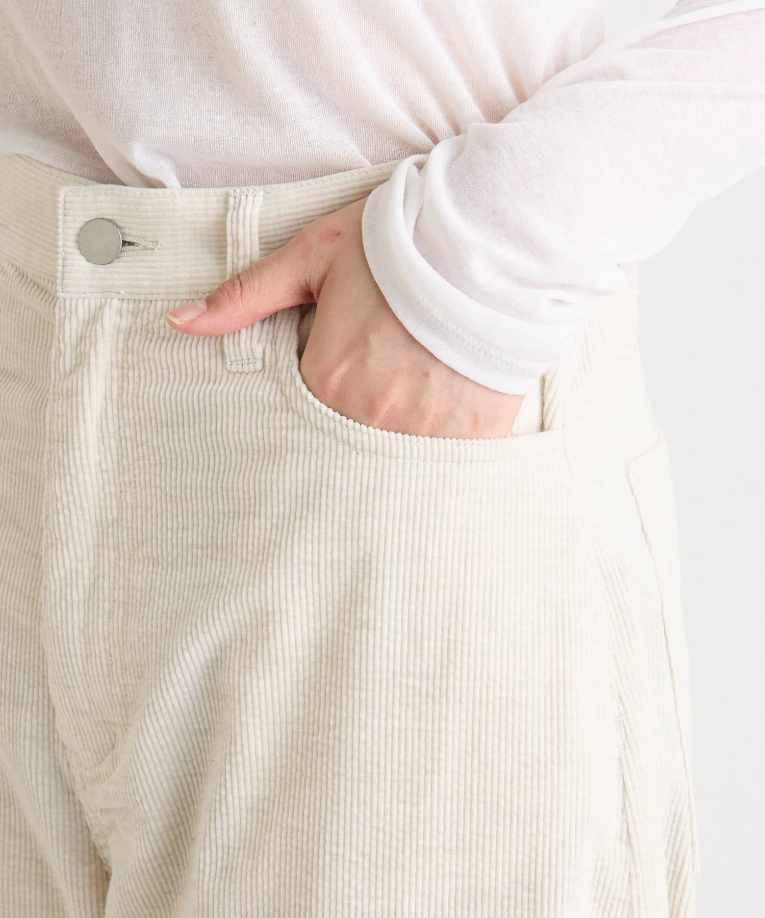 ■ソフトなコーデュロイ生地を使用したコクーンパンツ。