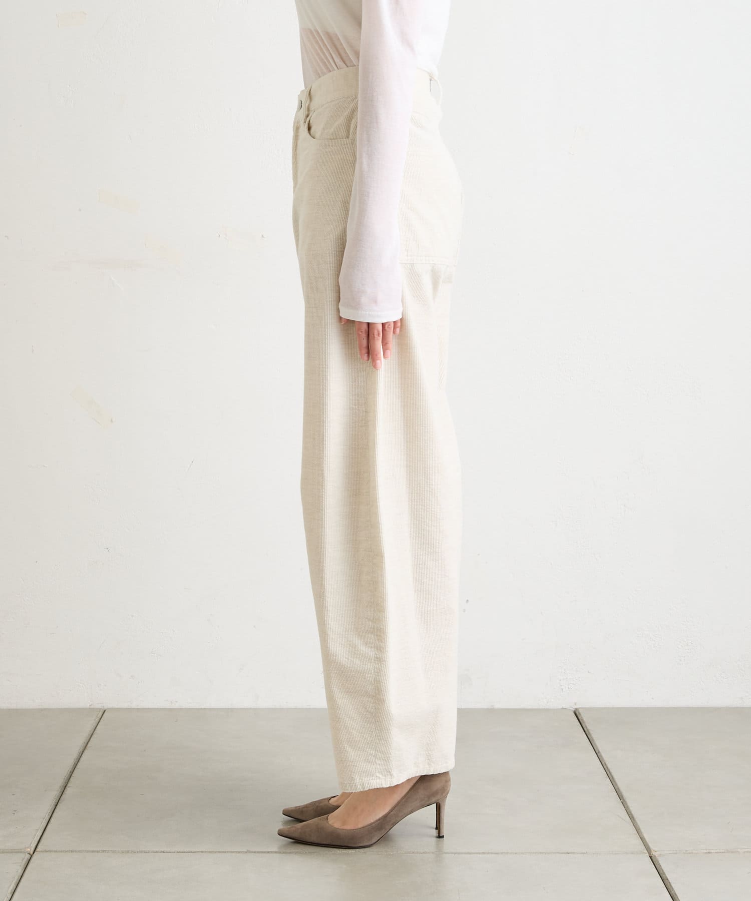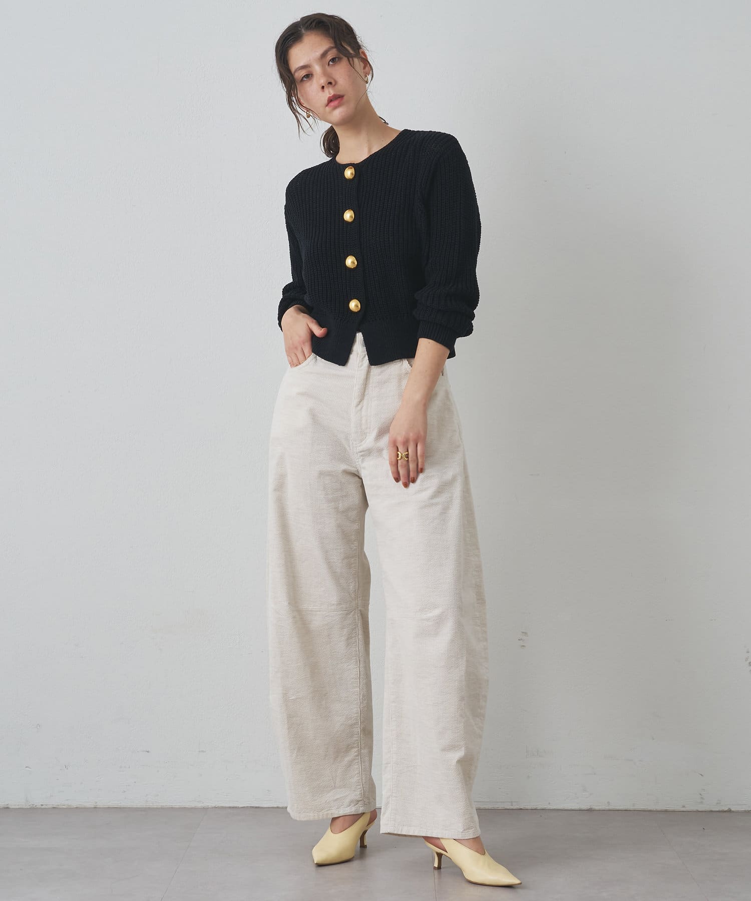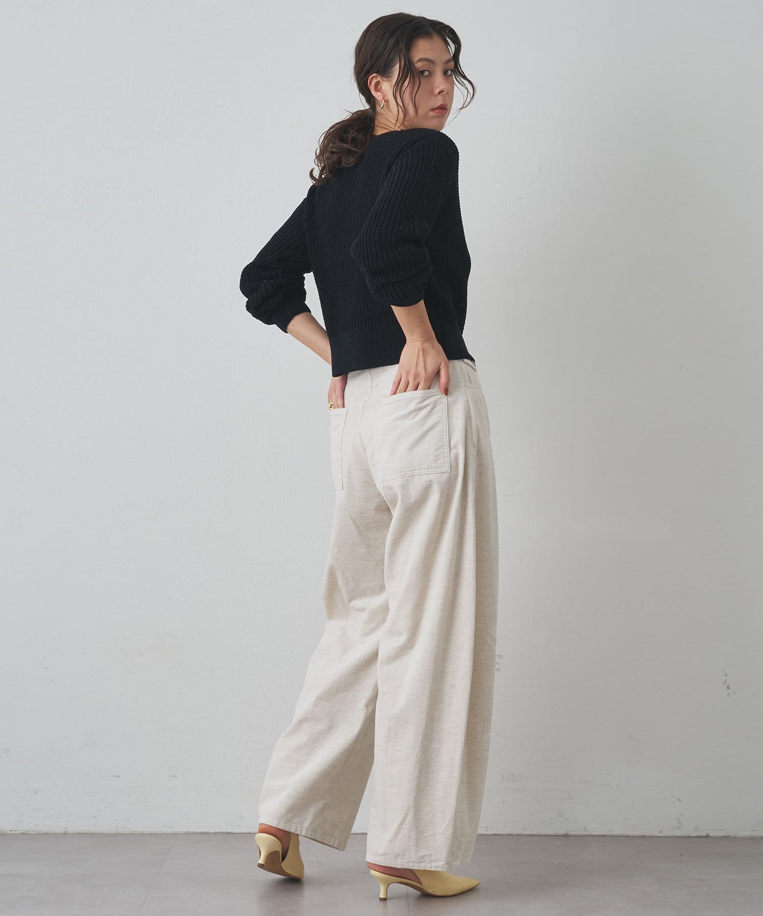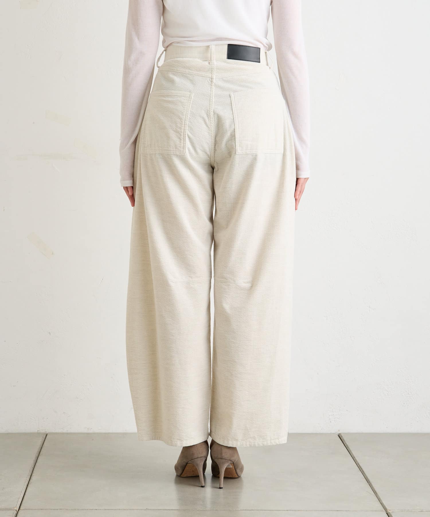 ■ソフトなコーデュロイ生地を使用したコクーンパンツ。