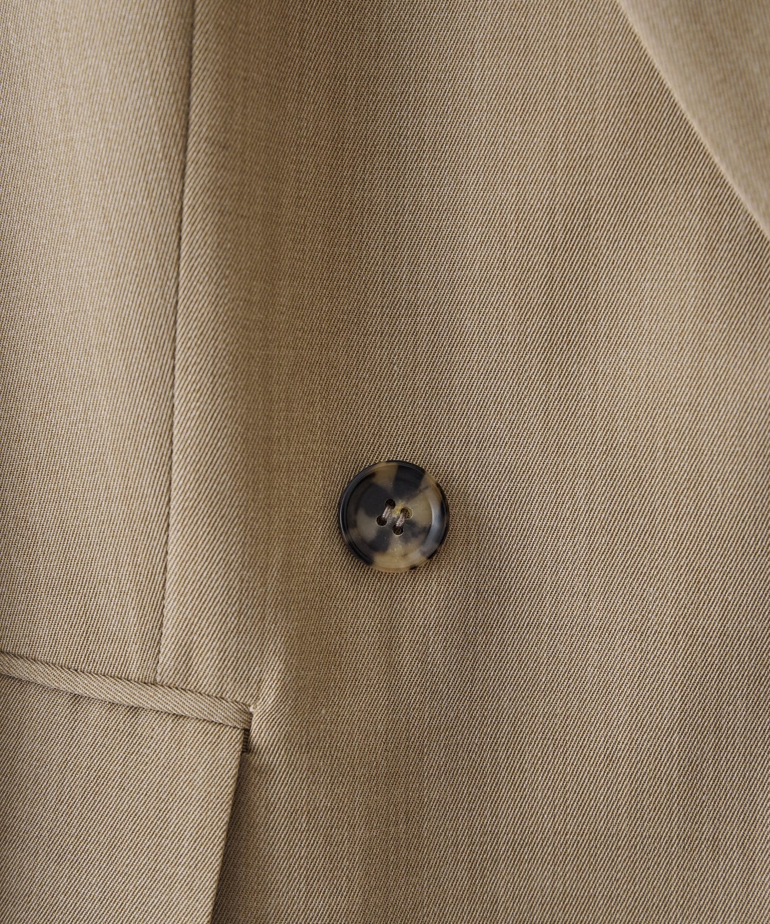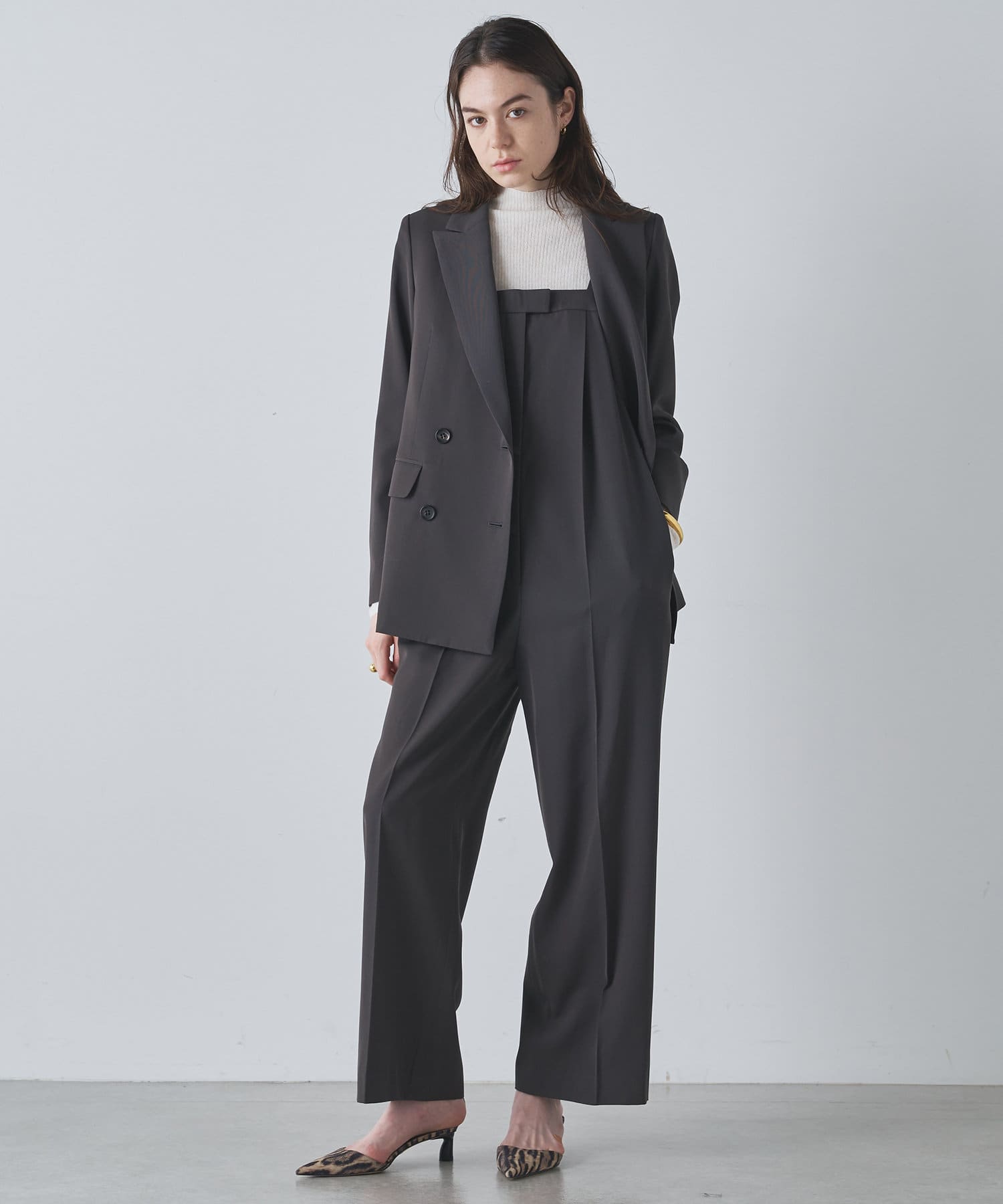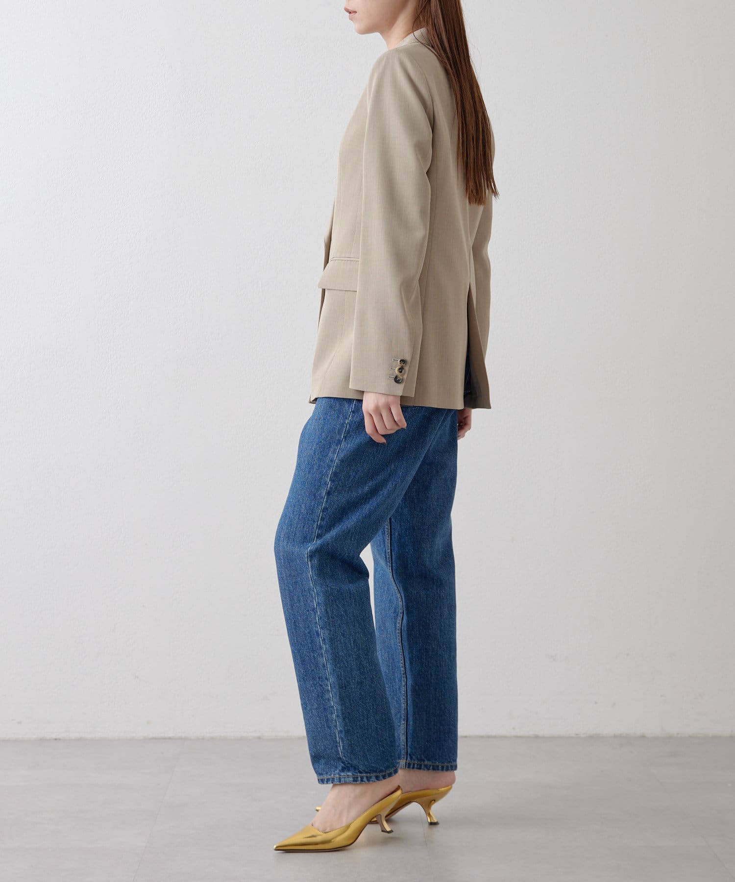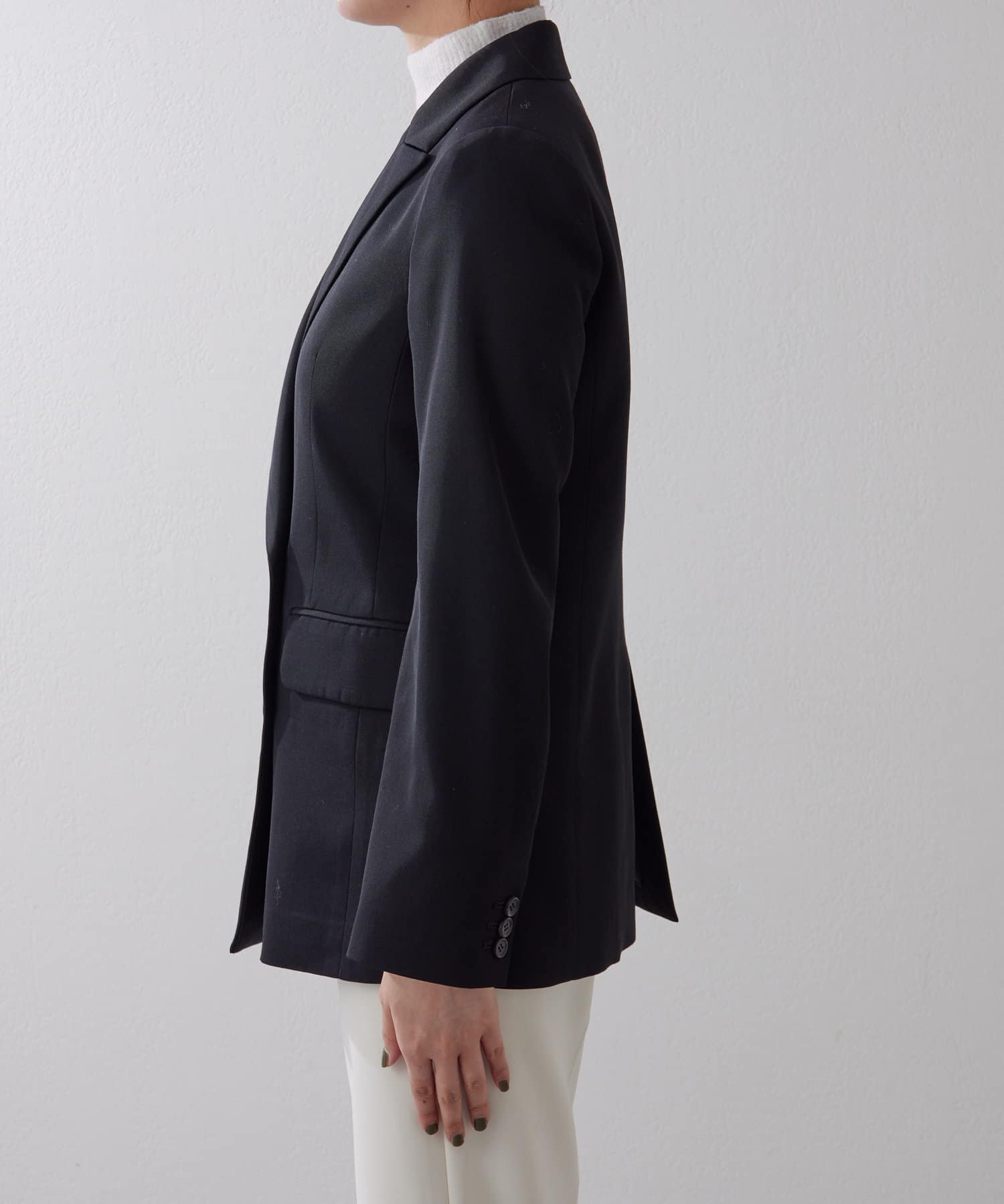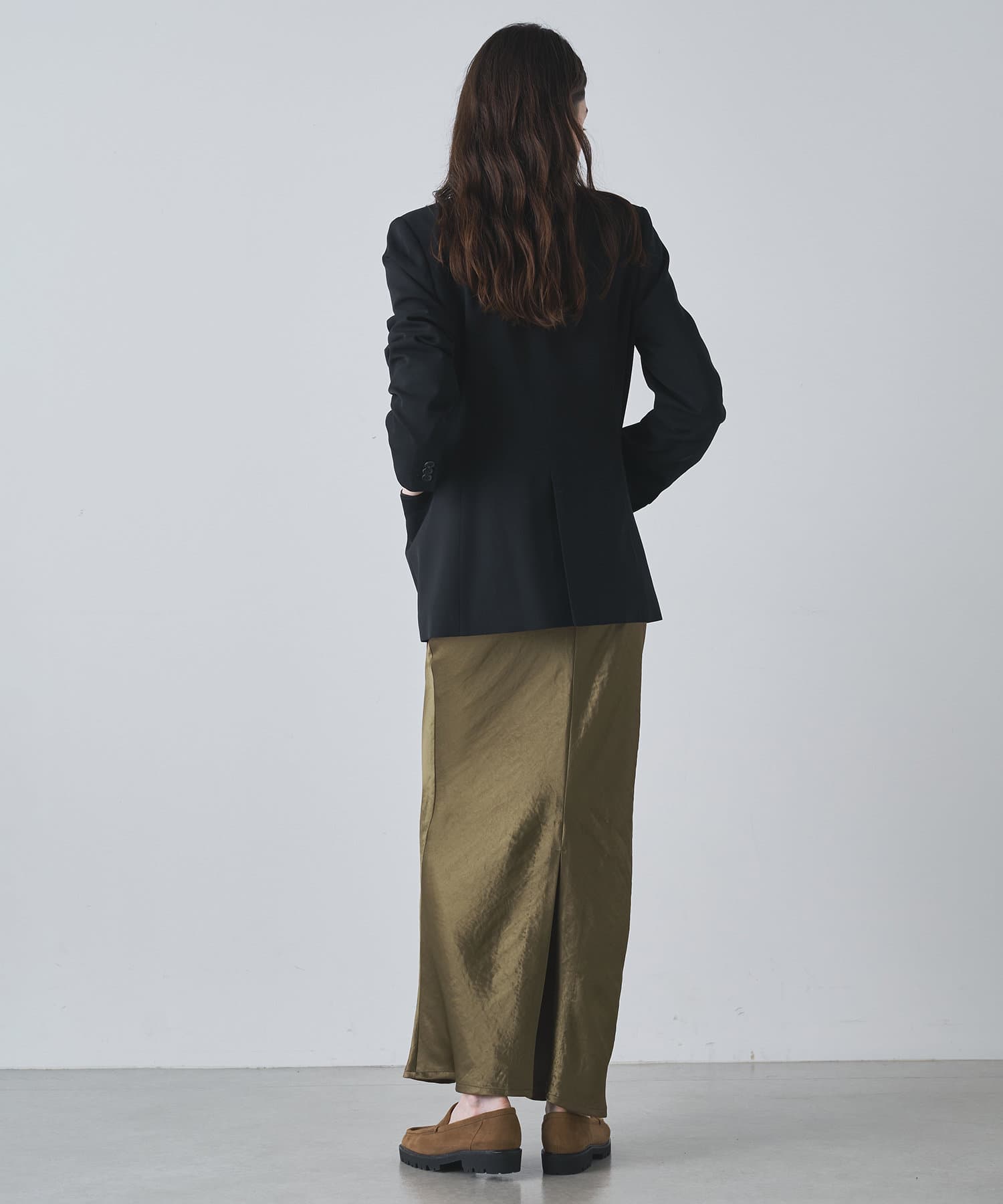 セットインで肩パッドも入っており綺麗めな印象ですが、お尻が隠れる着丈とウール×レーヨンのドライな質感でカジュアルにも合わせやすいですよ。様々なシーンで活躍しそうです。グレーの色味も絶妙で素敵。
