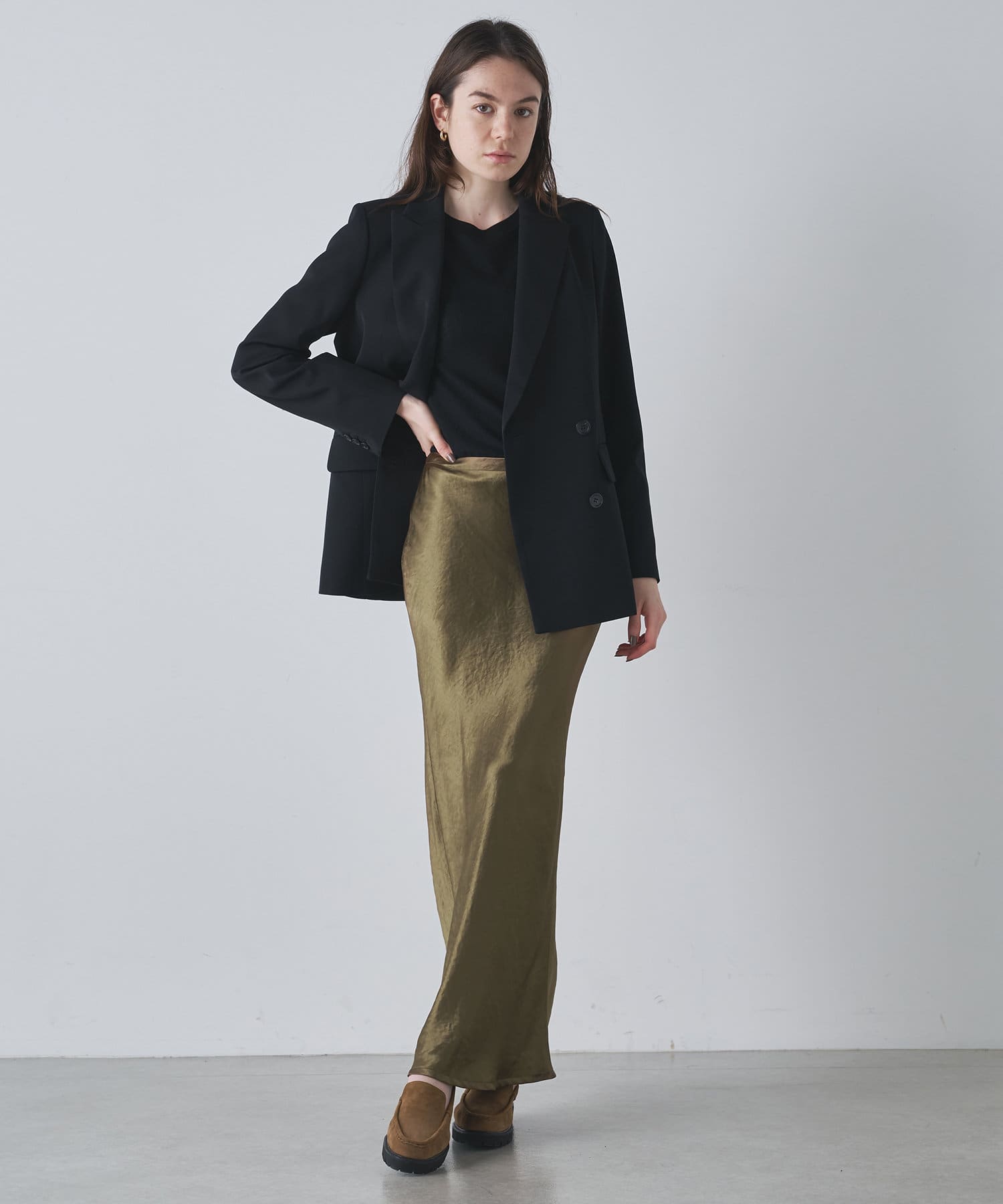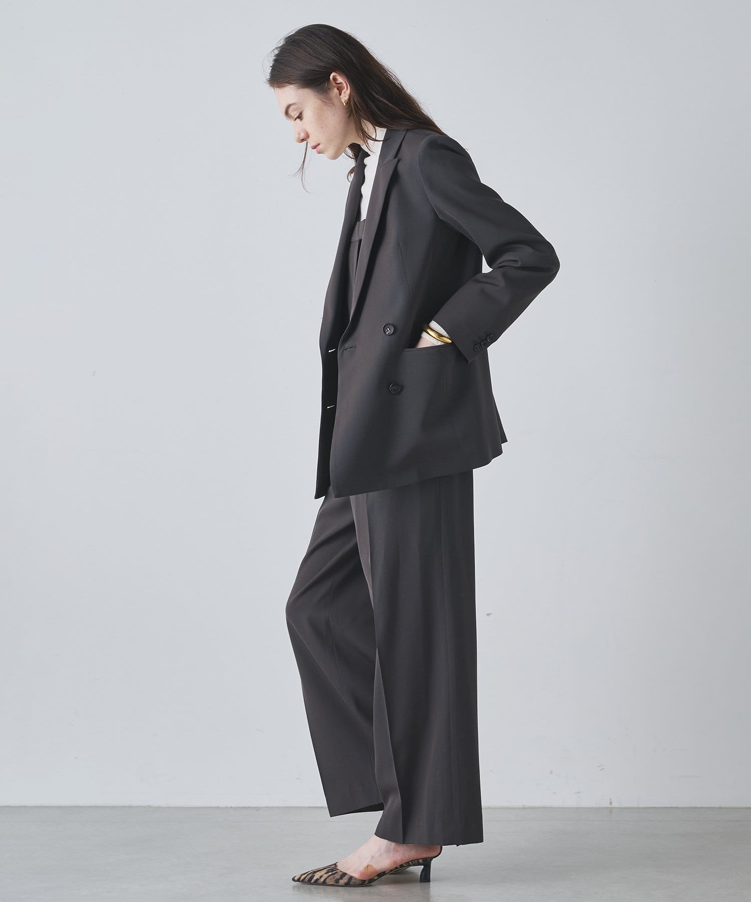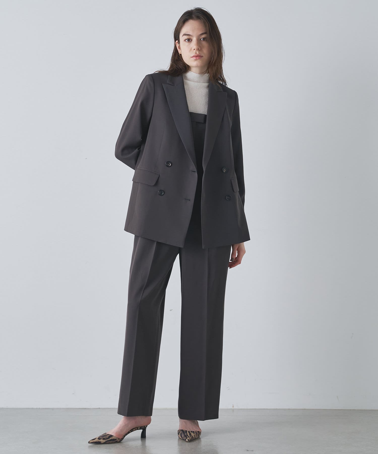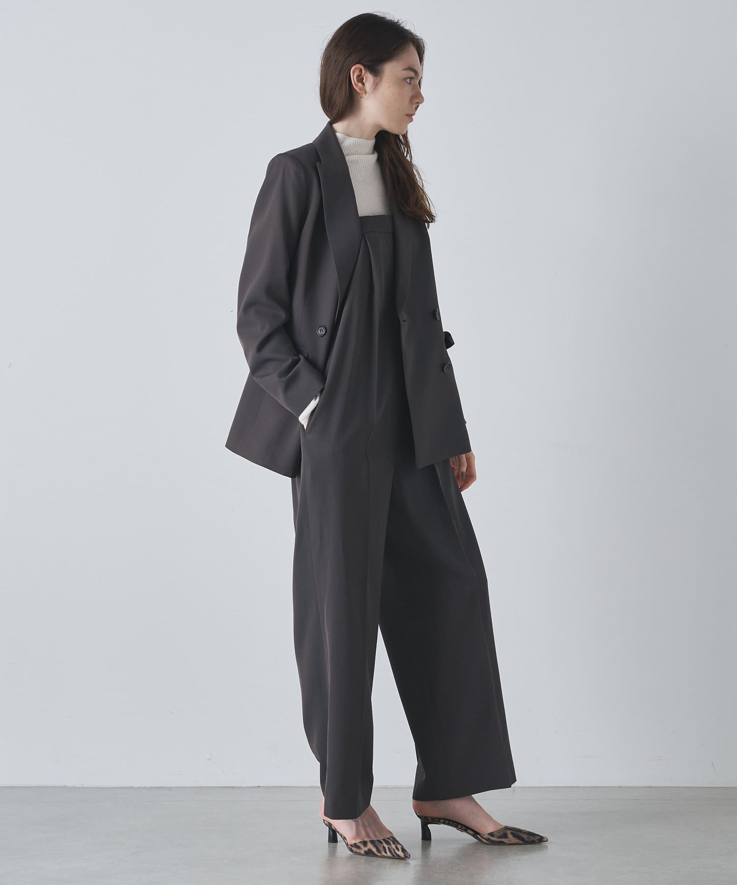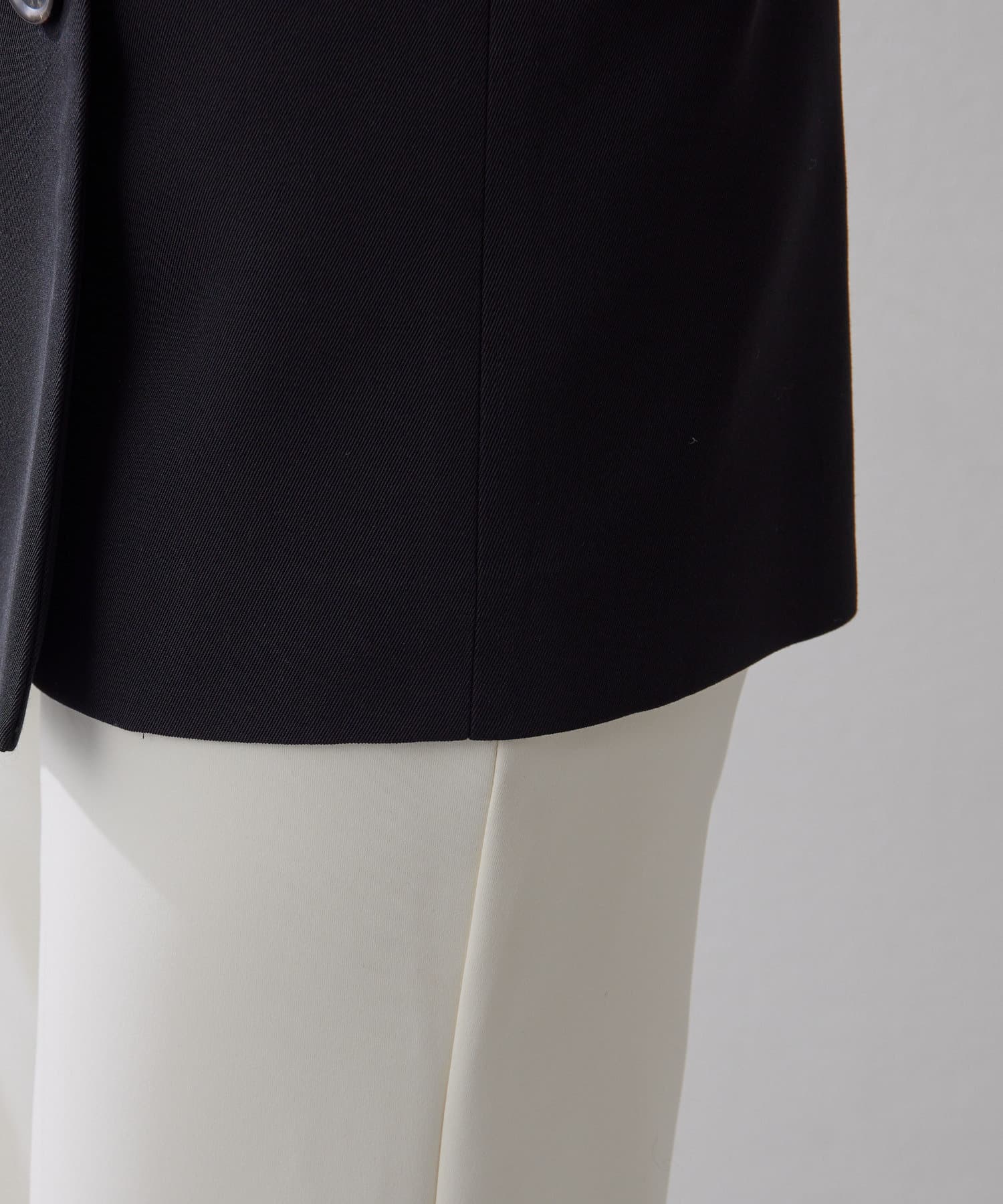 セットインで肩パッドも入っており綺麗めな印象ですが、お尻が隠れる着丈とウール×レーヨンのドライな質感でカジュアルにも合わせやすいですよ。様々なシーンで活躍しそうです。グレーの色味も絶妙で素敵。