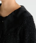 ウールとラメ糸とモール糸の3種類の糸をツイード風に編んだ編地。