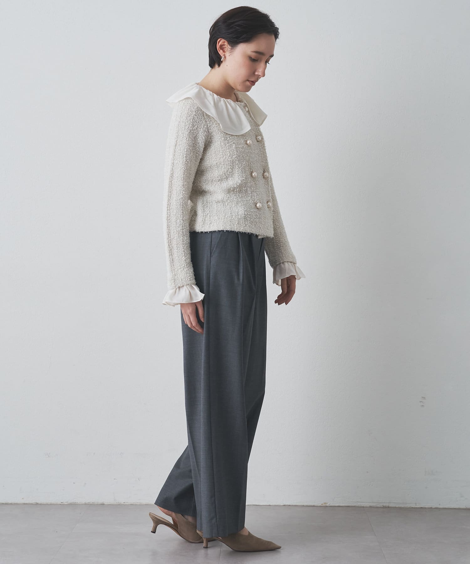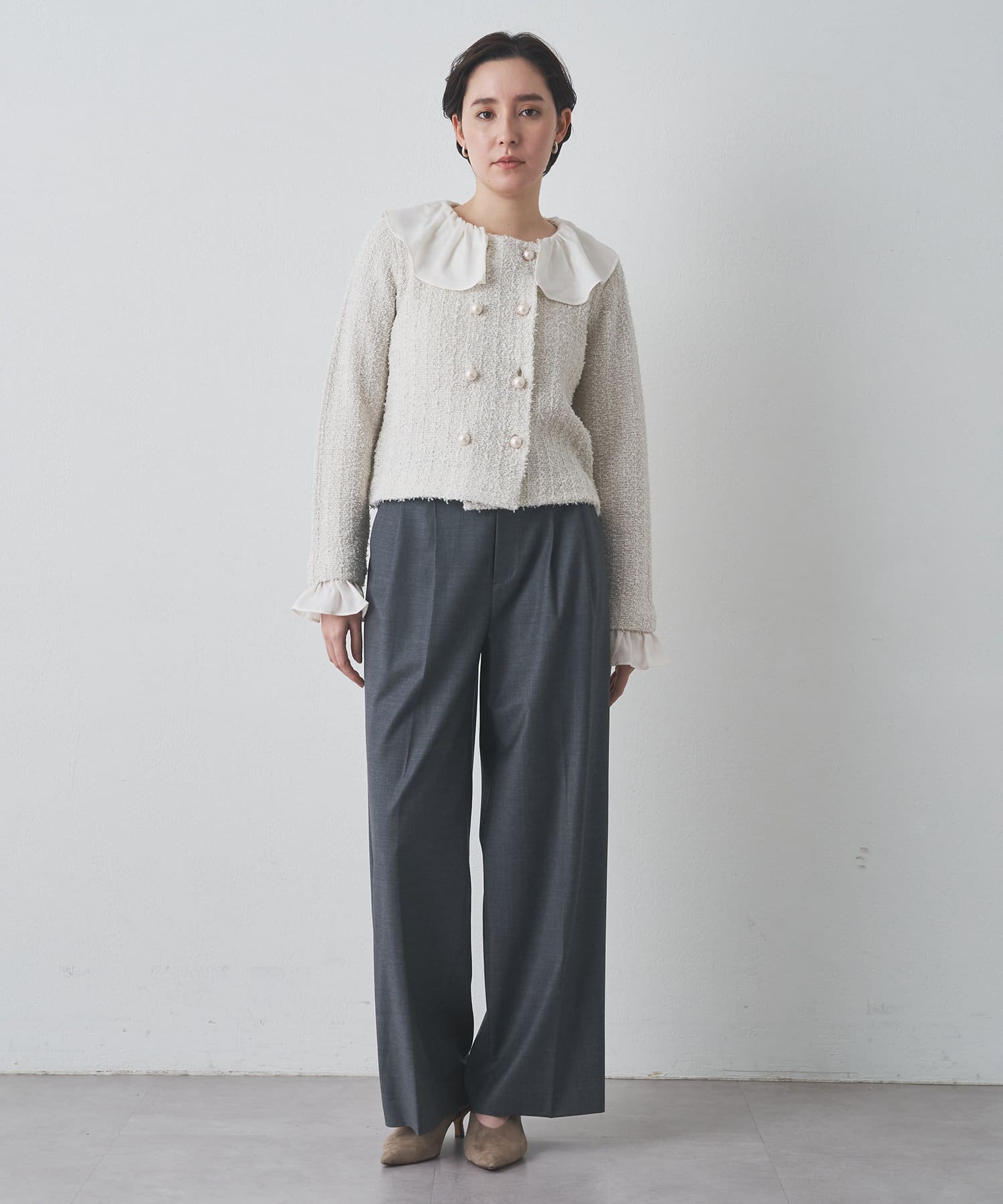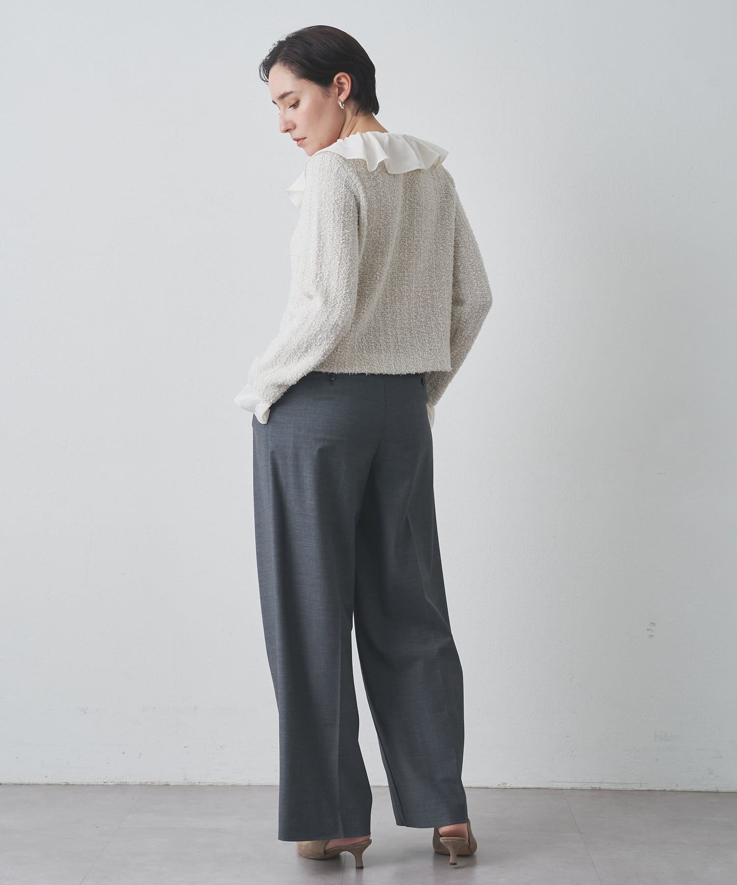 ■ギャザーを入れた衿とカフスがアクセントになり、女性らしい印象をプラス。