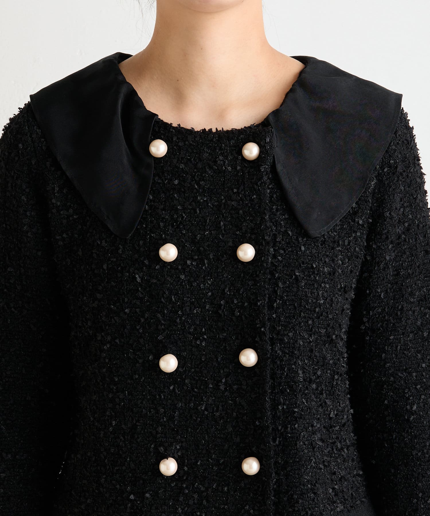 ■衿と袖口には別生地を使用しレイヤードしているようなデザインに。