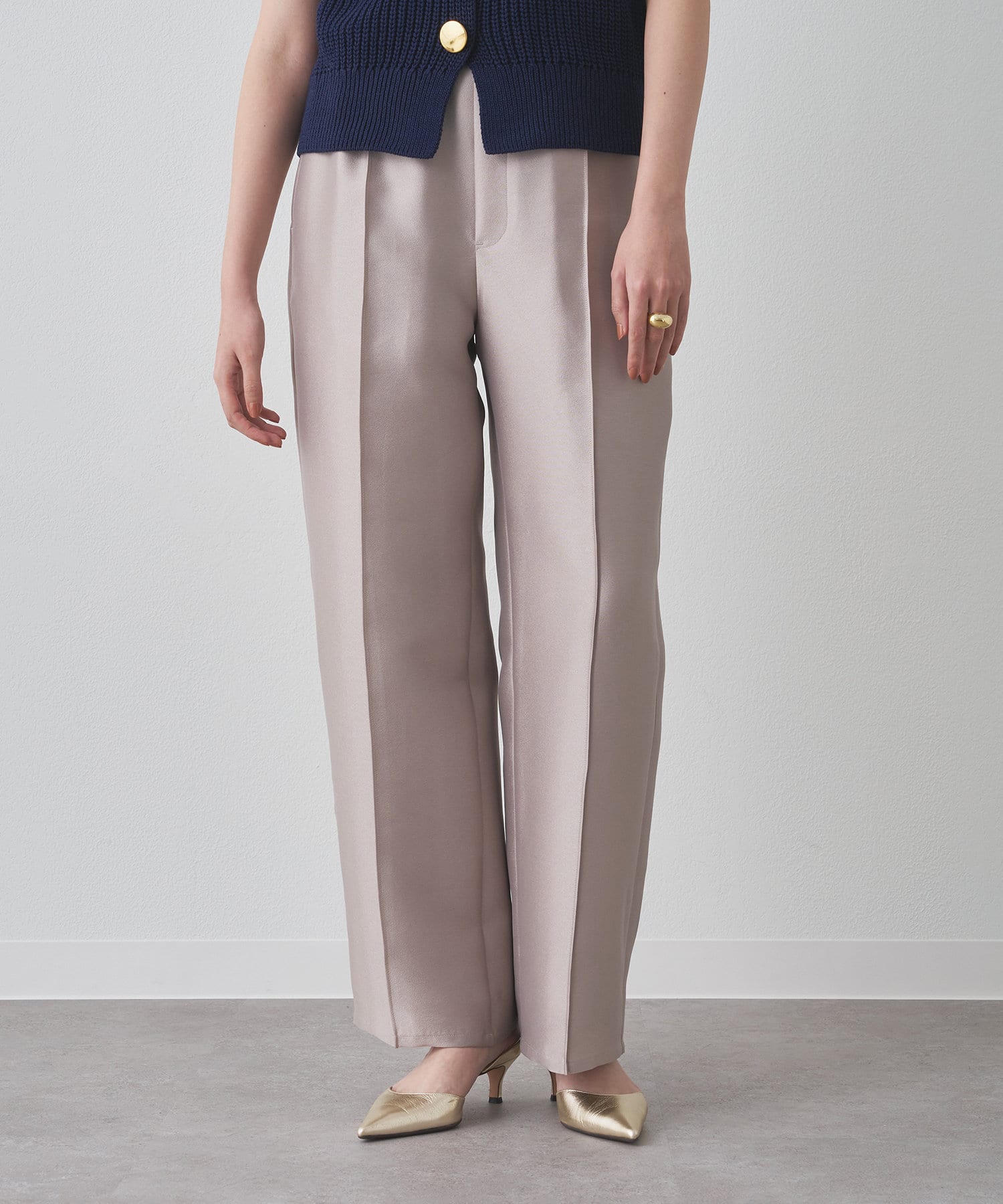 シルクのような上品な光沢感が美しいパンツ。他にはないカラーでオシャレな雰囲気に。