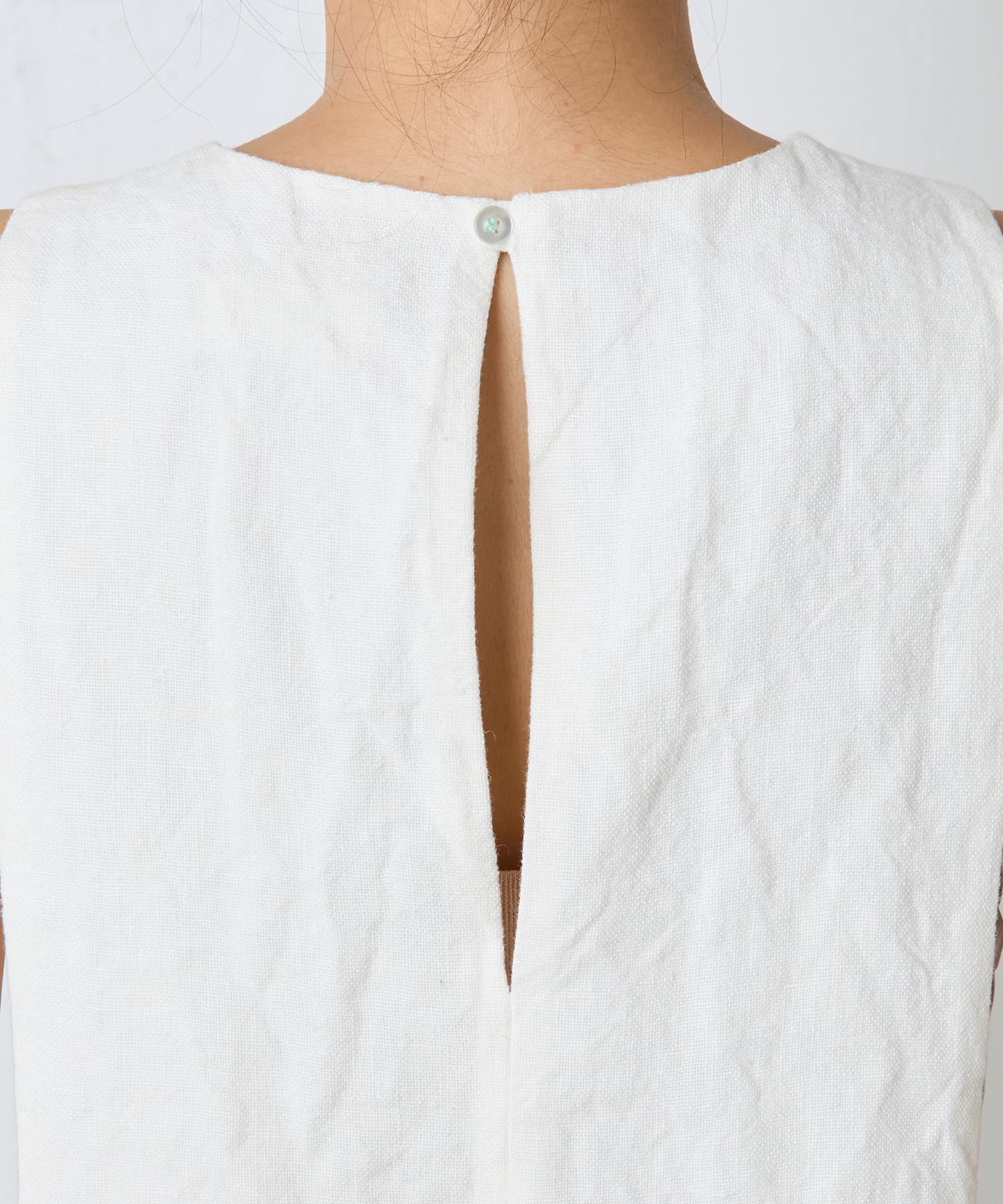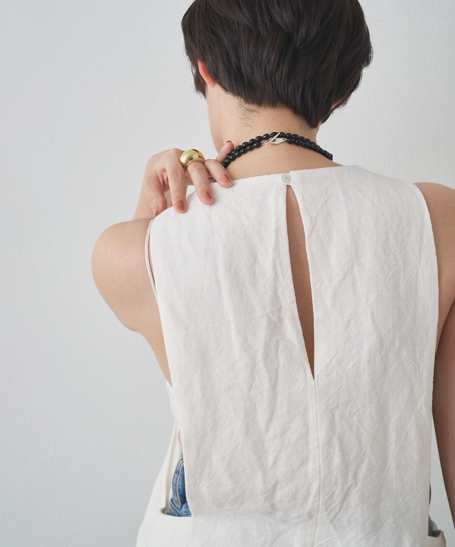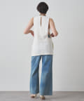■後ろ衿ぐりについたボタンのつけ糸は、ポイントになるミントグリーンの糸で”C”で遊び心も隠れています。