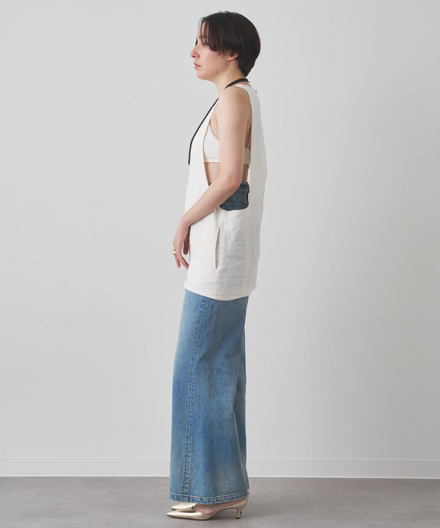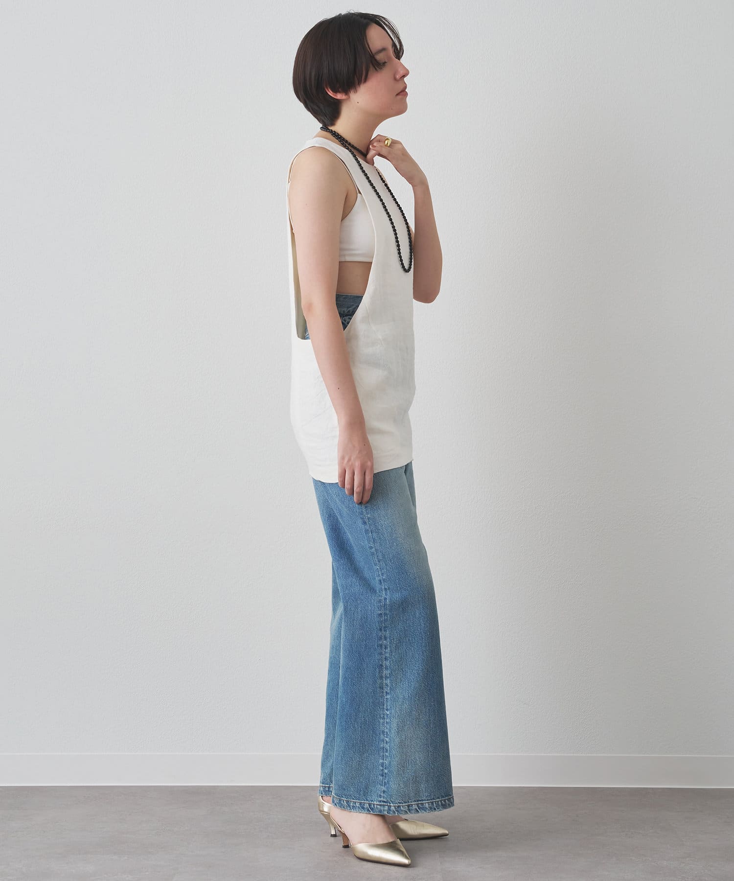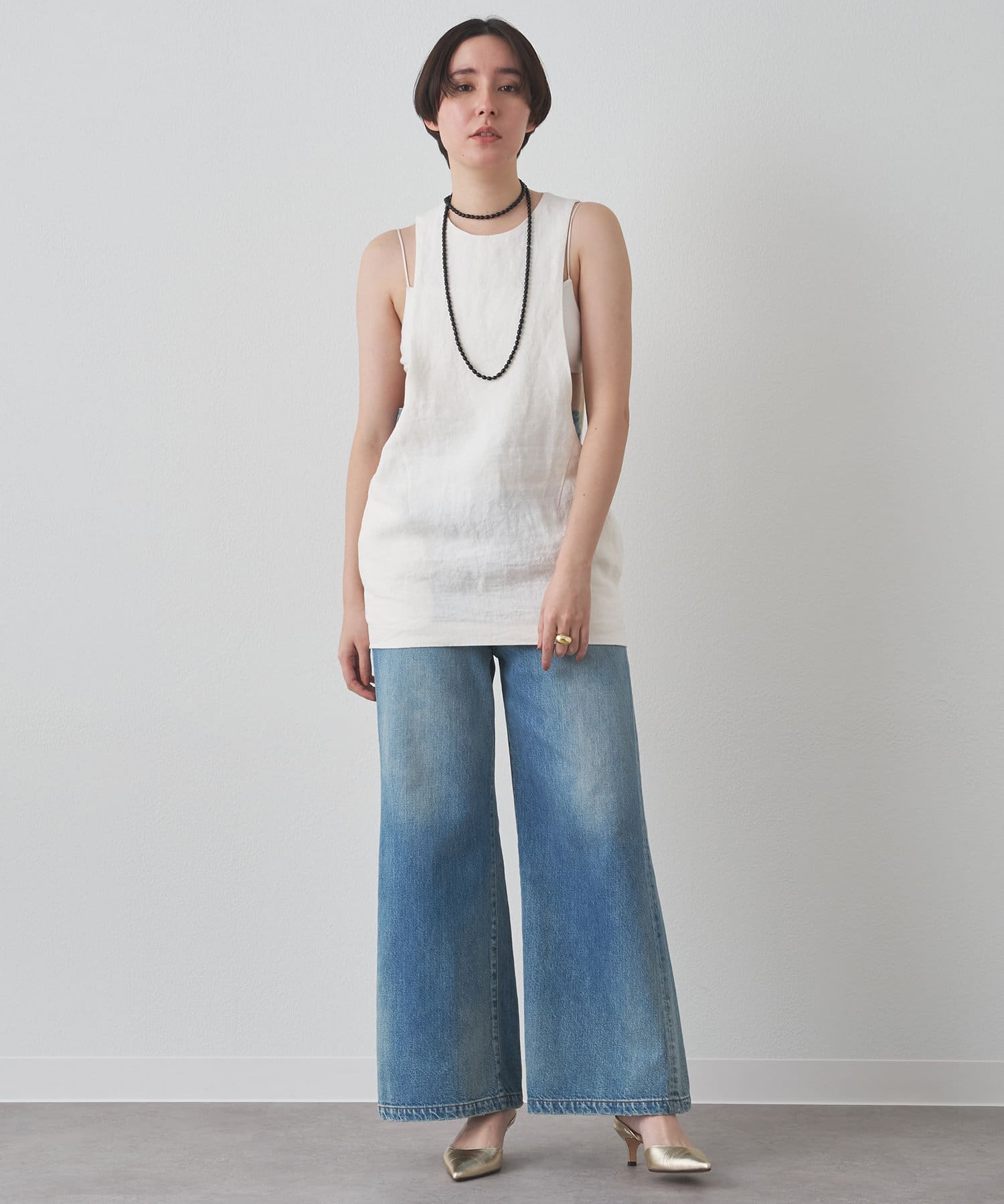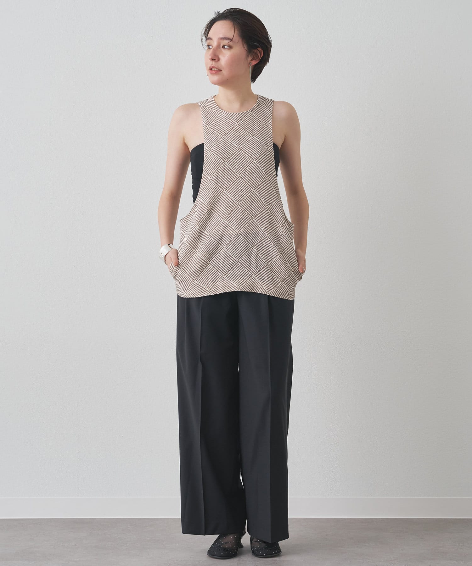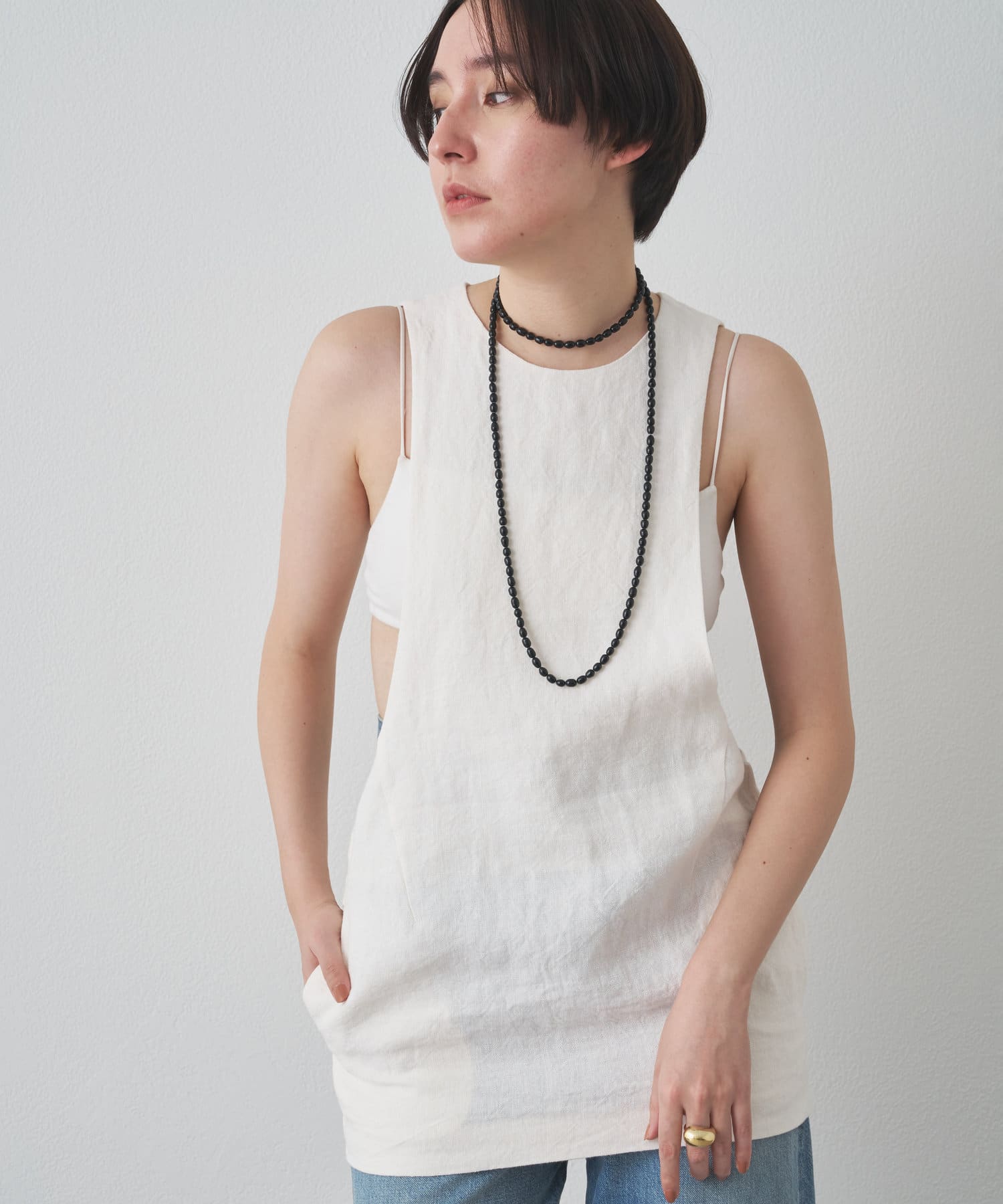 ■チュニック丈のプルオーバーなので、どんなボトムとも合わせやすい。