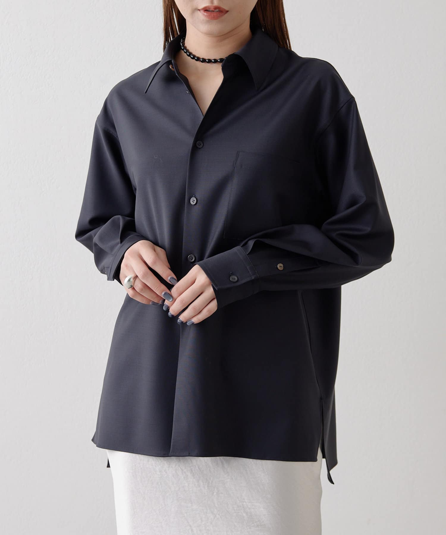 インポートのシャツのような、シンプルなのに存在感のある一枚。私も買います。