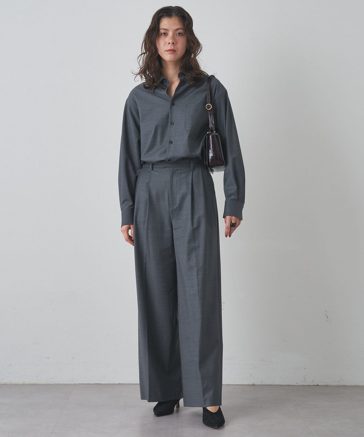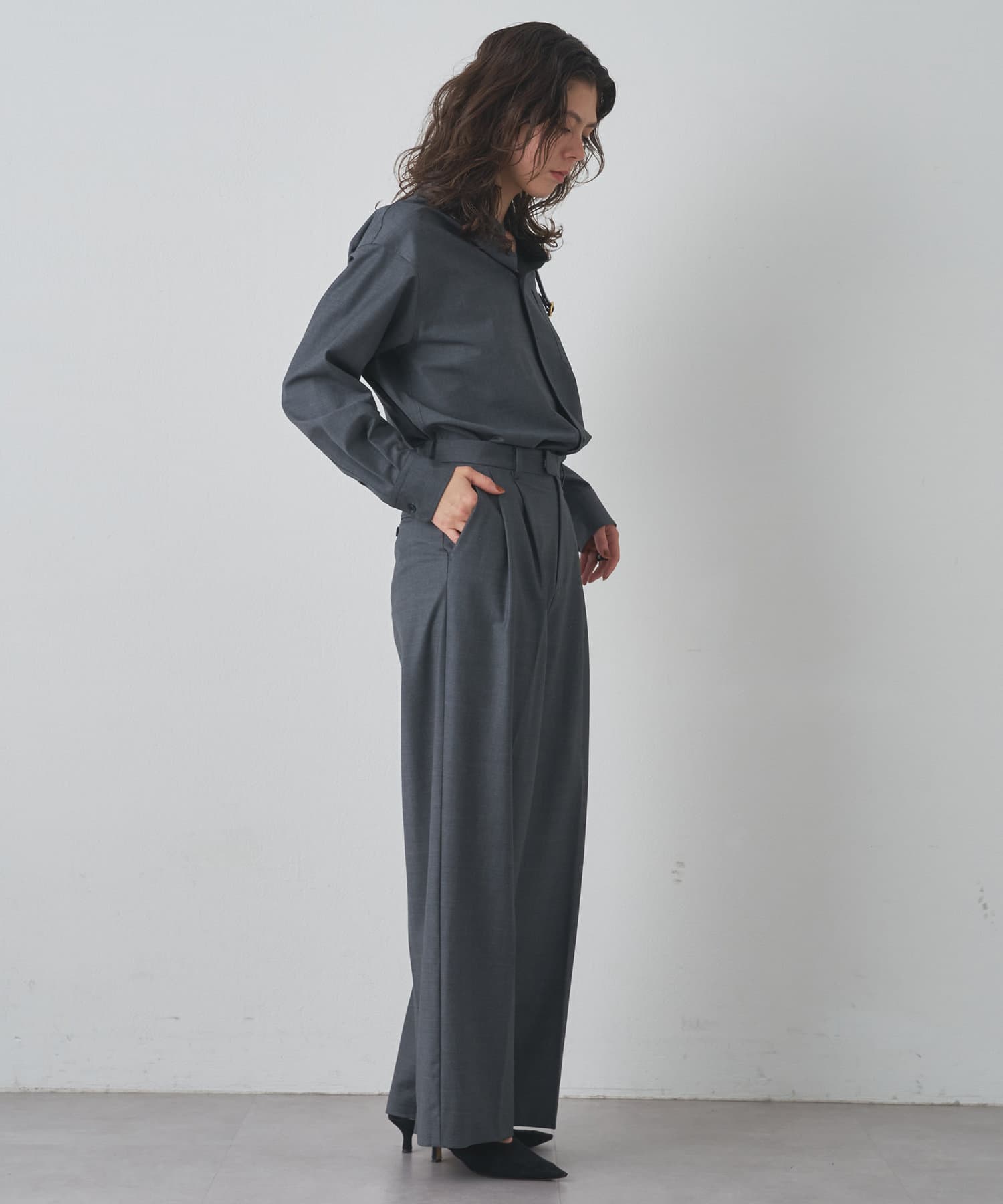 ■同素材のセンタープレスワイドパンツ(ブランド品番:DNZ1042102A0001)とのセットアップもおすすめ。