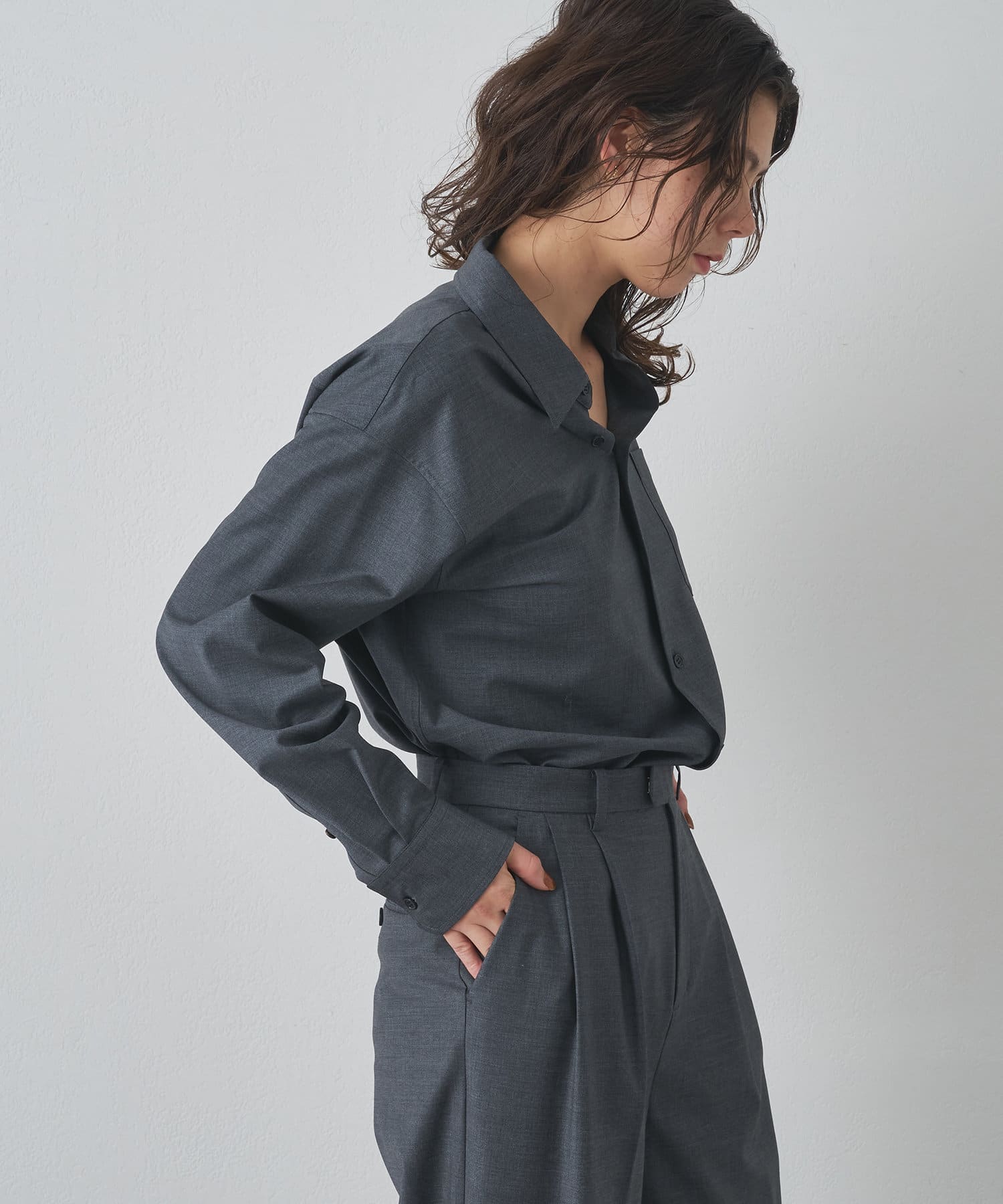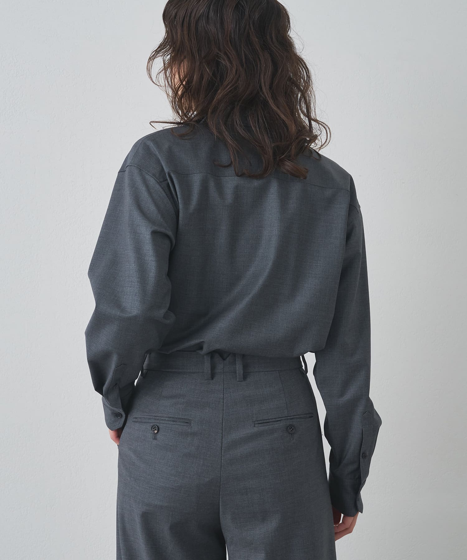 ■ブランドベストセラーのセンタープレスパンツやダブルプレーンジャケットと同素材で仕立てた一枚。