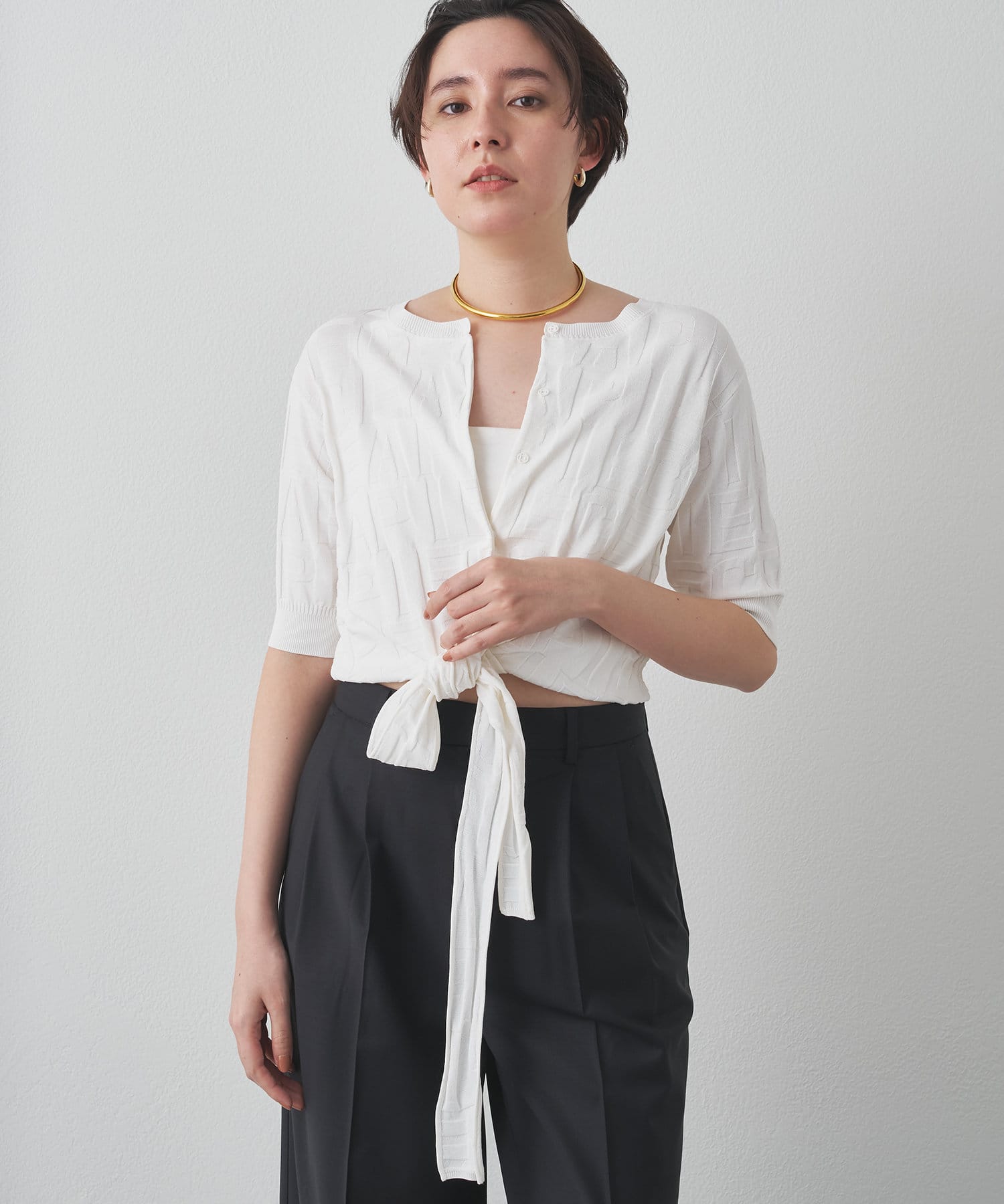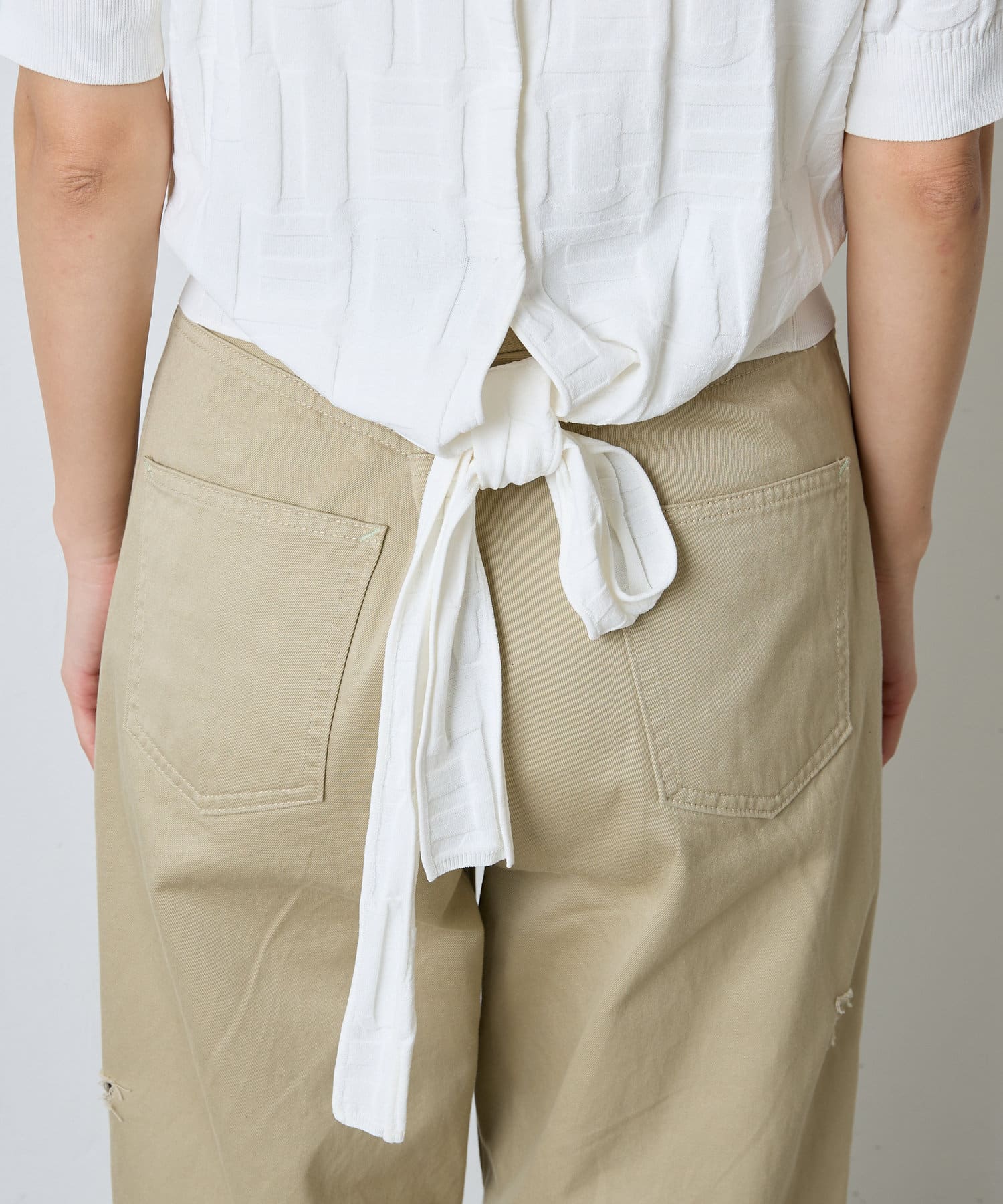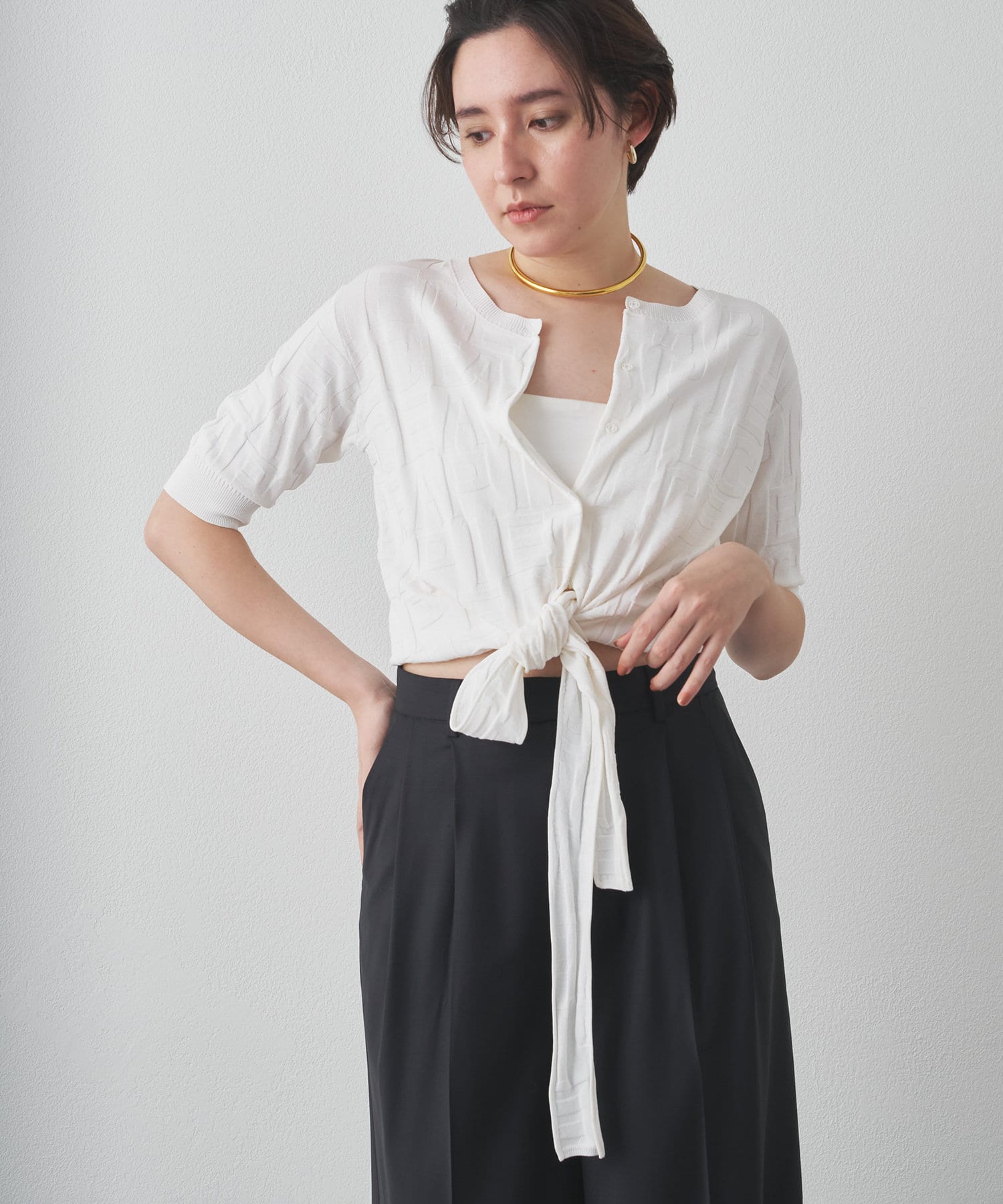 ■裾が編み続いた紐ディティールになっており、垂らしたままでもいいでも結んでも着れるデザイン。