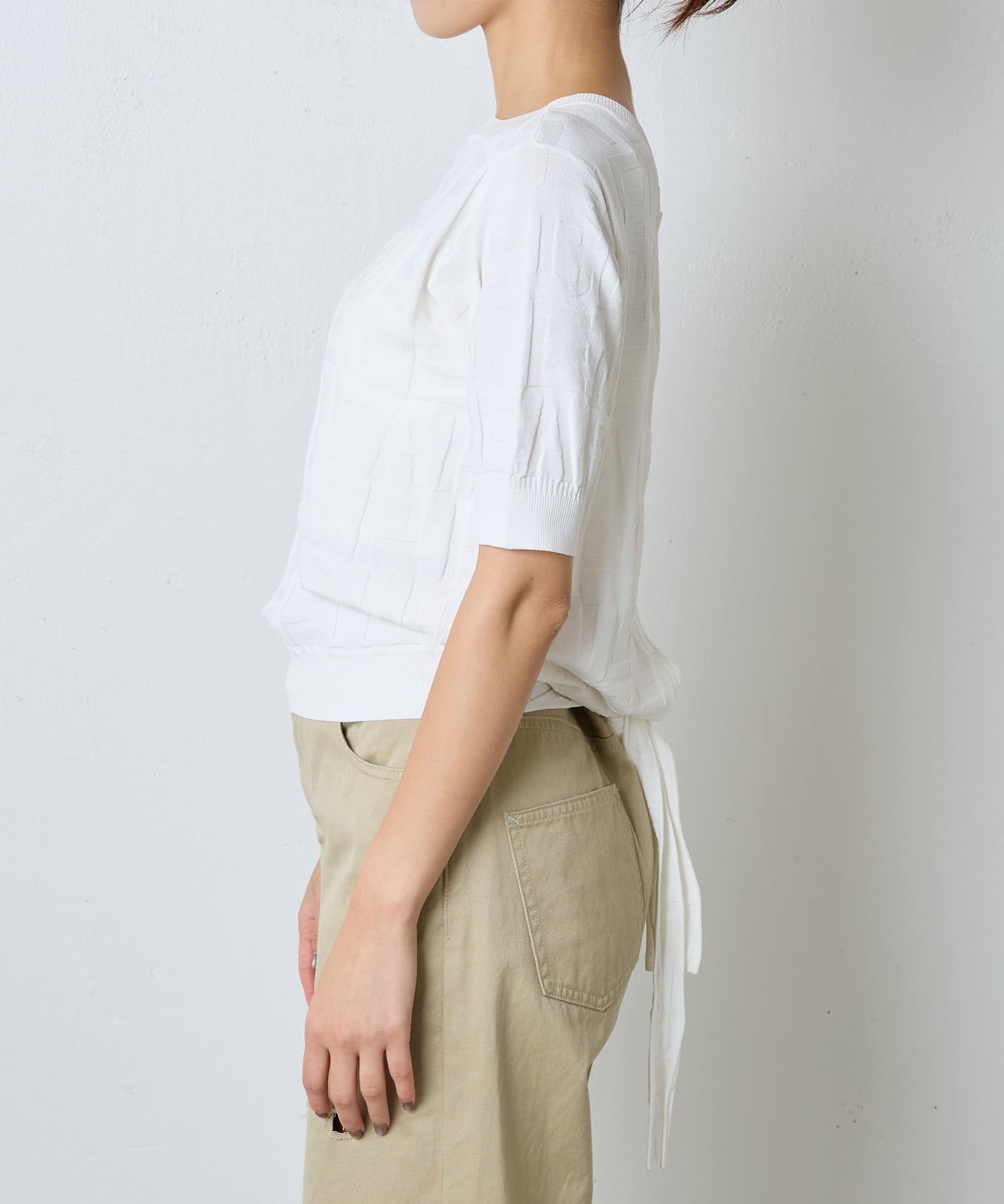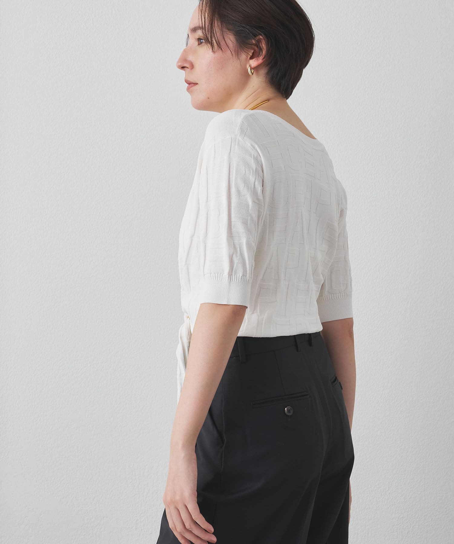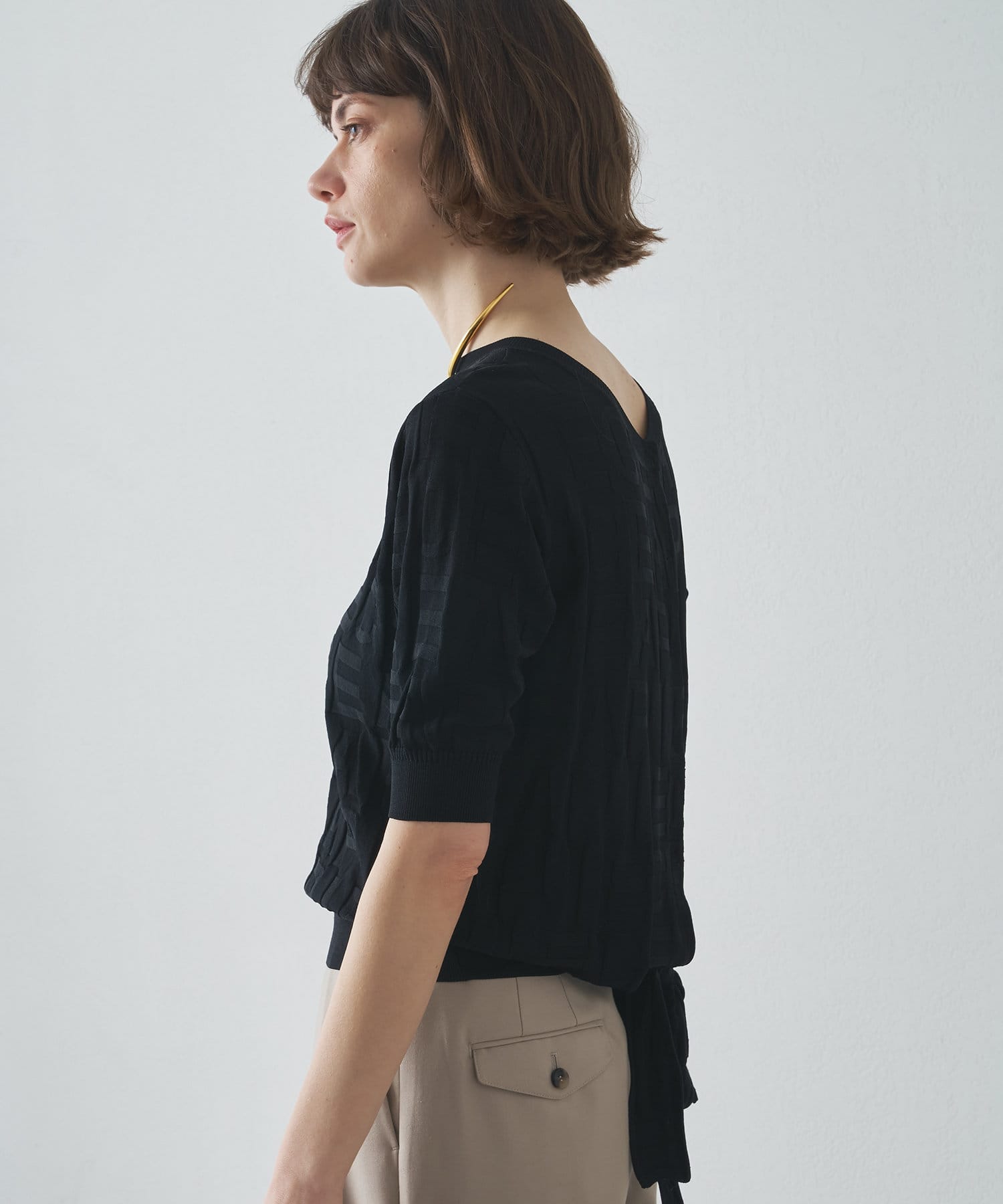■裾が編み続いた紐ディティールになっており、垂らしたままでもいいでも結んでも着れるデザイン。